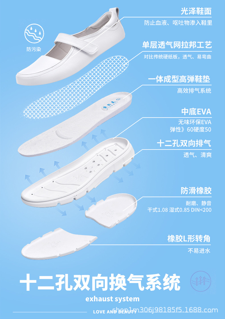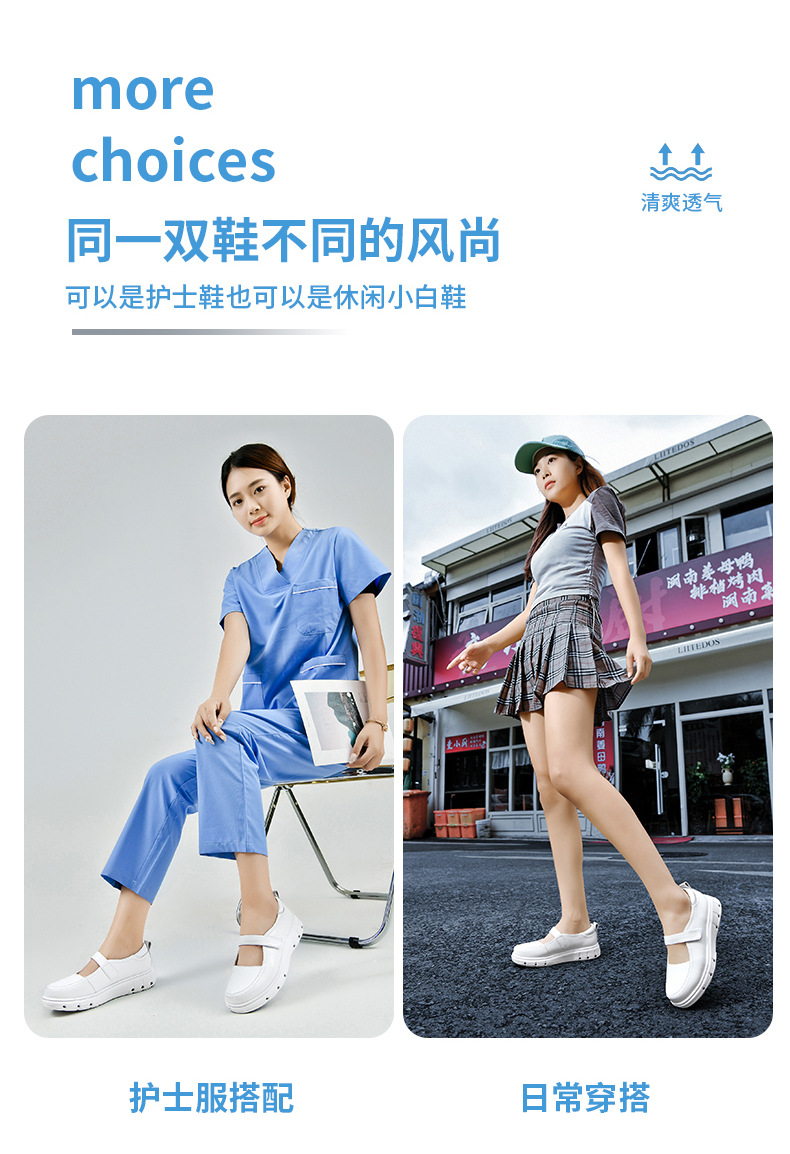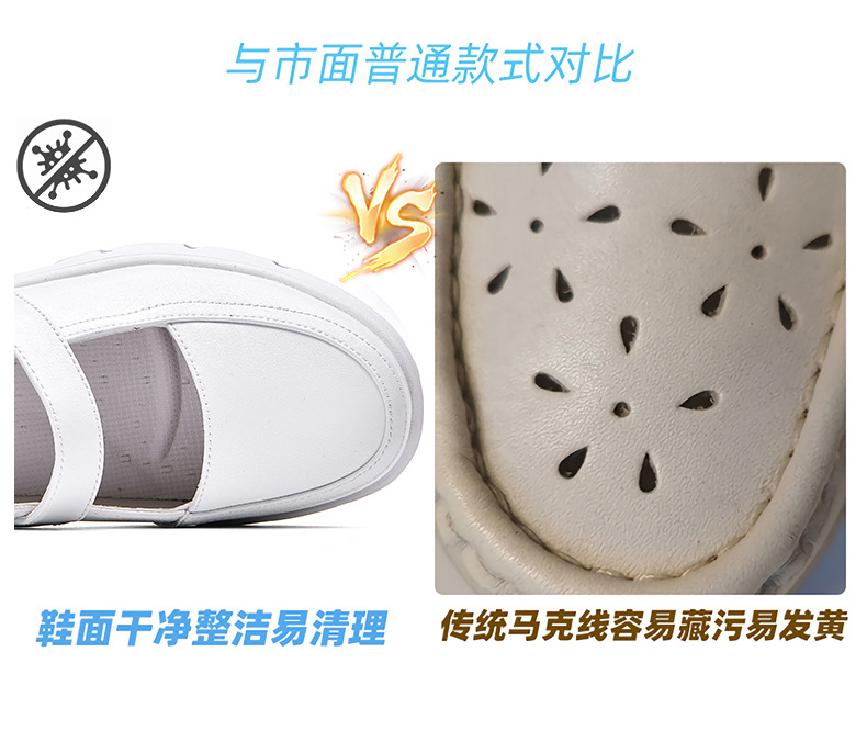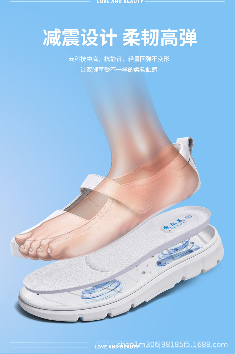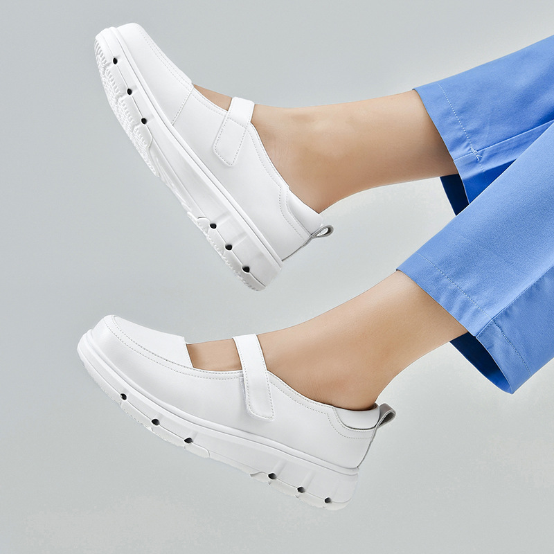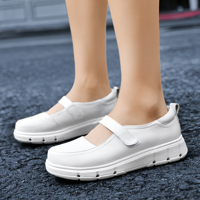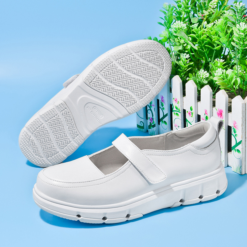 2024 новые туфли для медсестер, летний стиль на мягкой подошве, удобная толстая подошва, повышенная воздухопроницаемость, не утомляющие ноги, нескользящие белые туфли и кожаные туфли.