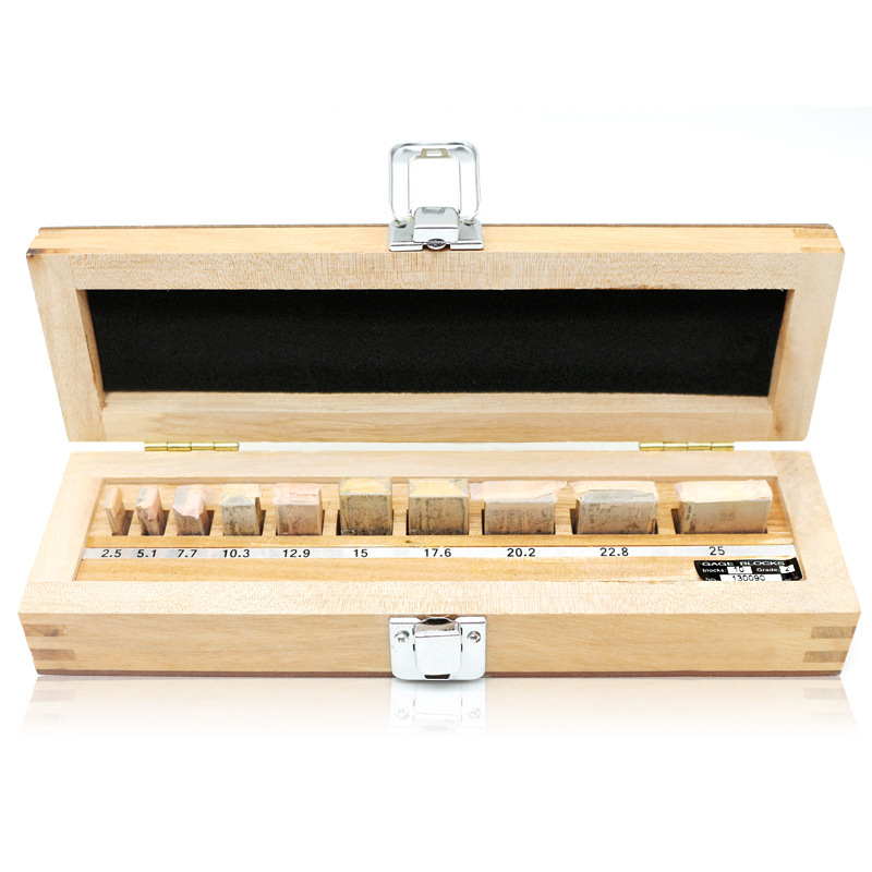 量块的精度,根据它的工作尺寸(即中心长度)的精度、和两个测量面的平面平行度的准确程度,分成五个精度级,即00级、0级、1级2级和(3)级。0级量块的精度高,工作尺寸和平面平行度等都做得很准确,只有零点几个微米的误差,一般仅用于省市计量单位作为检定或校准精密仪器使用。1级量块的精度次之,2级更次之。3级量块的精度低,一般作为工厂或车间计量站使用的量块,用来检定或校准车间常用的精密量具。