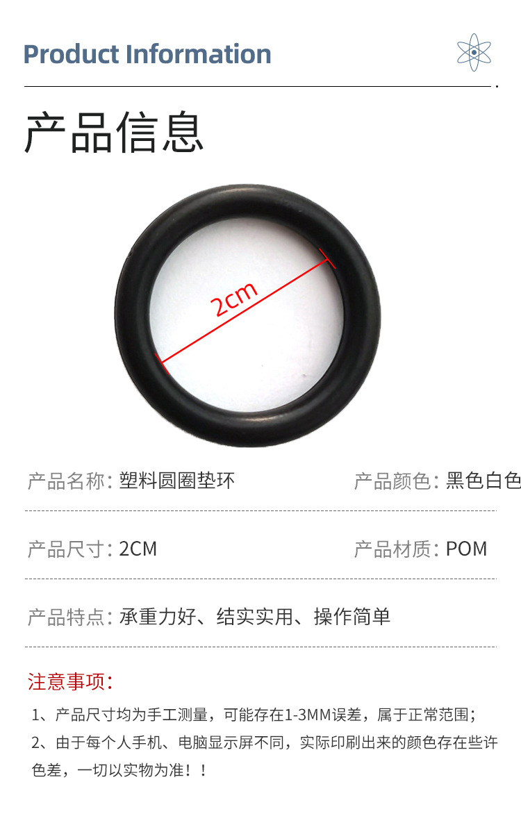 Оптовая продажа от производителя: пластиковые круглые прокладки 2 см, разделительные кольца, черно-белые многофункциональные аксессуары оптом, материалы под заказ
