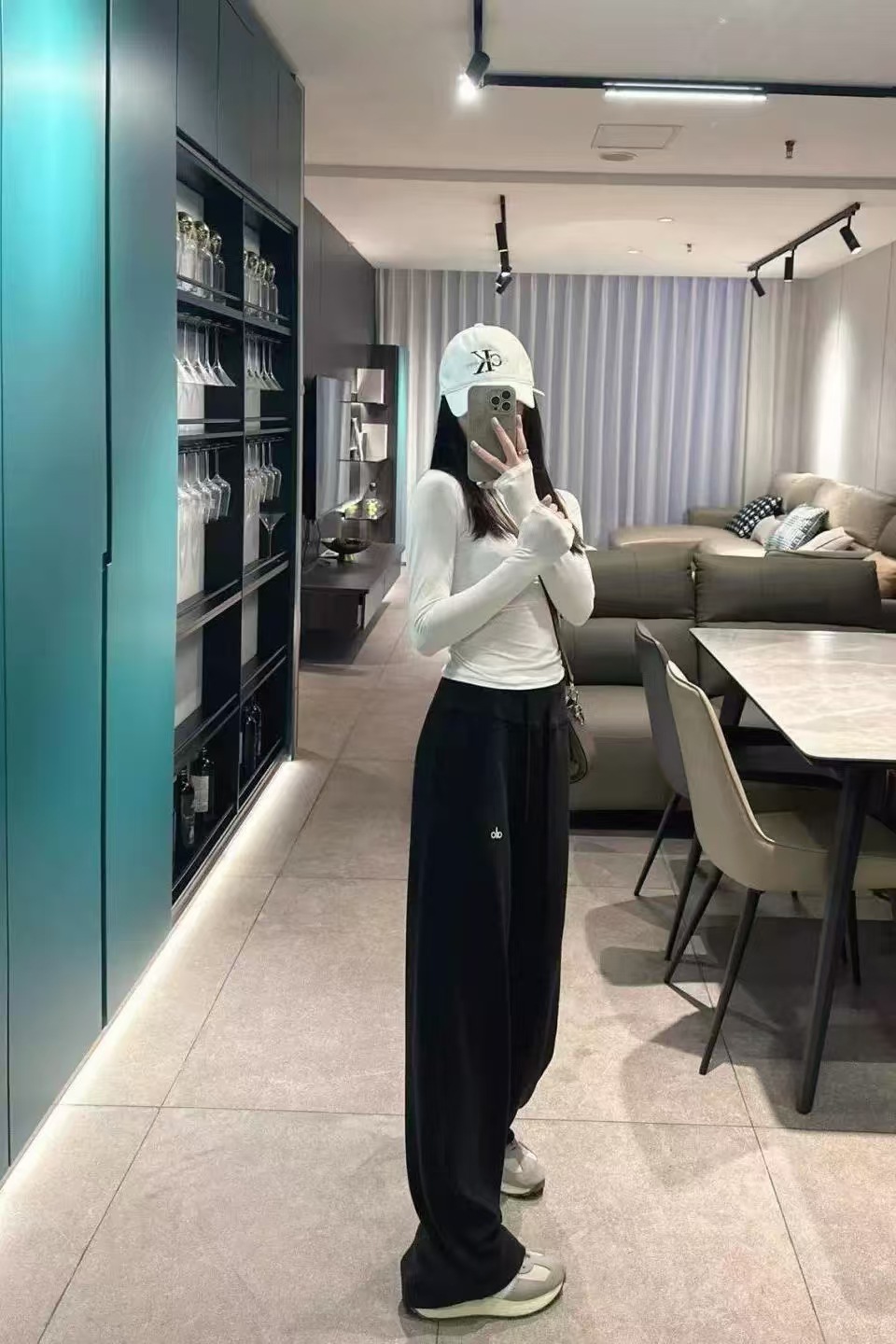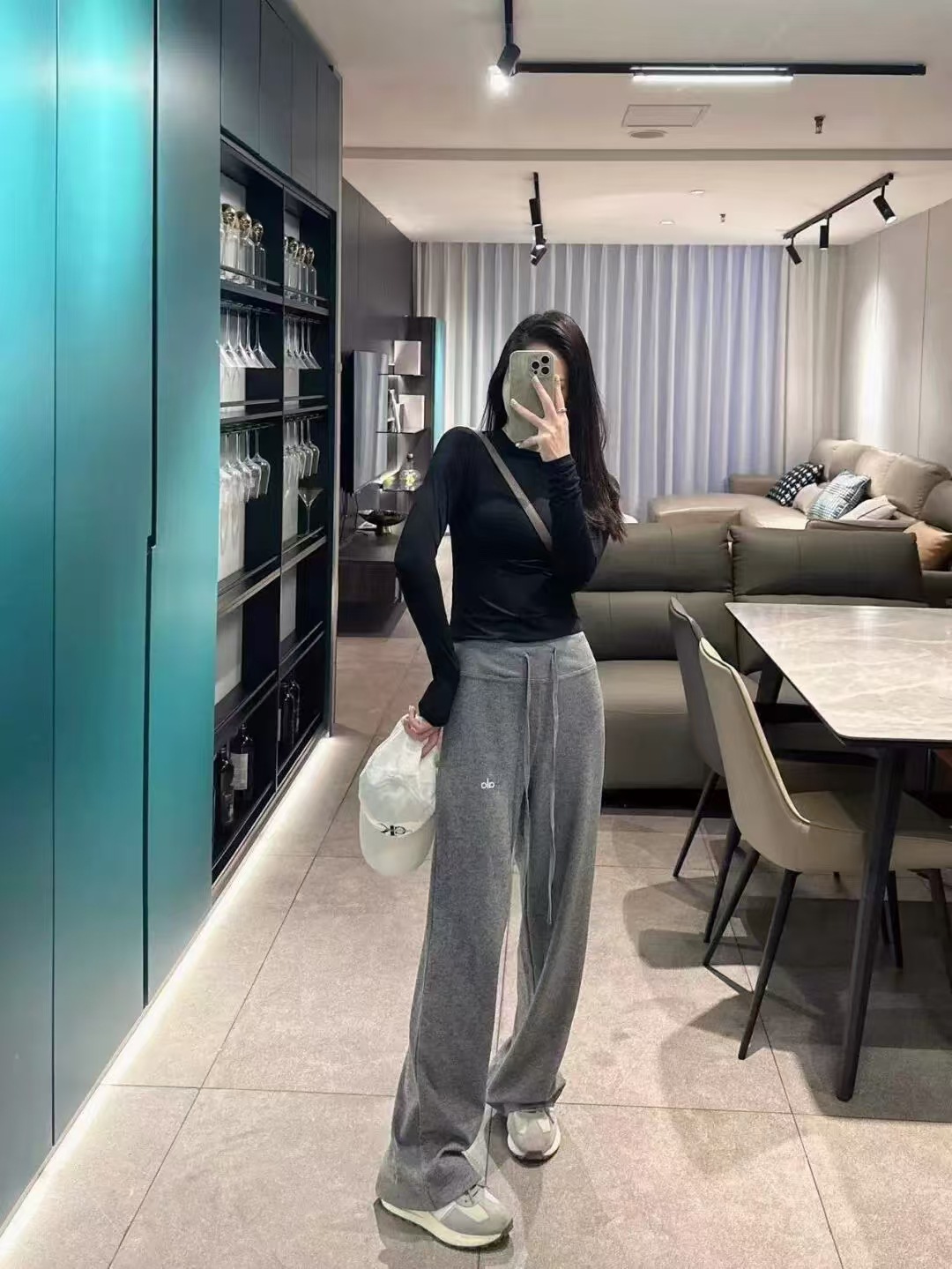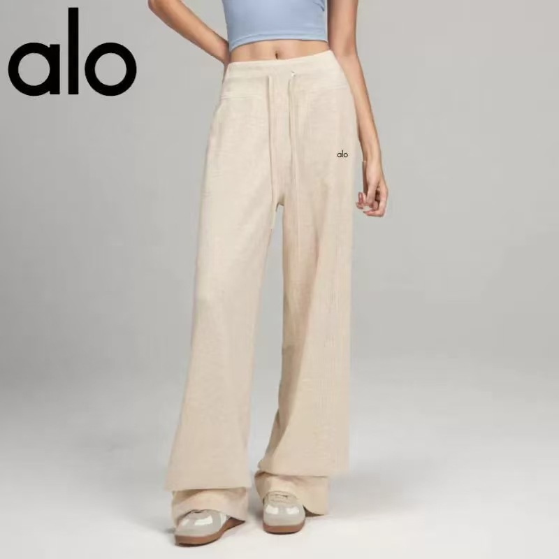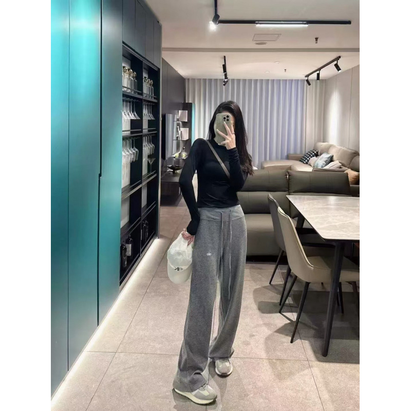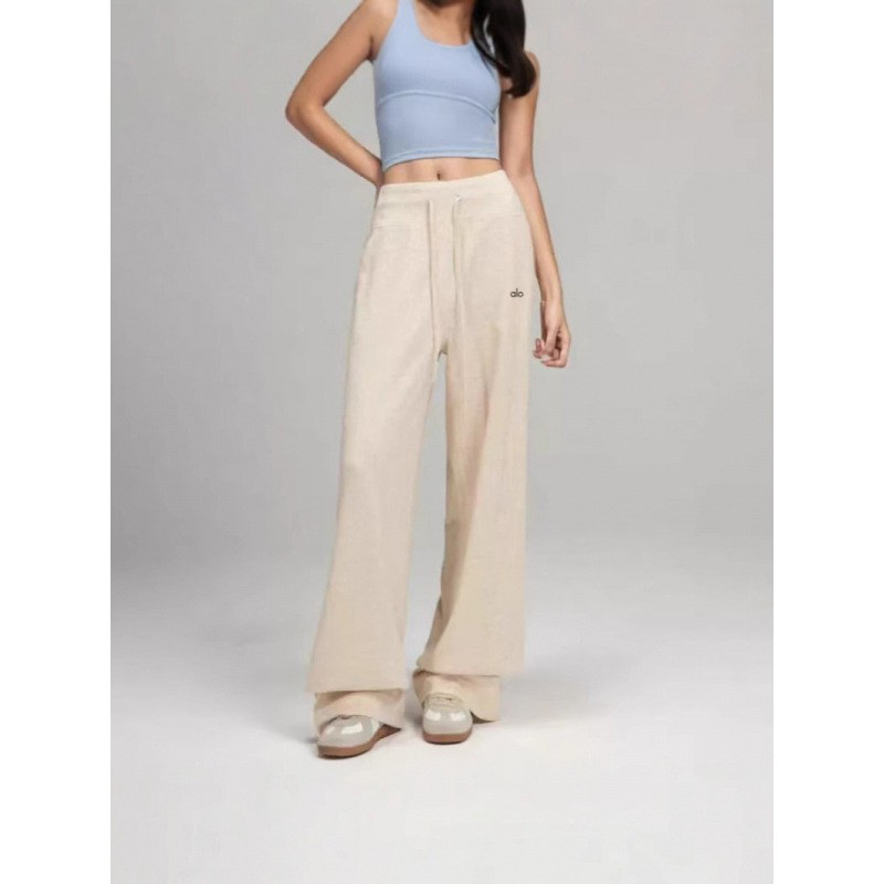 Женские спортивные брюки ALO2025 в корейском стиле, с высокой талией, драпировкой, текстурой, облегающие, универсальные, свободные, на шнурке, с широкими штанинами