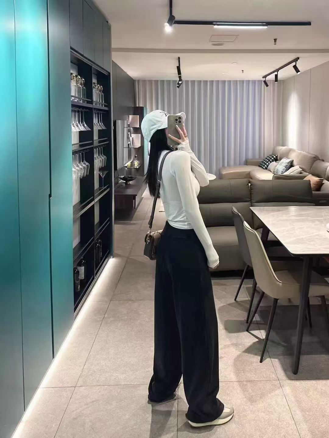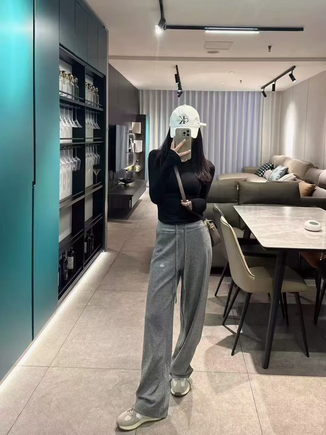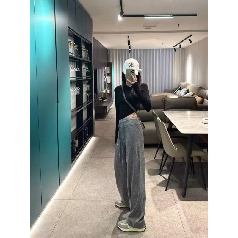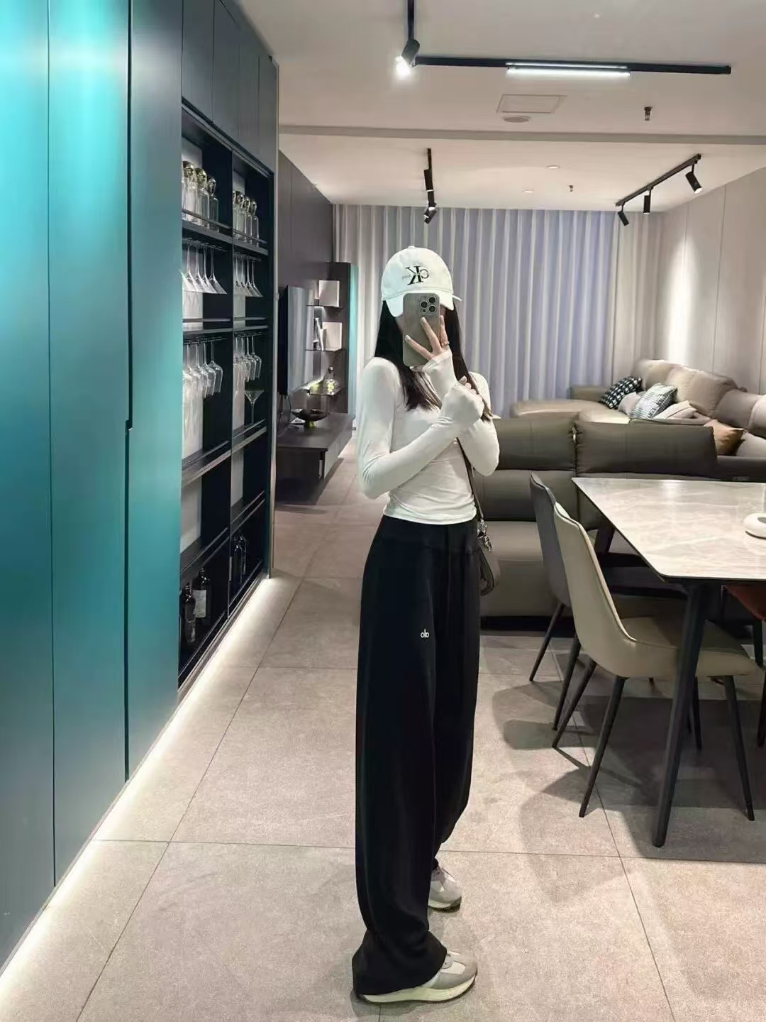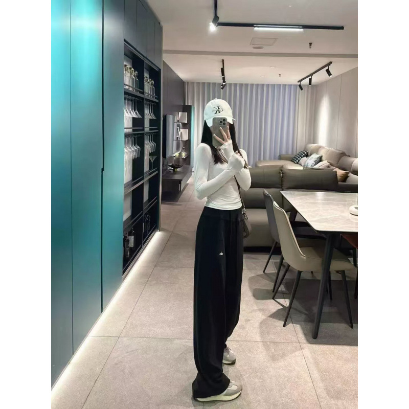 Женские спортивные брюки ALO2025 в корейском стиле, с высокой талией, драпировкой, текстурой, облегающие, универсальные, свободные, на шнурке, с широкими штанинами