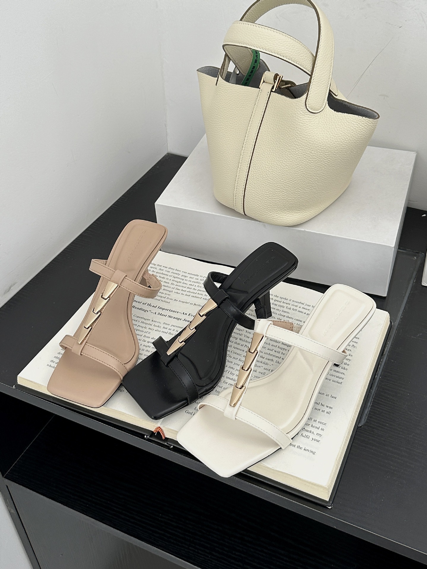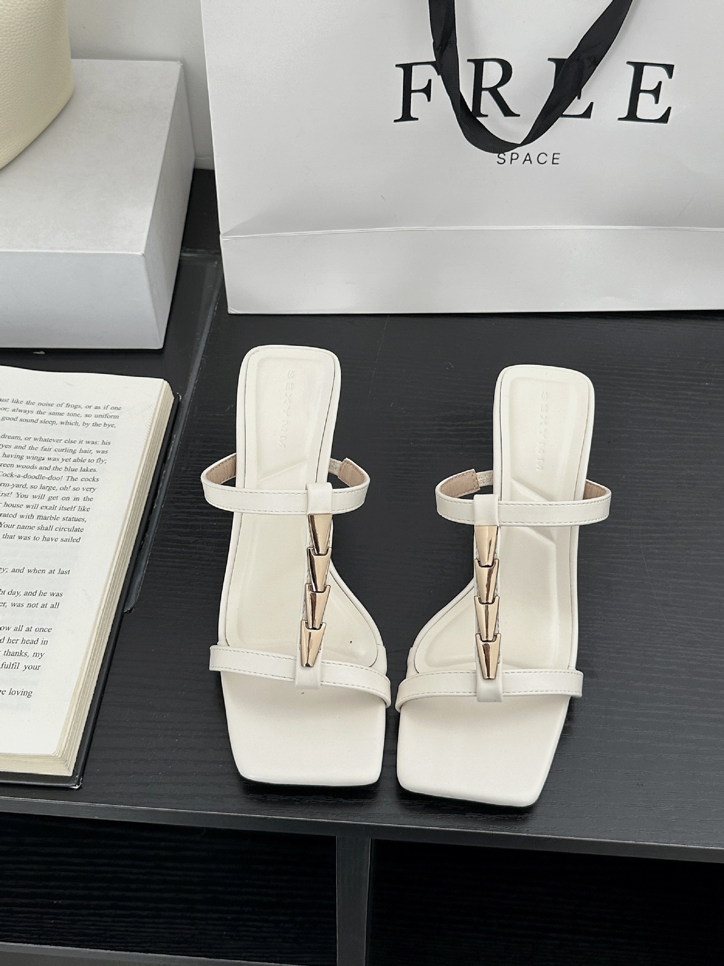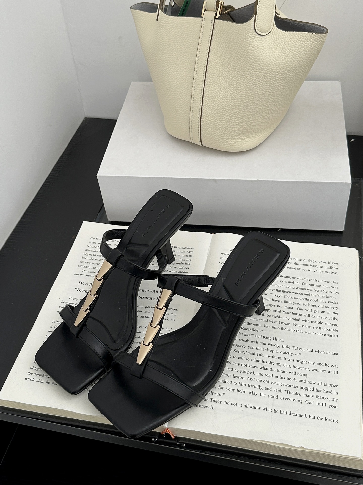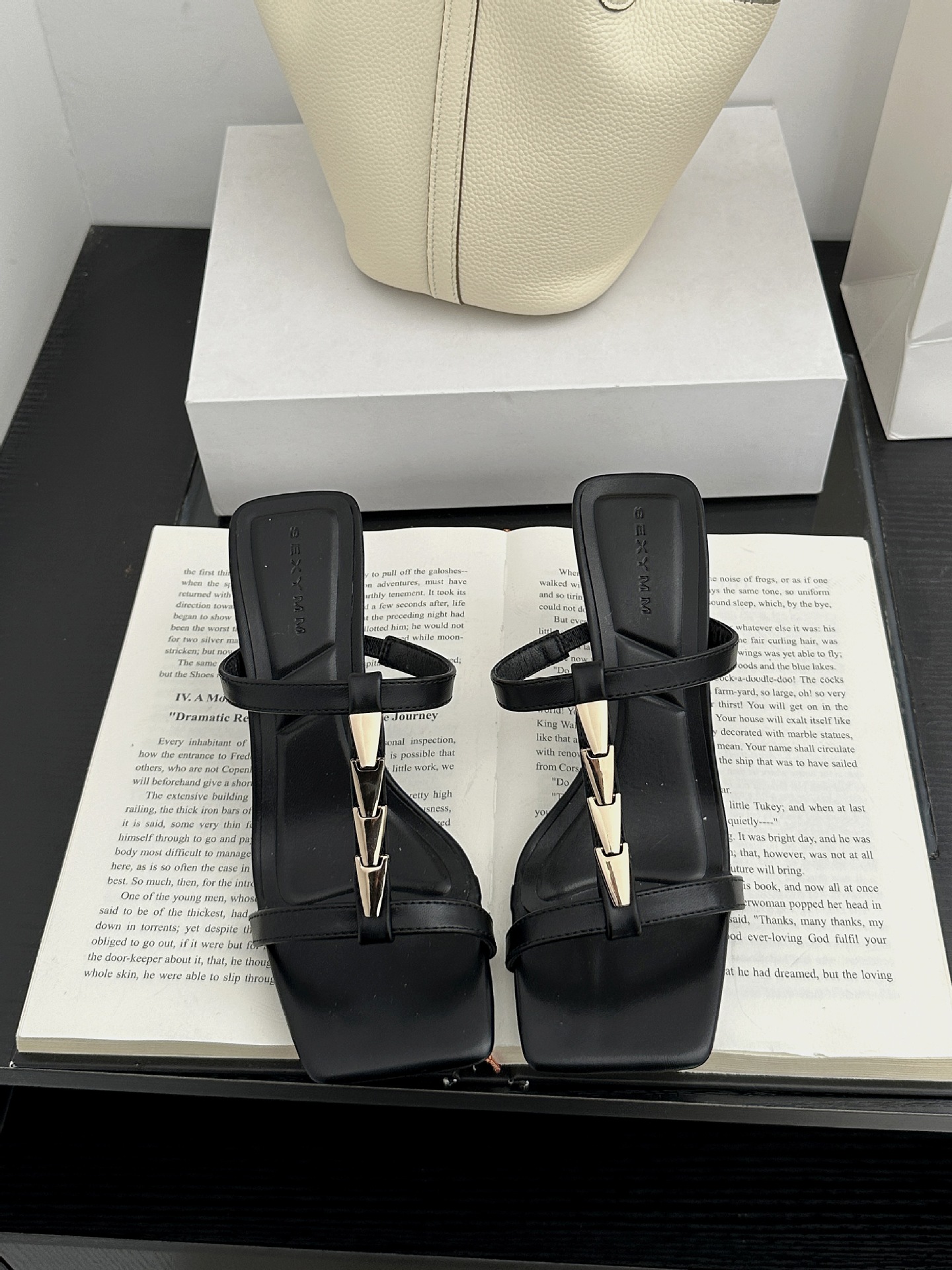 2025 Летняя французская нишета с открытыми пальцами и тонкими каблуками с тонкими металлическими персонажами со стразами на высоких каблуках женские холодные тапочки