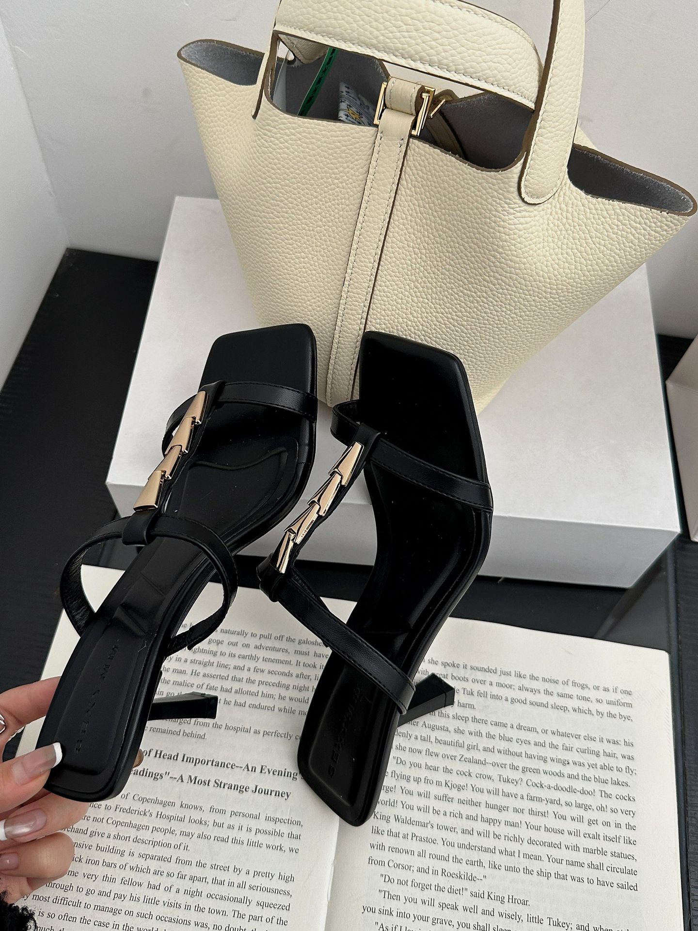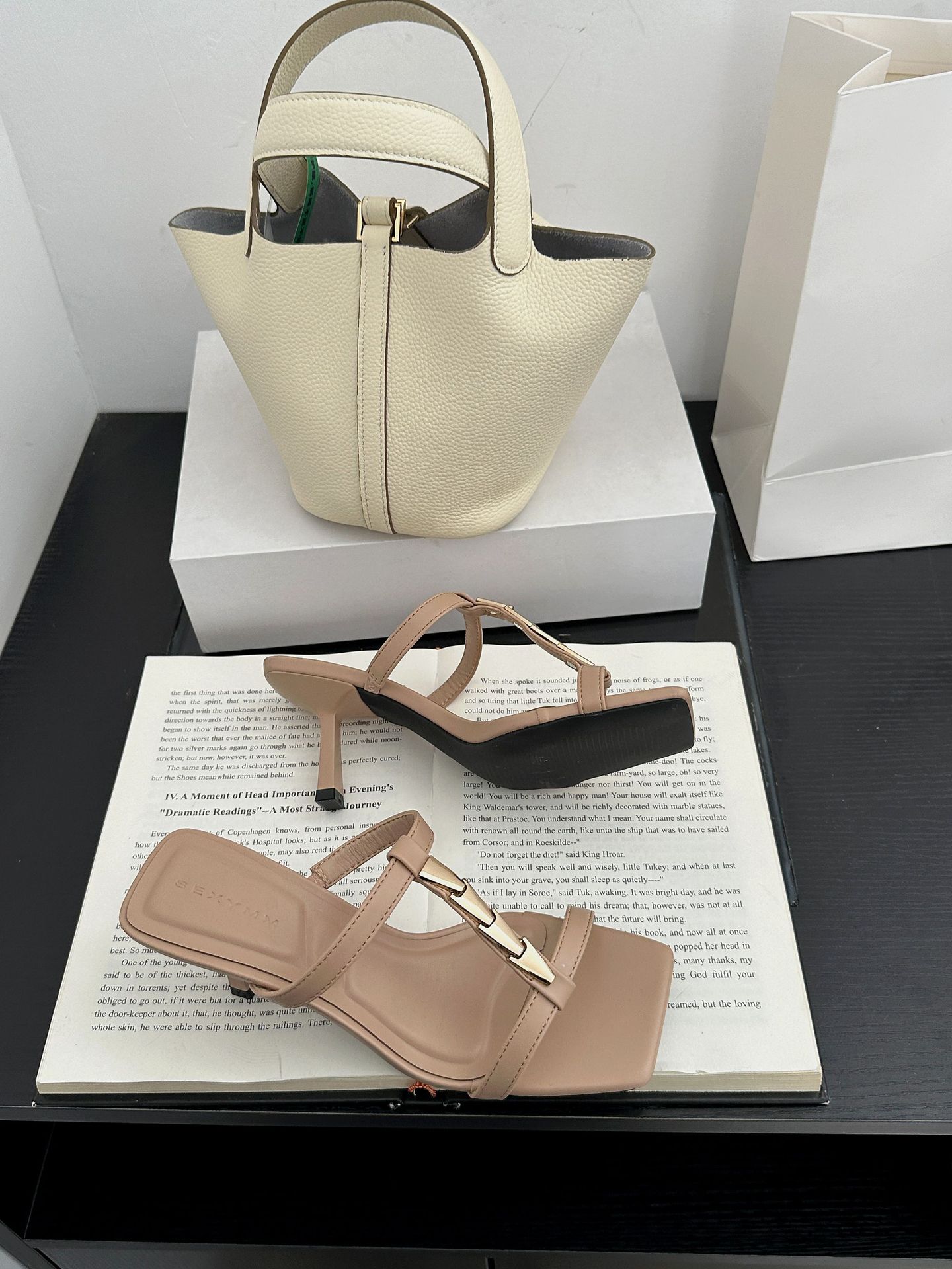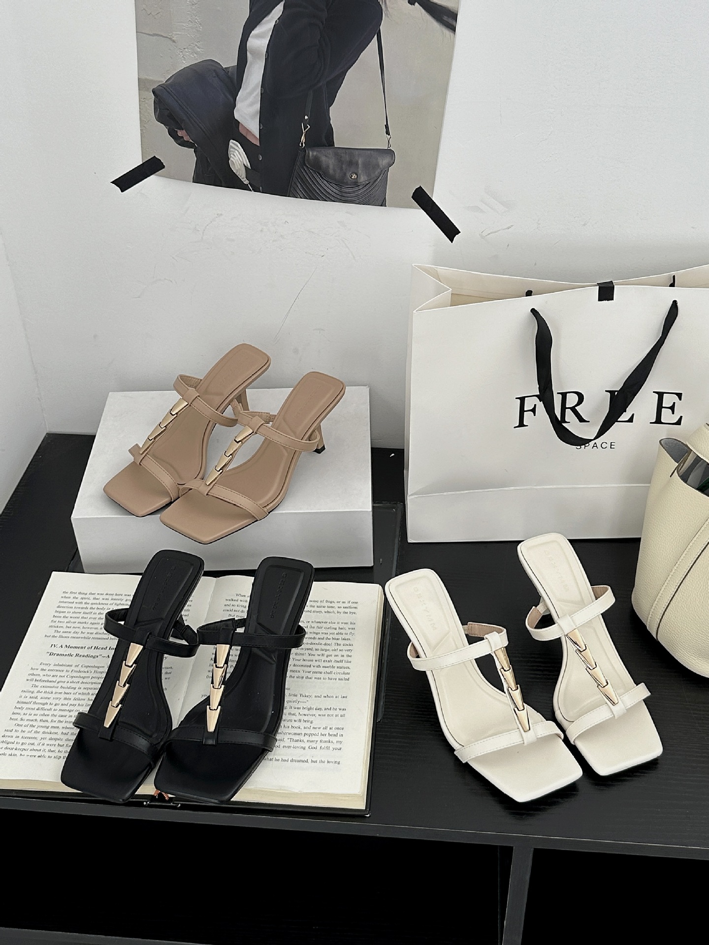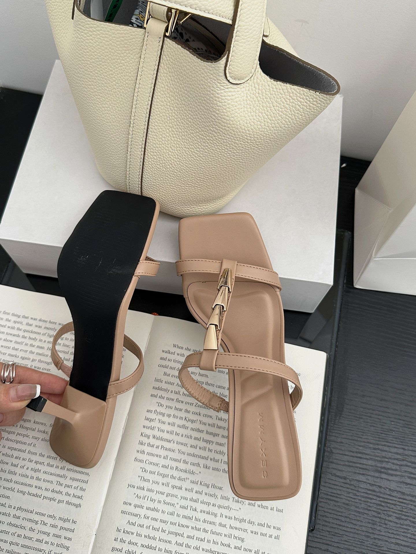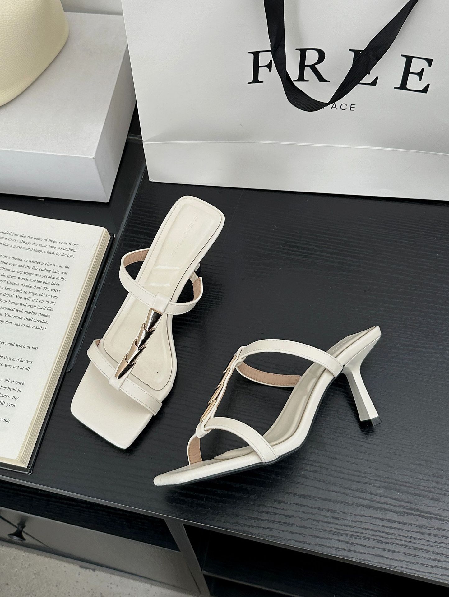 2025 Летняя французская нишета с открытыми пальцами и тонкими каблуками с тонкими металлическими персонажами со стразами на высоких каблуках женские холодные тапочки