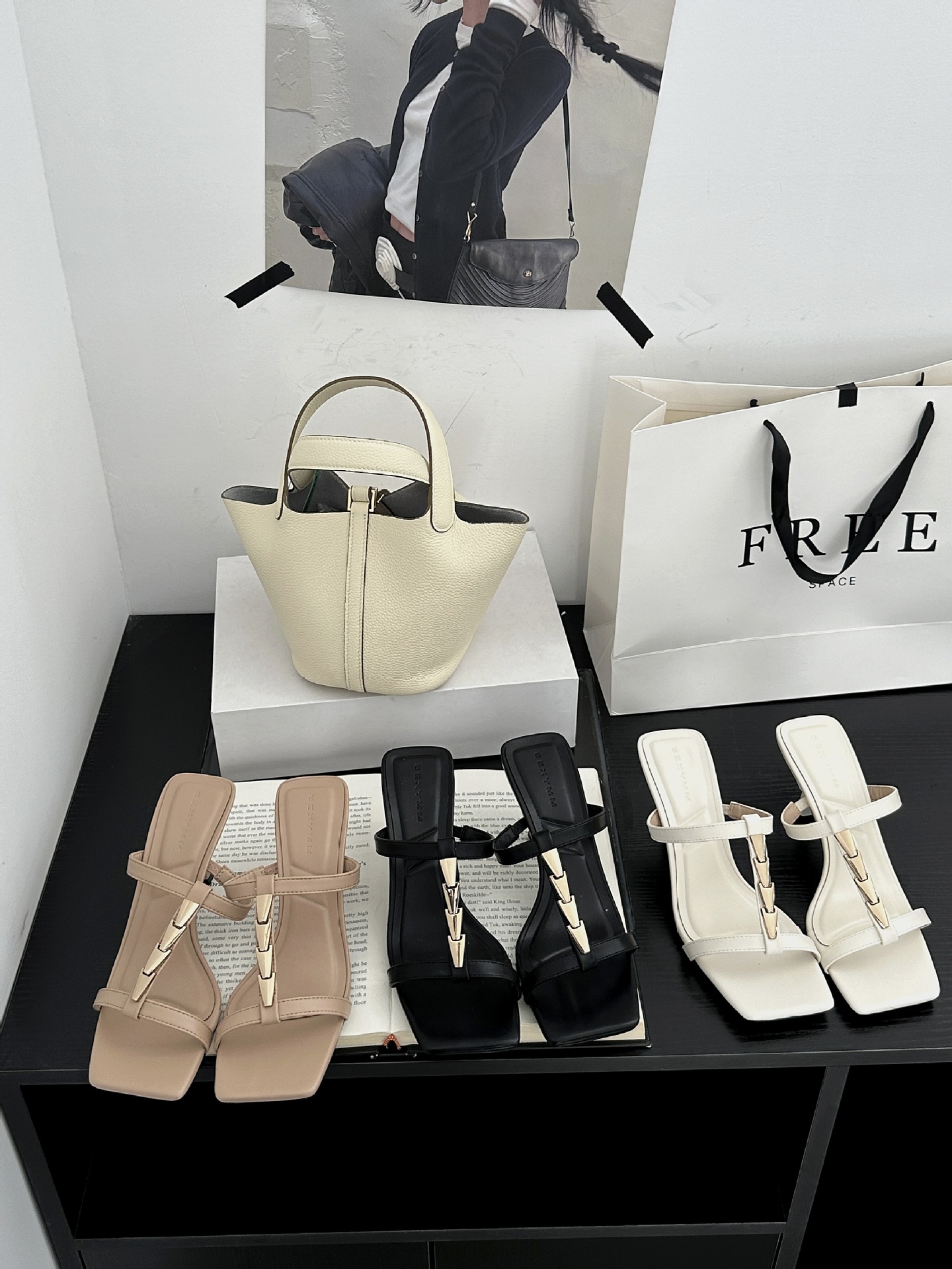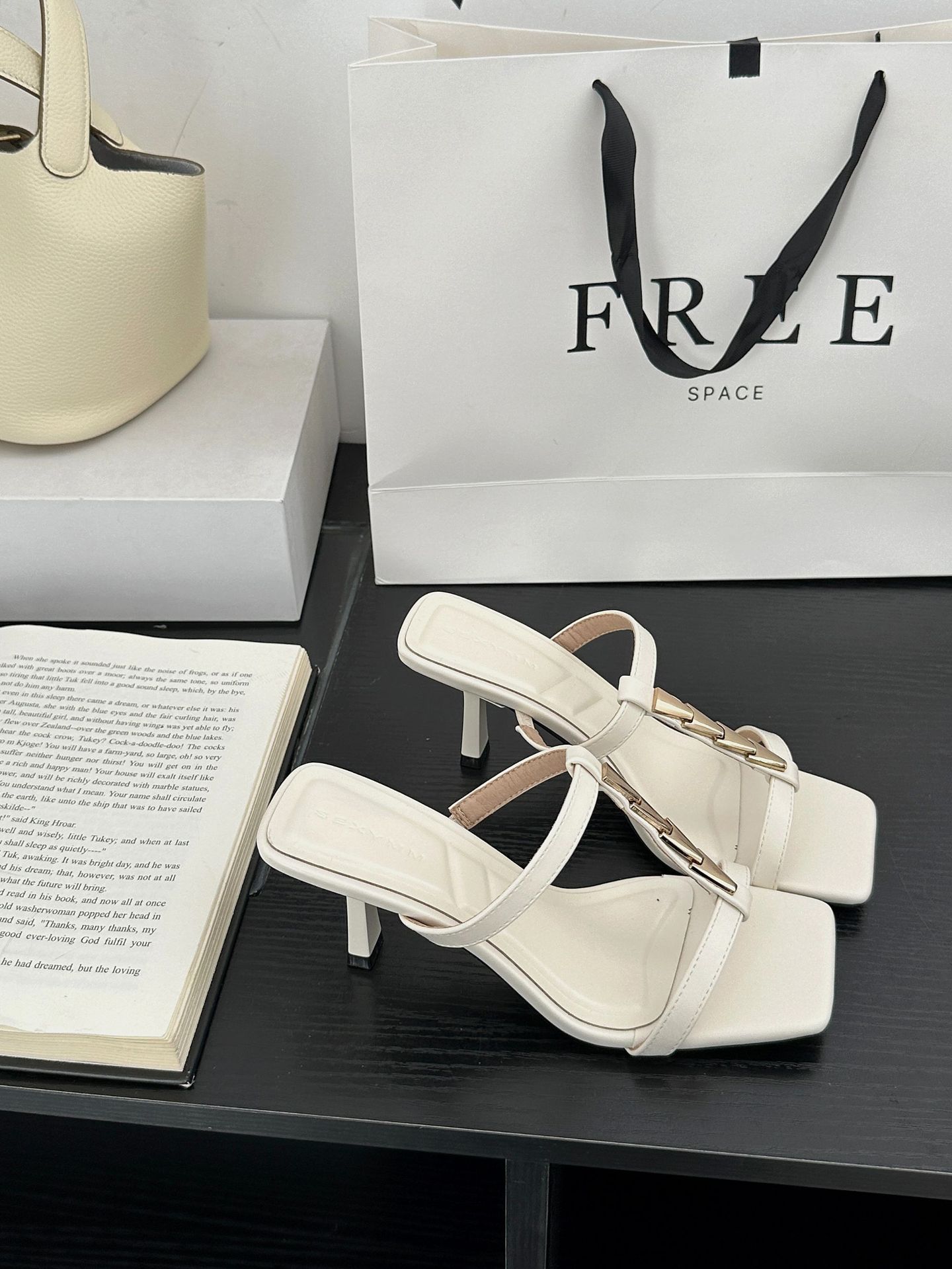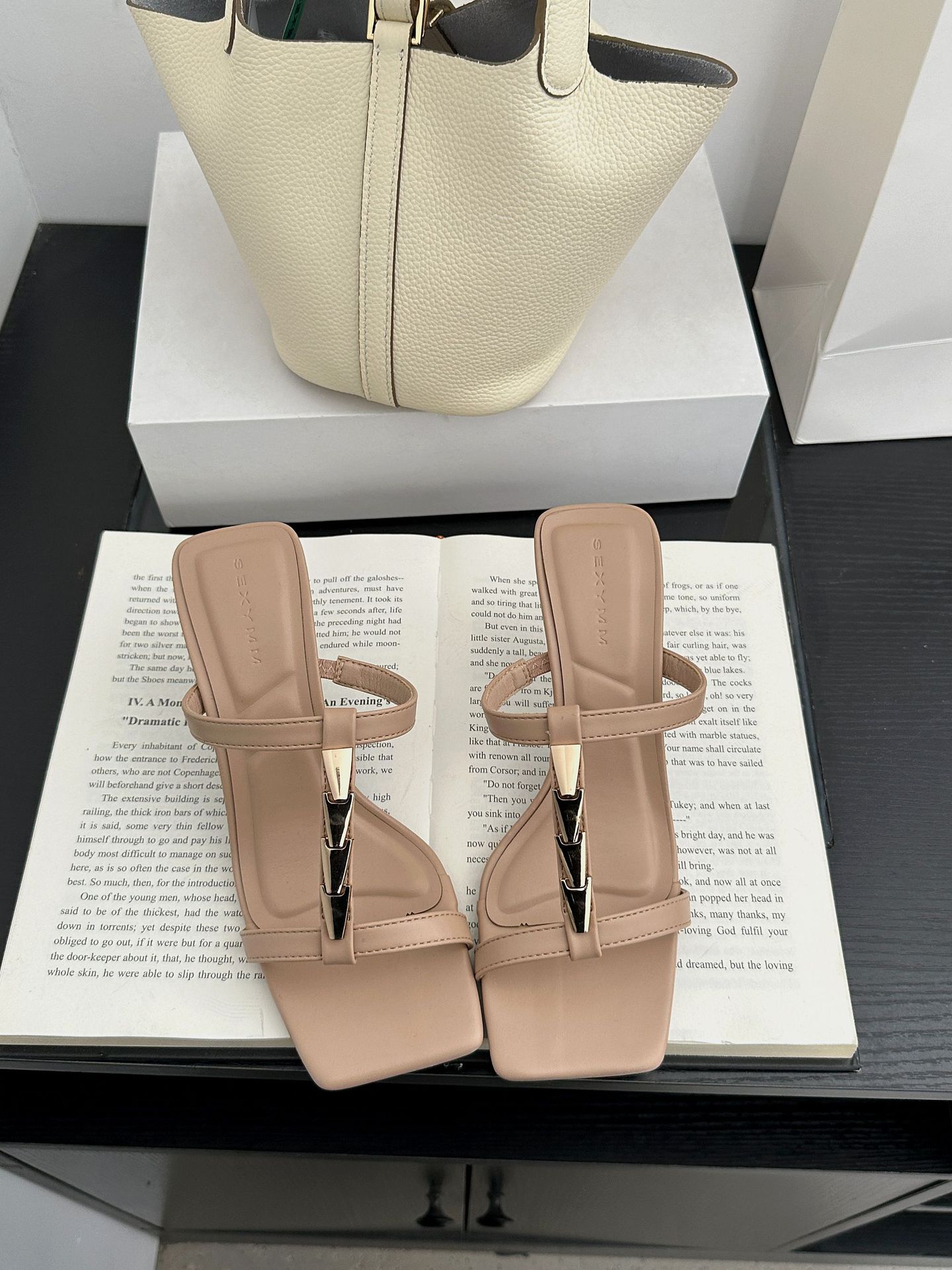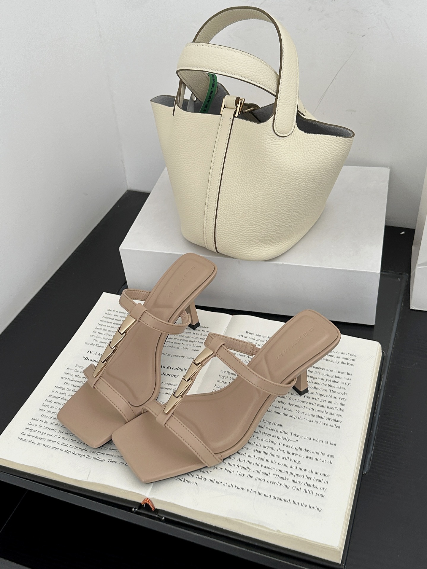 2025 Летняя французская нишета с открытыми пальцами и тонкими каблуками с тонкими металлическими персонажами со стразами на высоких каблуках женские холодные тапочки