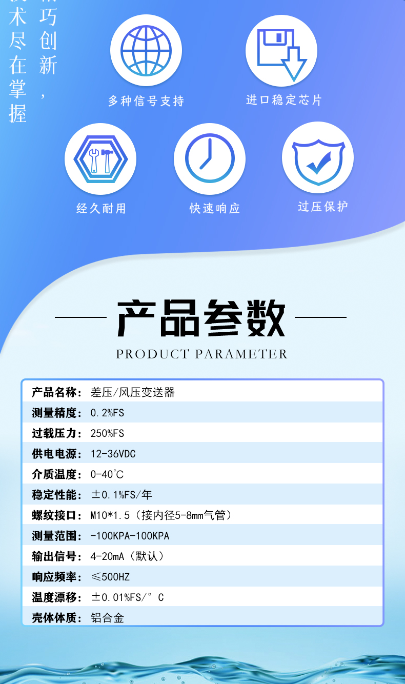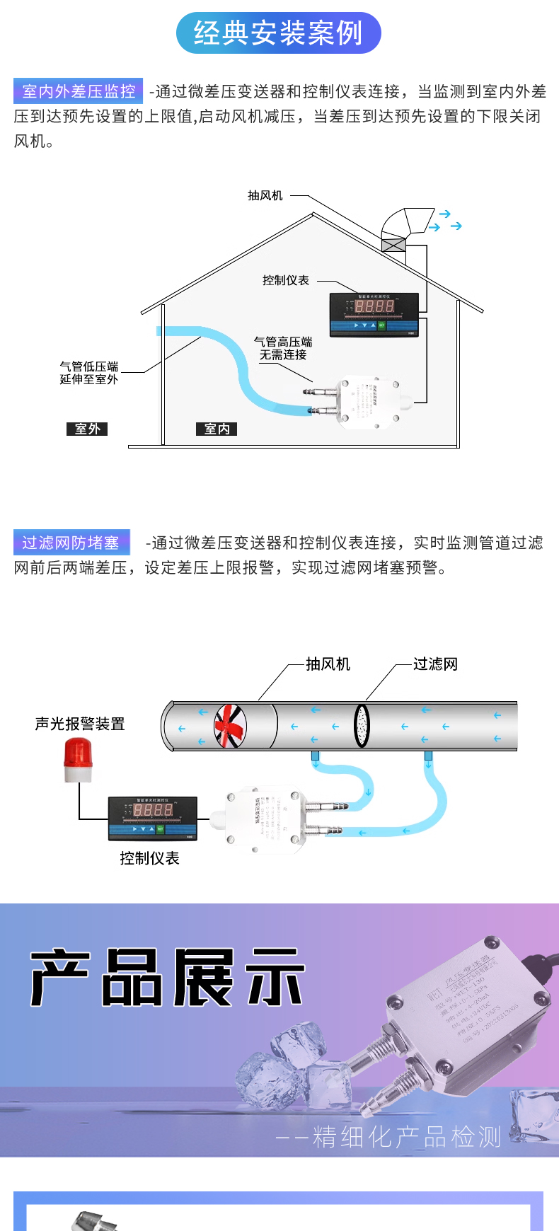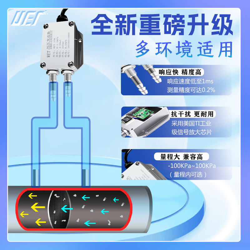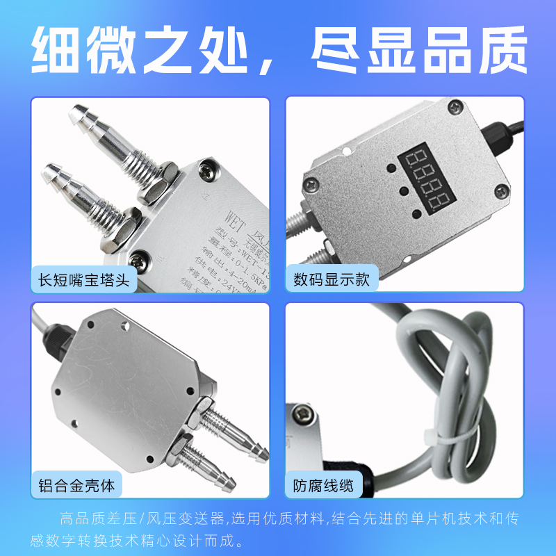 Датчик давления ветра Датчик дифференциального давления 4-20mA Давление вентилятора Воздуховая труба Разница давления в печи отрицательное давление 0-5V10V