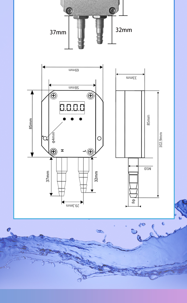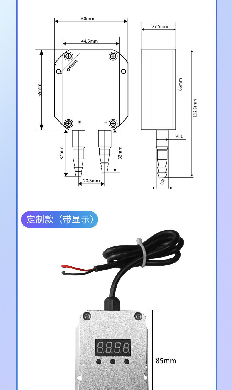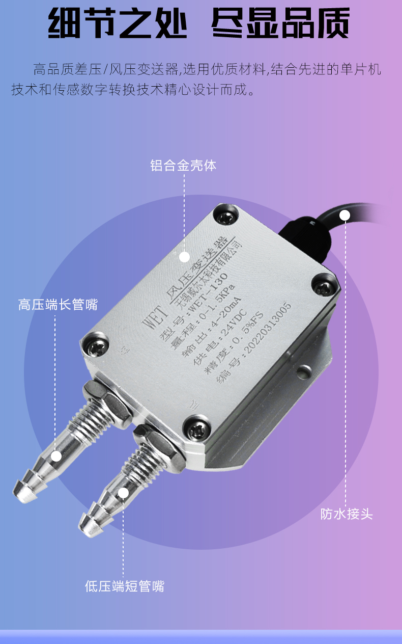 Датчик давления ветра Датчик дифференциального давления 4-20mA Давление вентилятора Воздуховая труба Разница давления в печи отрицательное давление 0-5V10V
