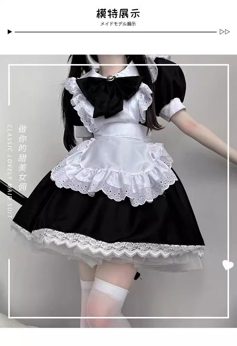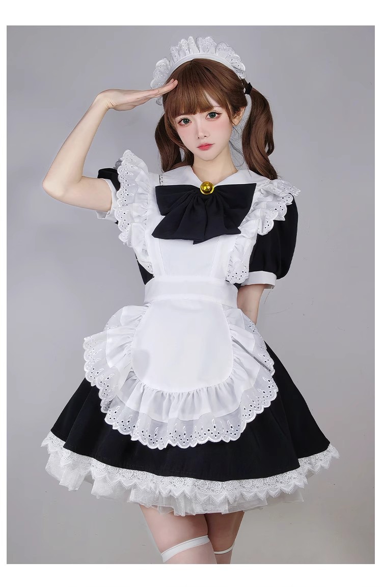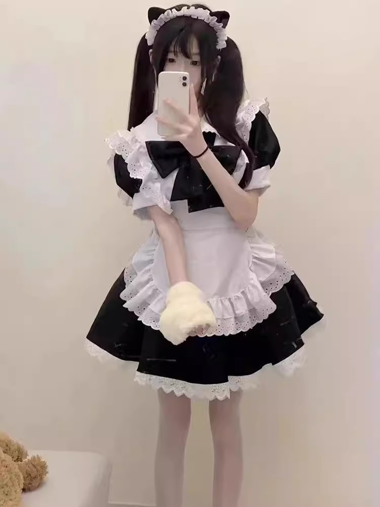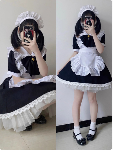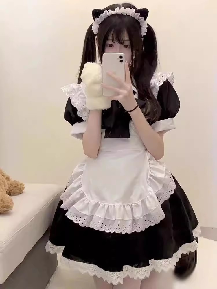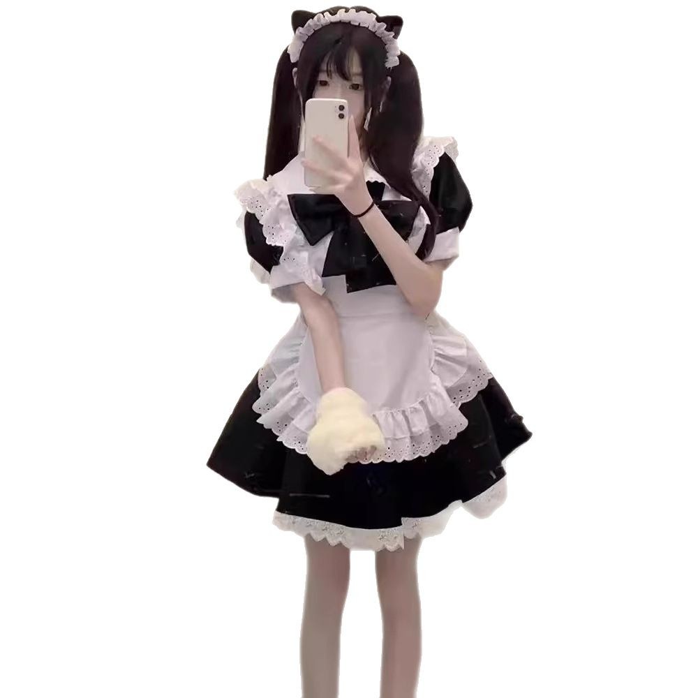Японский милый костюм Лолиты с кроликом для девочек, черно-белый наряд горничной, платье Лолиты