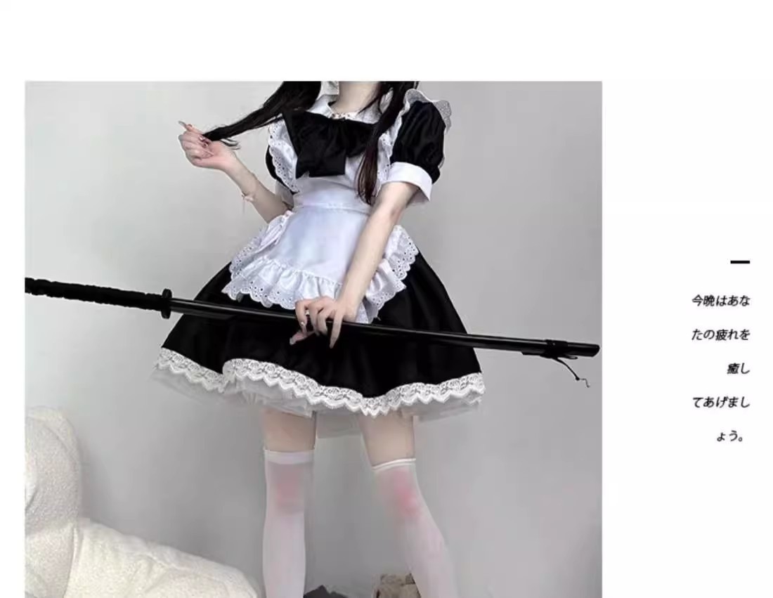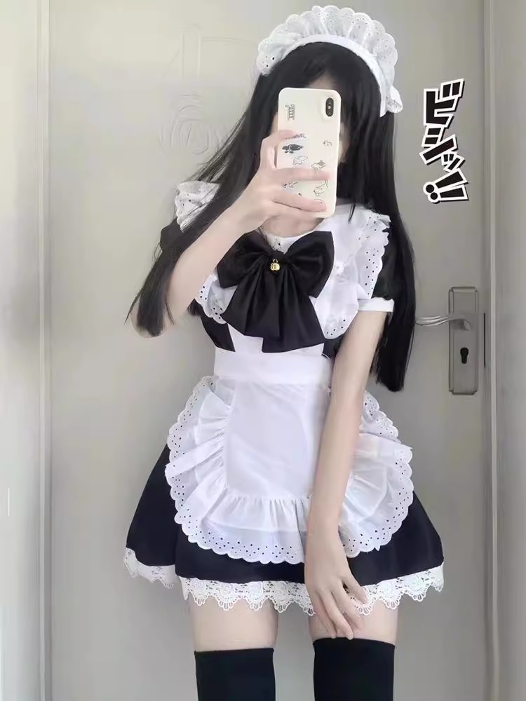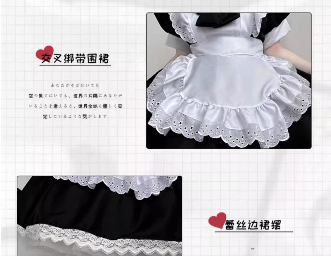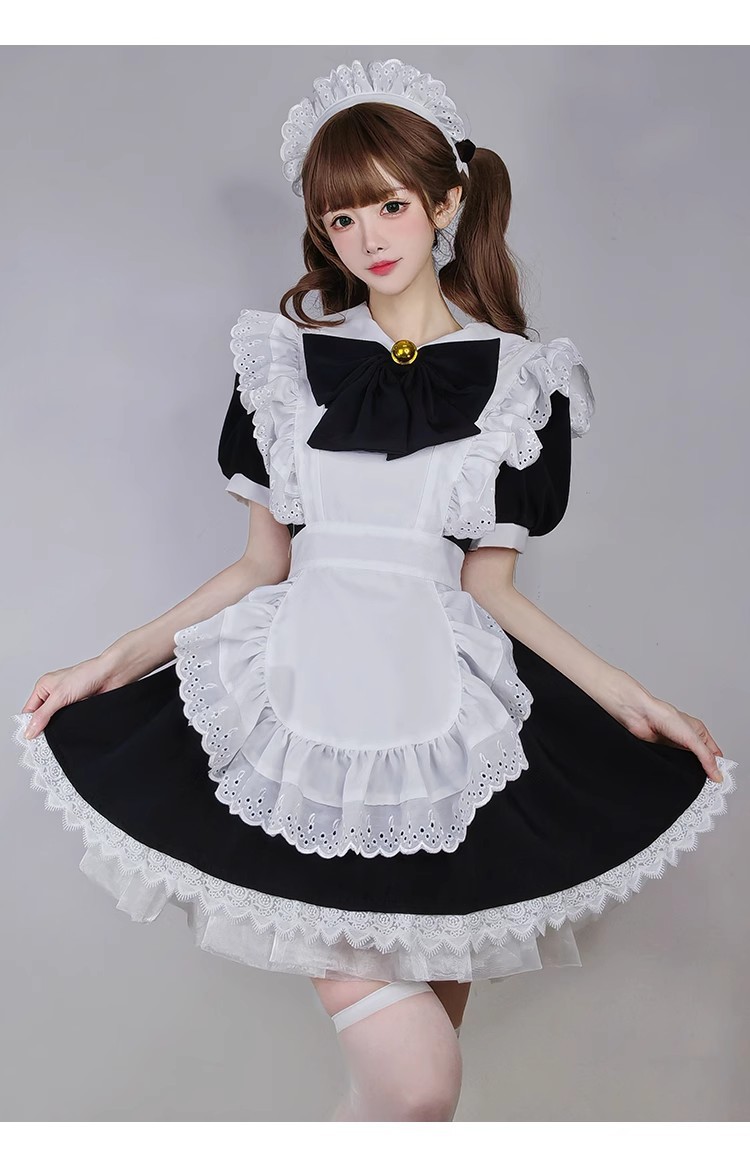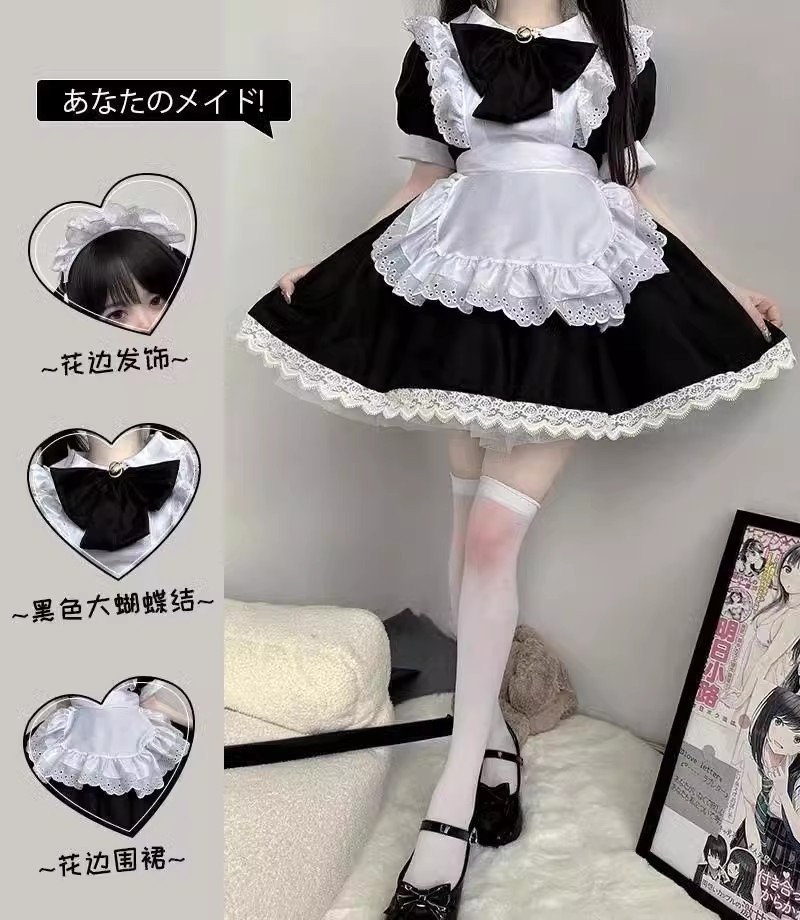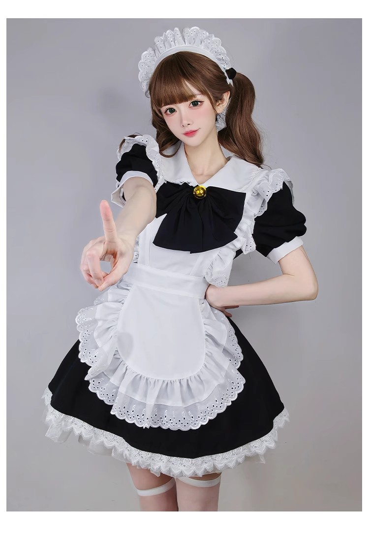 Японский милый костюм Лолиты с кроликом для девочек, черно-белый наряд горничной, платье Лолиты
