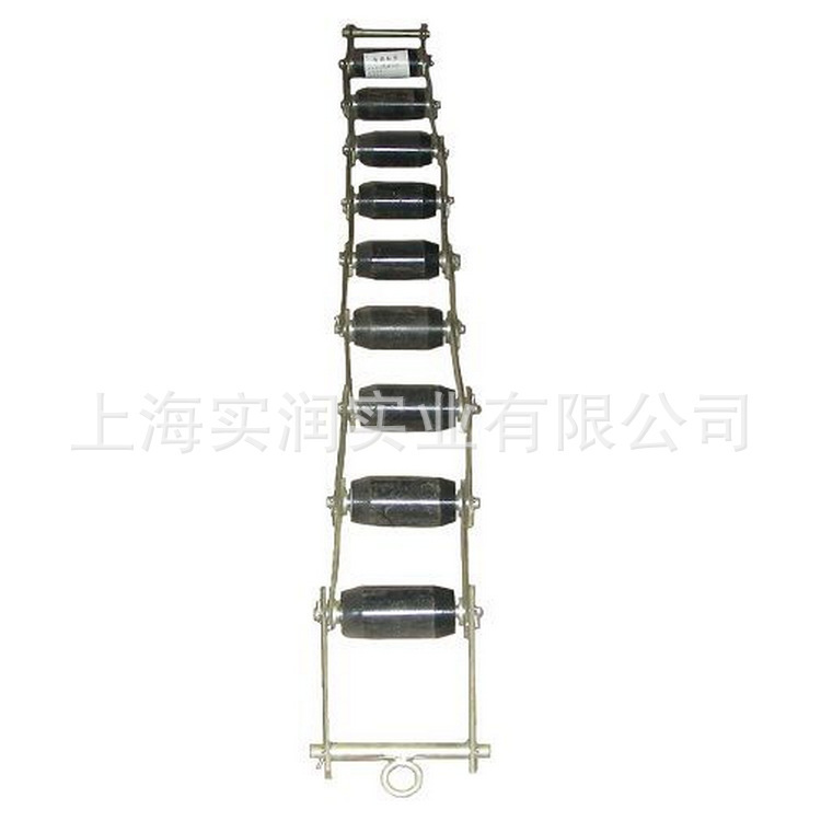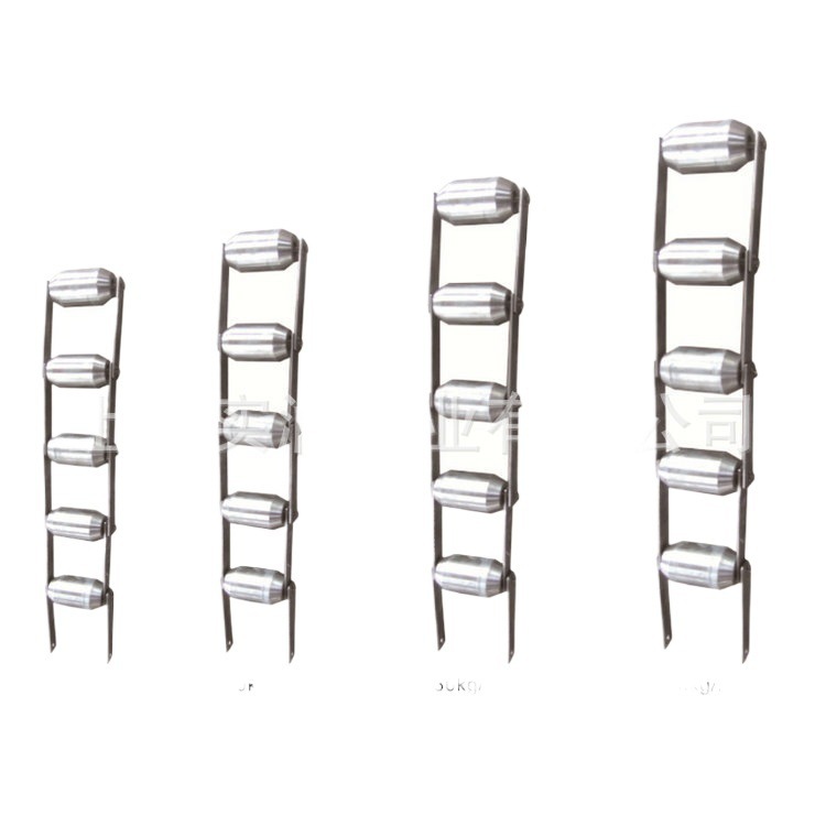标定链码是由许多个质量相等的长球形链球通过间距200mm的链接板连成一条链码。标定时把链码放在皮带输送带上(电子皮带秤称重区域),链码两端要固定栓住,当皮带输送机启动后链码即在皮带上原地滚轮转动以模拟物料随皮带运转、链球内装有轴承,转动灵活。