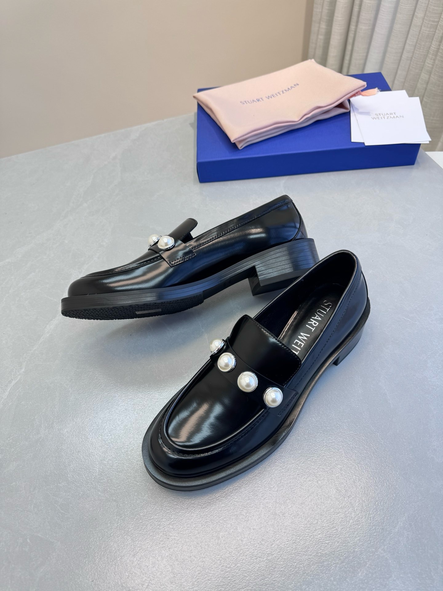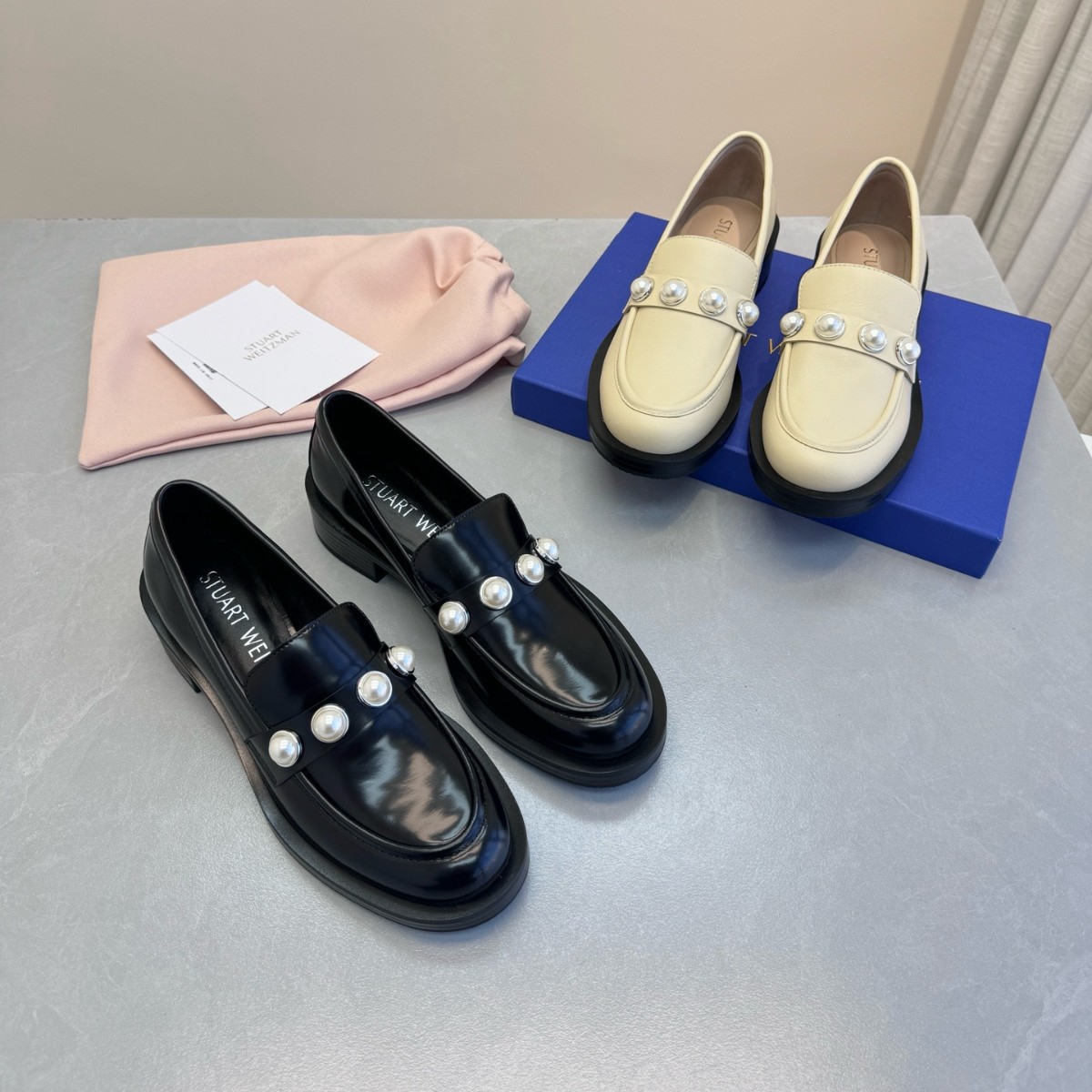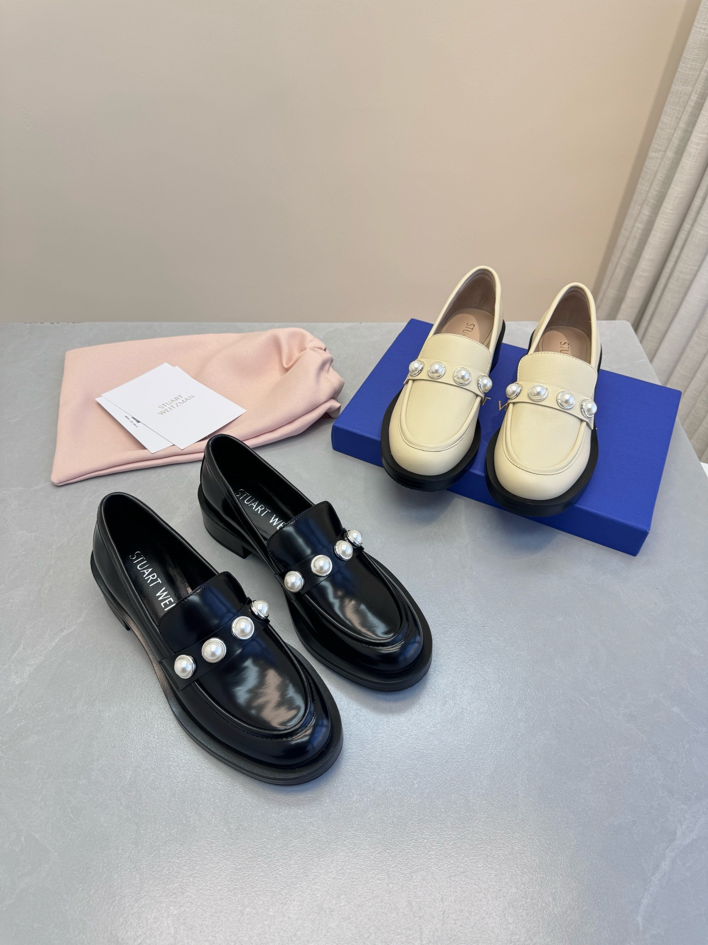 SW маленькие кожаные туфли из натуральной кожи на толстой подошве с жемчугом для женщин, новинка 2025 года, весенне-летние лоферы в британском стиле для женщин, универсальные трендовые туфли на плоской подошве