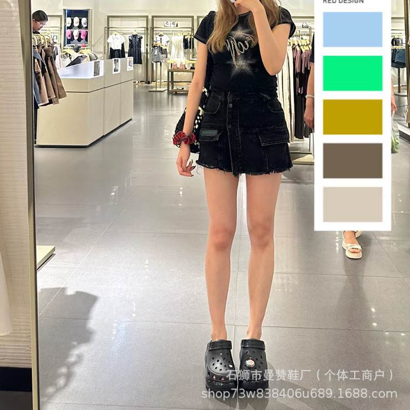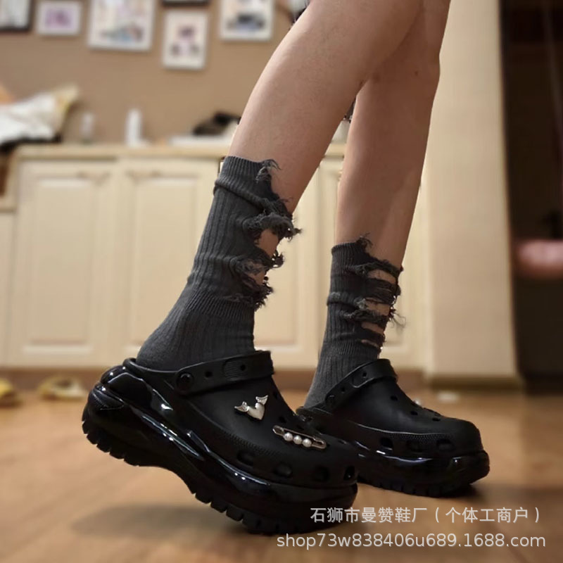 Женские сандалии с перекрестными ремешками, на толстой подошве, увеличивающие рост, с глянцевым дизайном и закрытым носком, пляжные сандалии 2079882025, глянцевый дизайн.