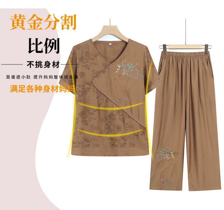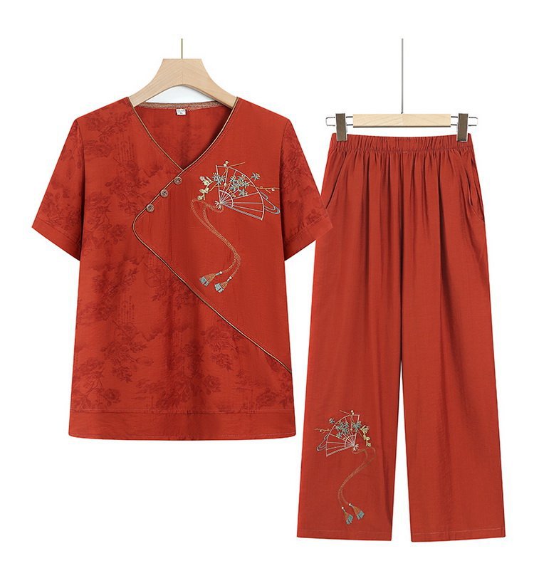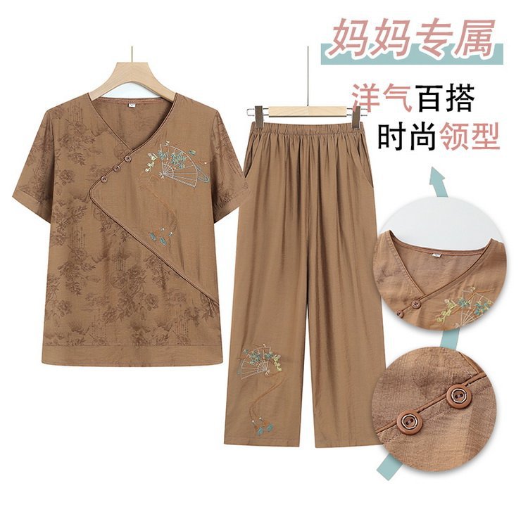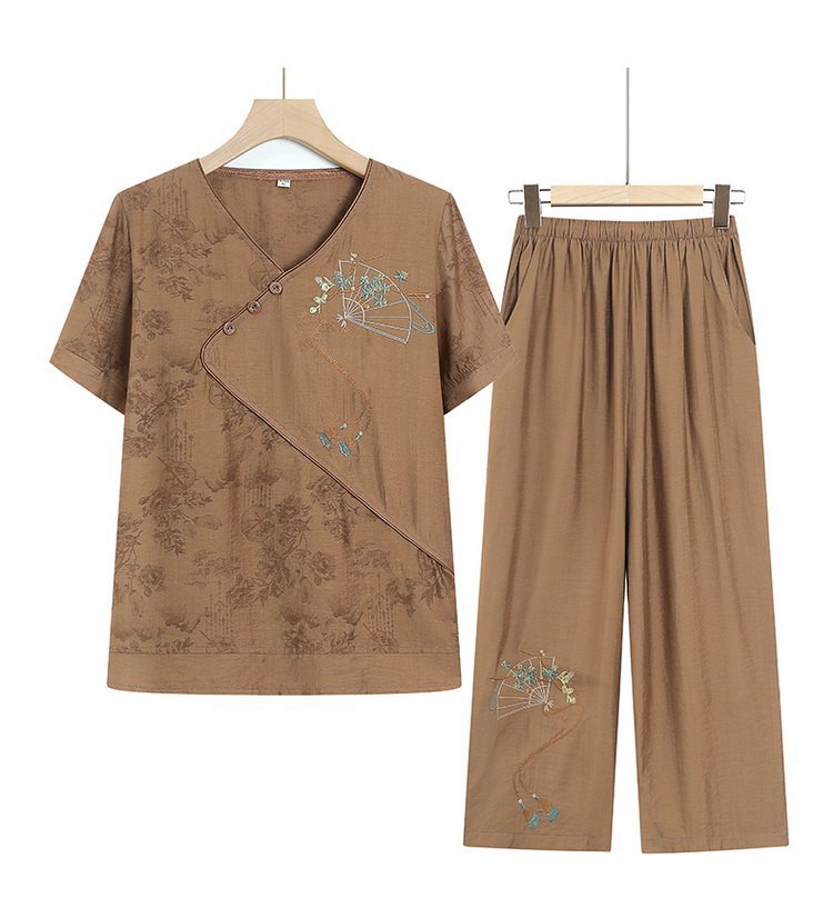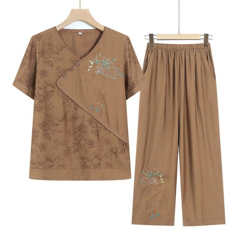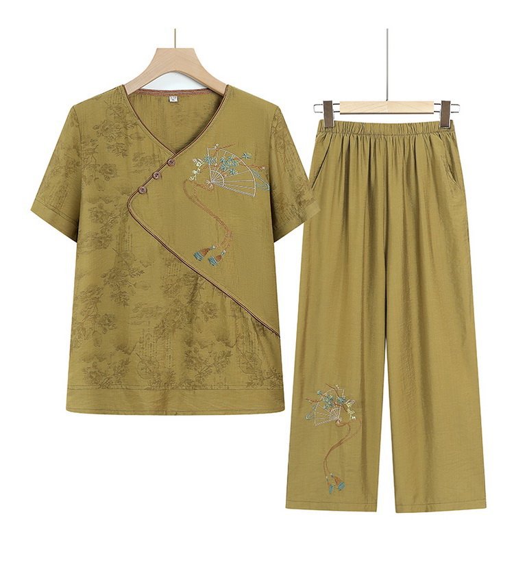Средний возраст мамы летний костюм 2025 новый китайский хлопковый и льняный топ