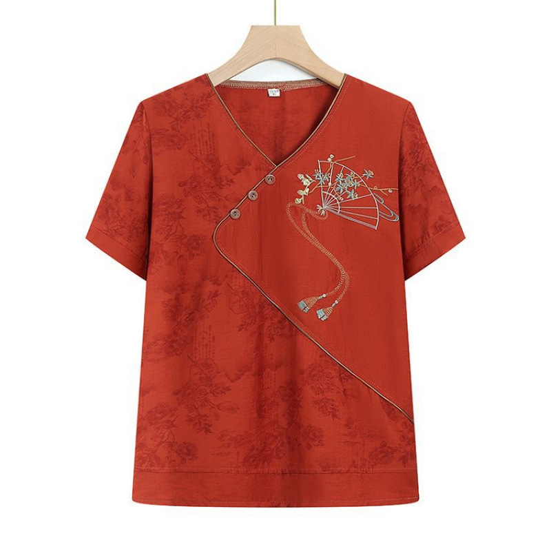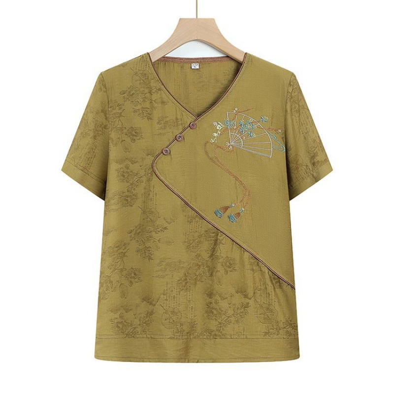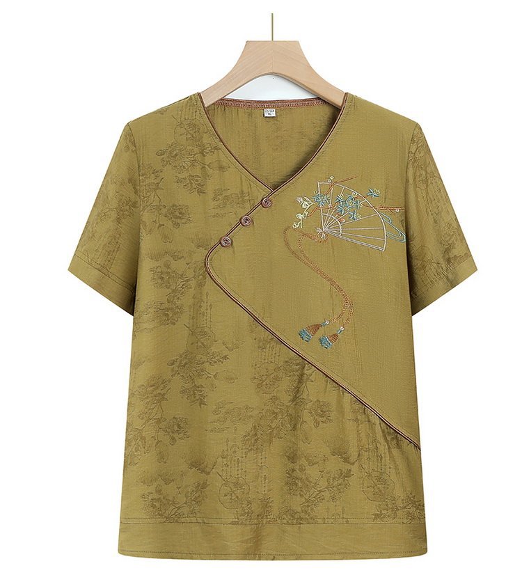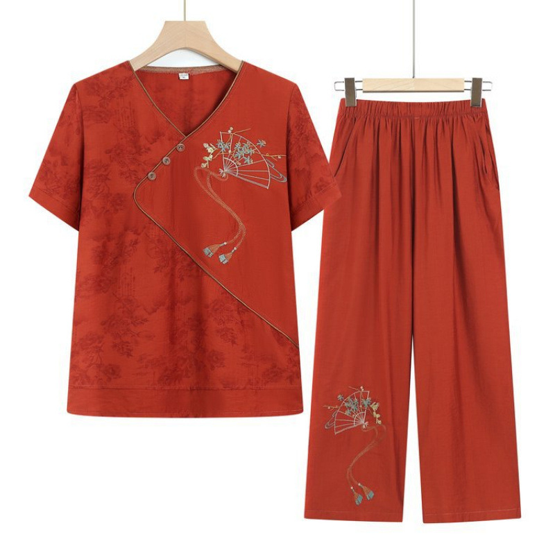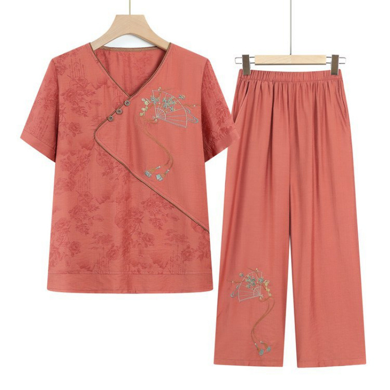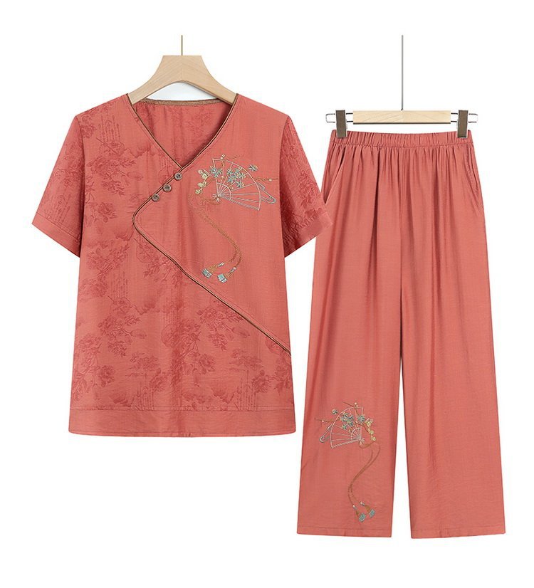 Средний возраст мамы летний костюм 2025 новый китайский хлопковый и льняный топ