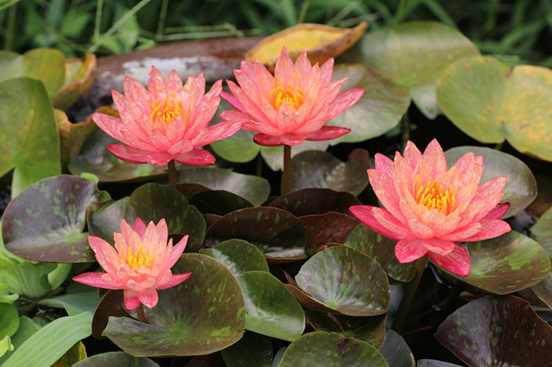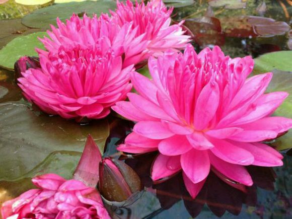 желтая водяная лилия; белая водяная лилия; красная водяная лилия; розовая водяная лилия