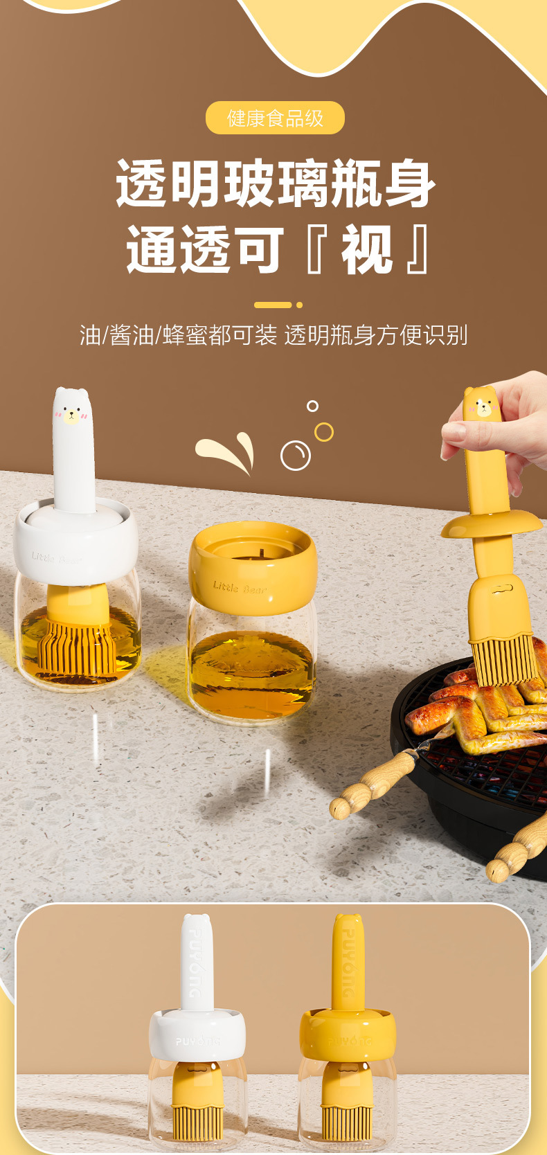Бытовая масляная щетка, устойчивая к высоким температурам, встроенная стеклянная бутылка для масла, специальная пищевая кухонная масляная щетка для барбекю, силиконовая щетка
