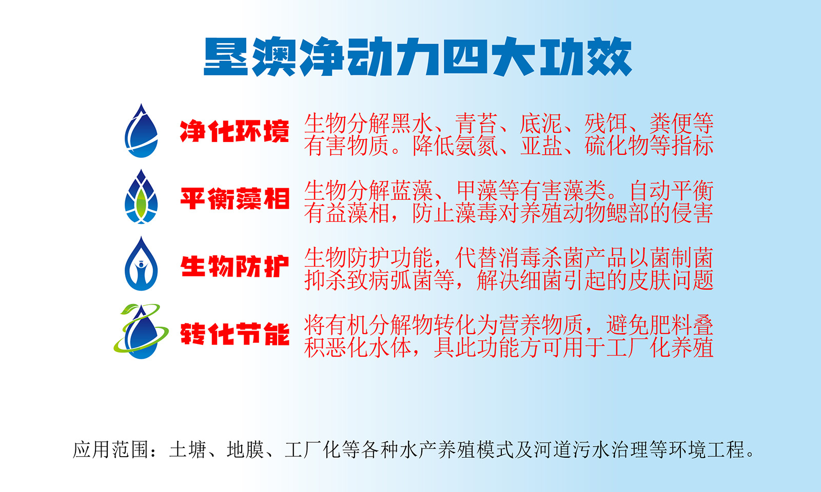 2、抑制并分解有害藻类,平衡藻菌、净化水质,稳定或提高酸碱度。