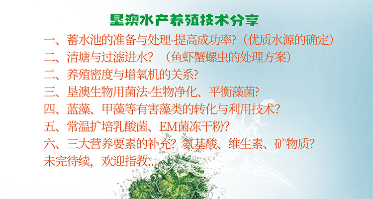 1、分解水体及塘底所有有机污染物并转化为藻菌需要的营养物质。