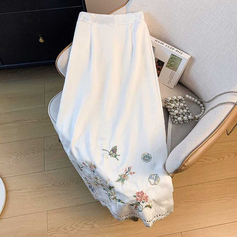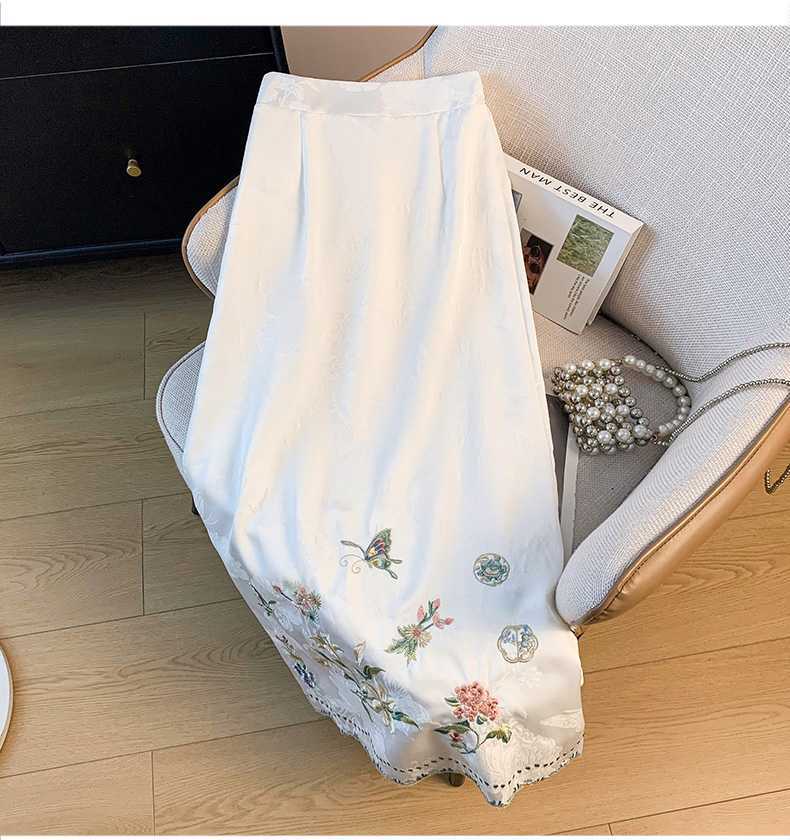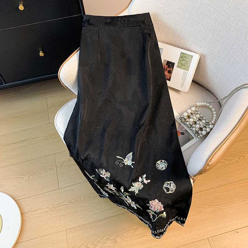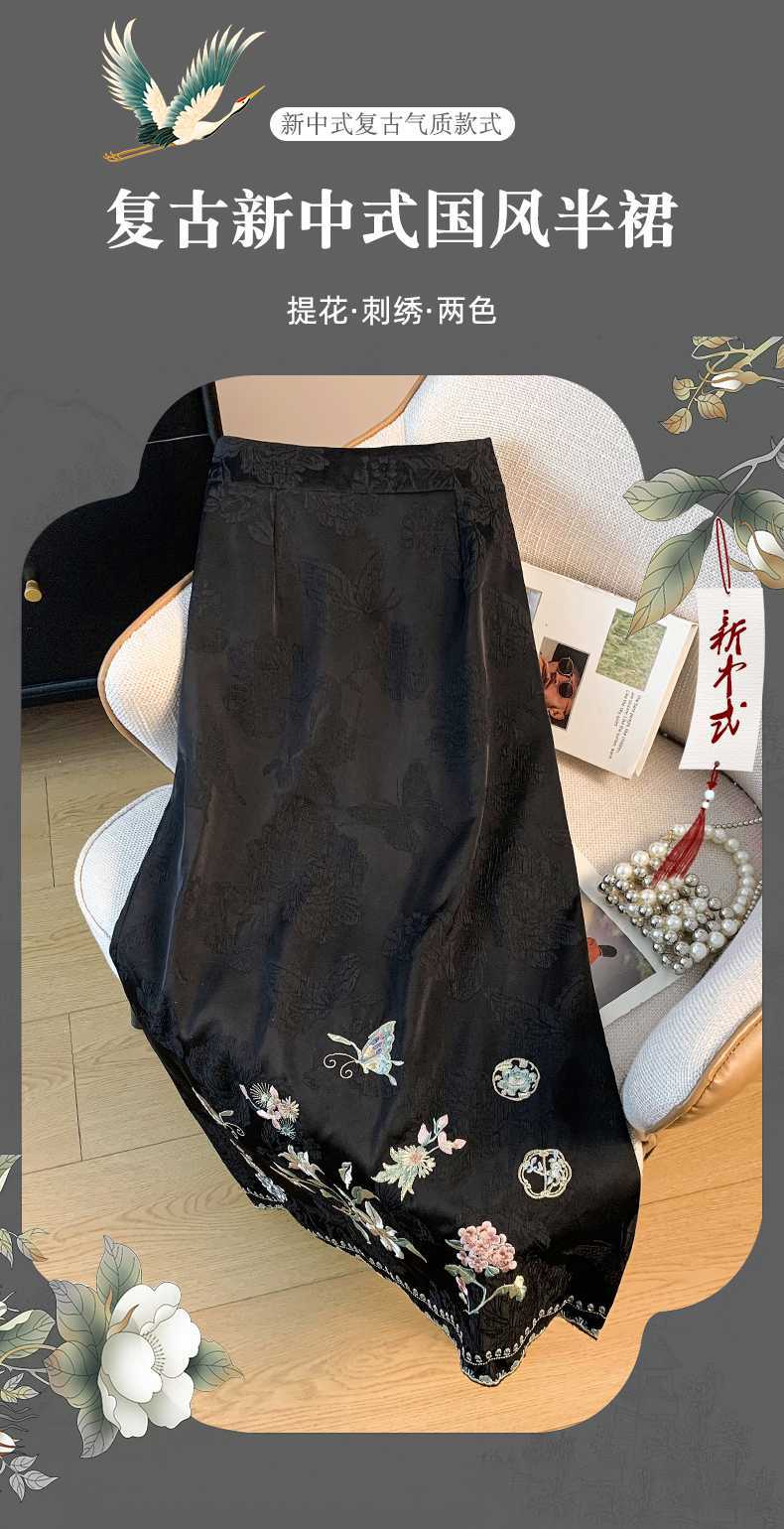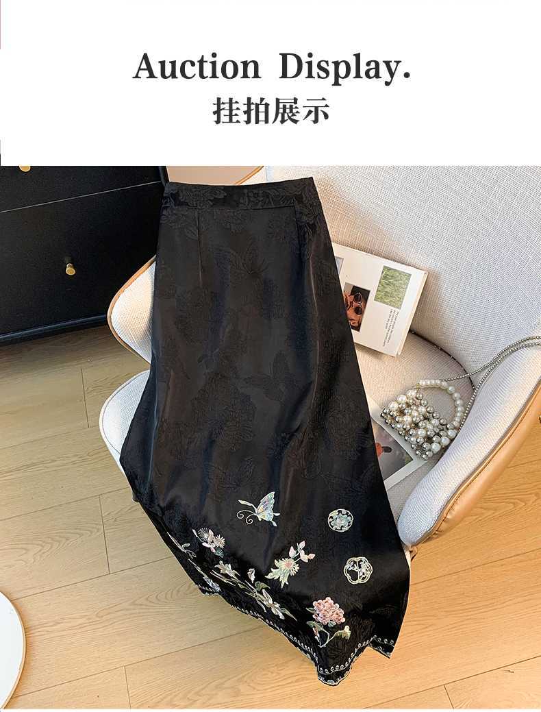 Настоящая фотография новой классической юбки в китайском стиле в этническом стиле с тяжелой жаккардовой вышивкой, удобная облегающая классическая юбка улучшенной династии Хань