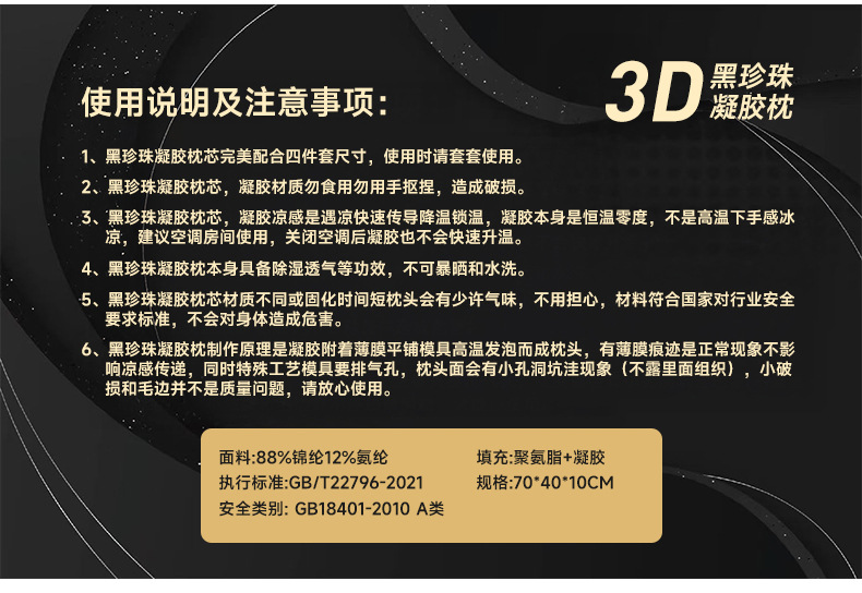 Гелевая подушка Saint Rufus Black Pearl Гелевая подушка из красного агата Подушка для шеи с медленным отскоком Летняя комфортная подушка из черного золота для снятия давления