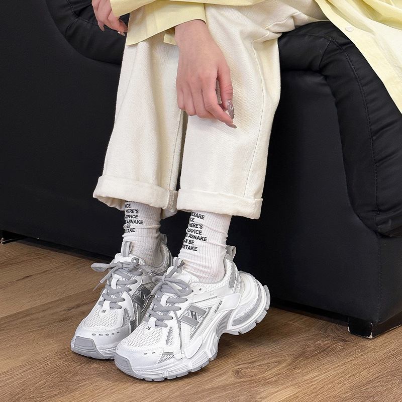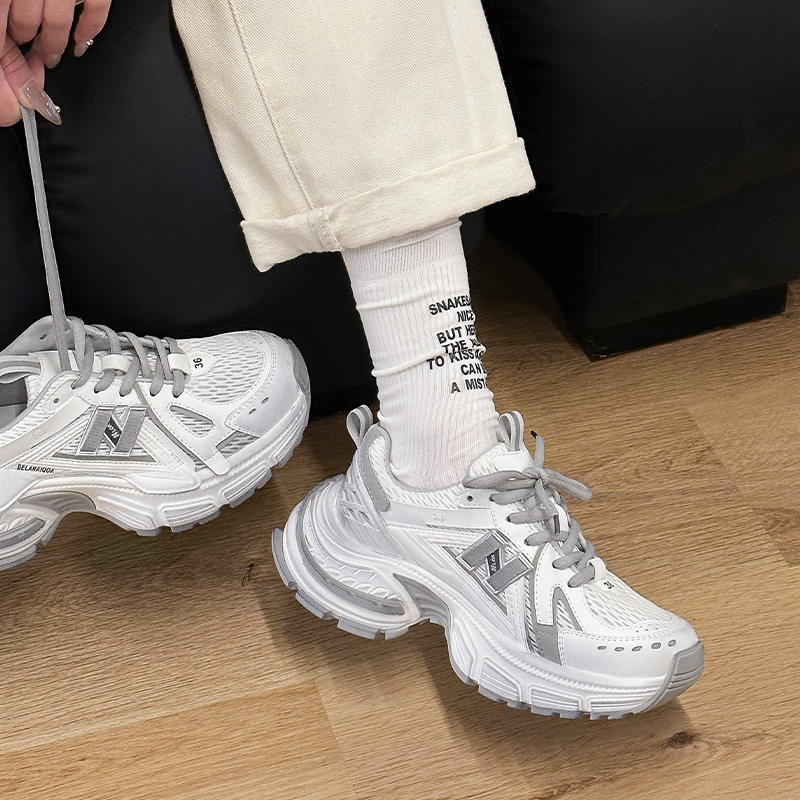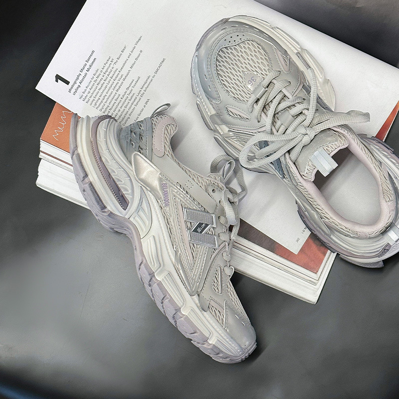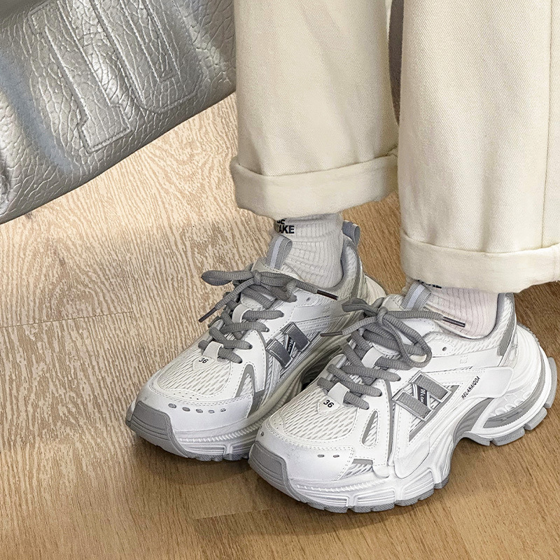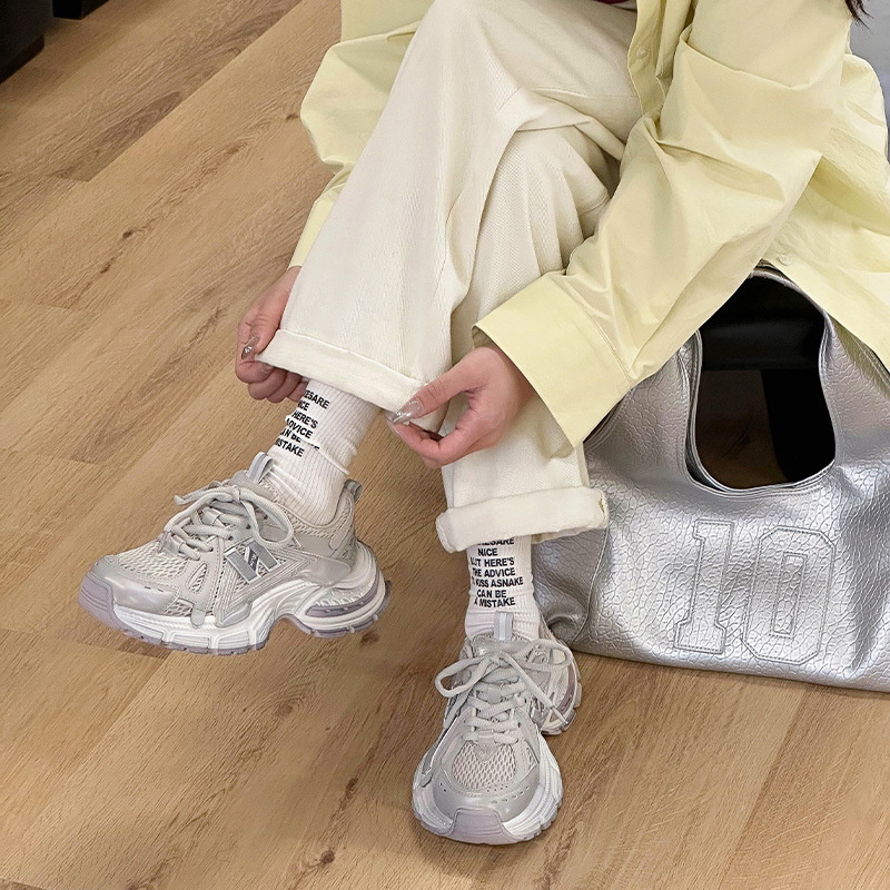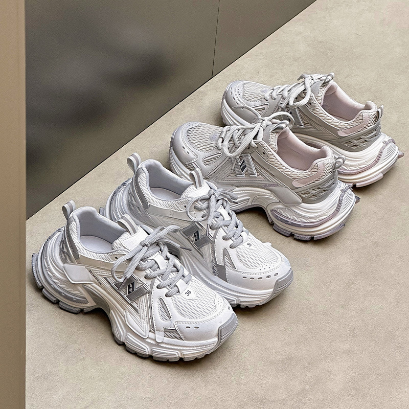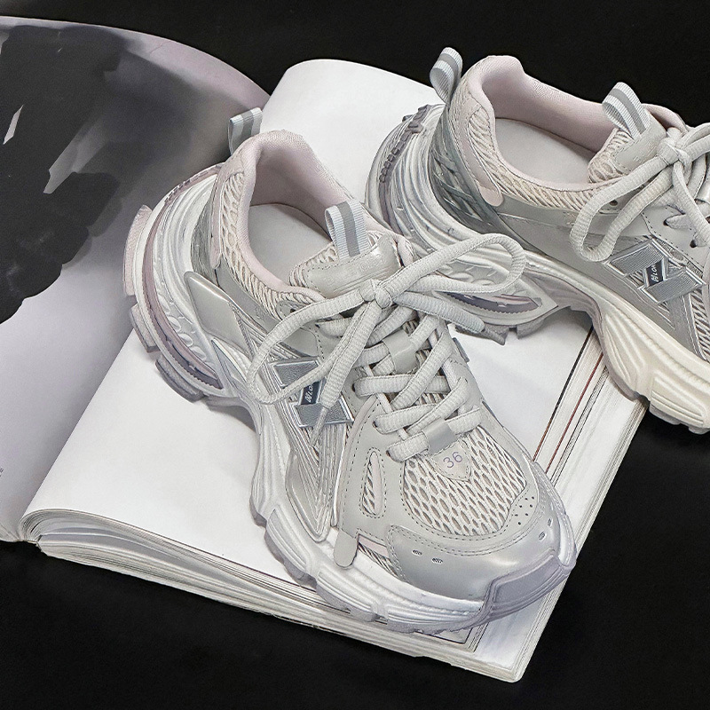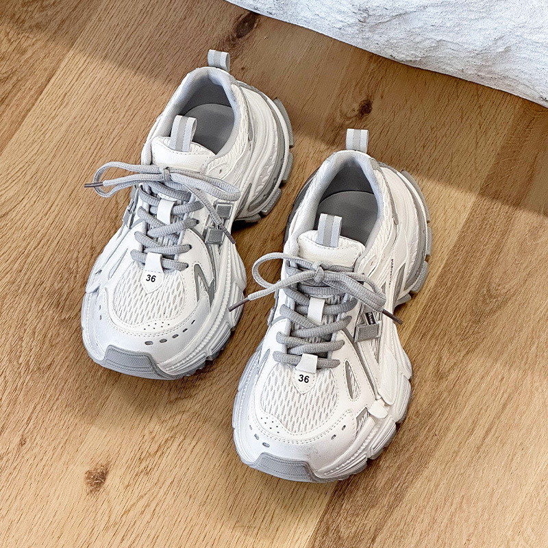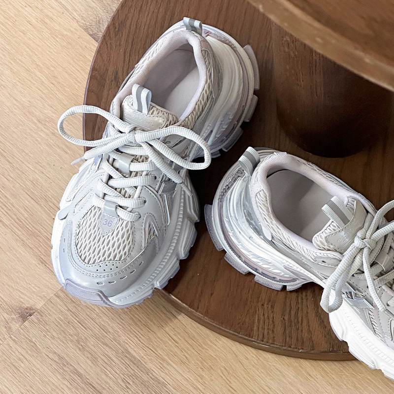 Европейская станция кожаная полировка с толстым подошвой папочка обувь женская 2025 новая сетка дышащая дикие винтажные повседневные кроссовки