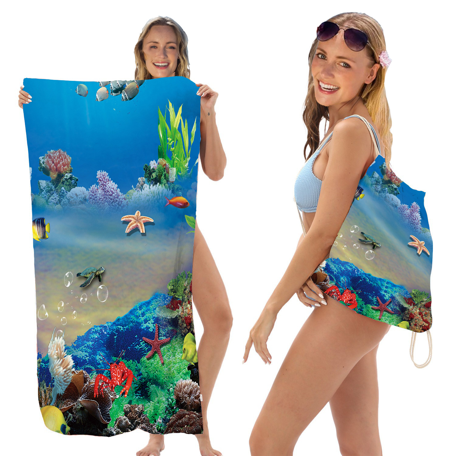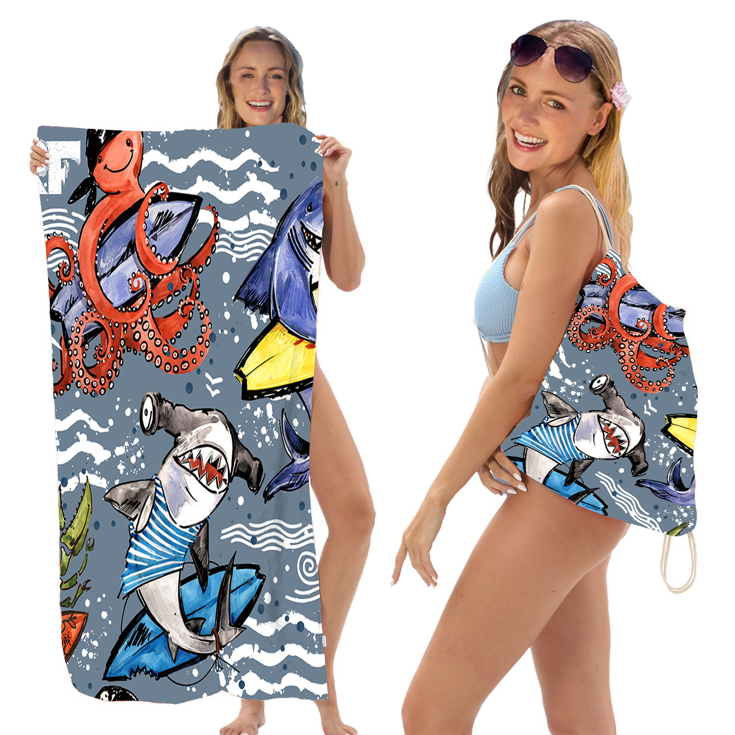 Складное пляжное полотенце с изображением морских животных, универсальное пляжное полотенце, универсальная сумка для хранения