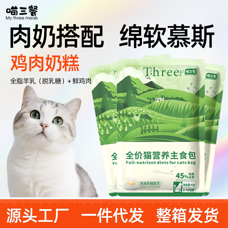 Пакет основного питания для кошек, мягкий консервированный влажный корм для кошек, консервированное питание для домашних кошек, увлажняющие закуски, кошачий корм, три приема пищи для кошек.