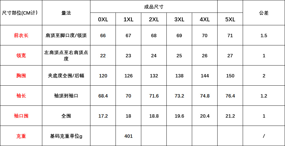 0XL; 1XL; 2XL; 3XL; 4XL; 5XL