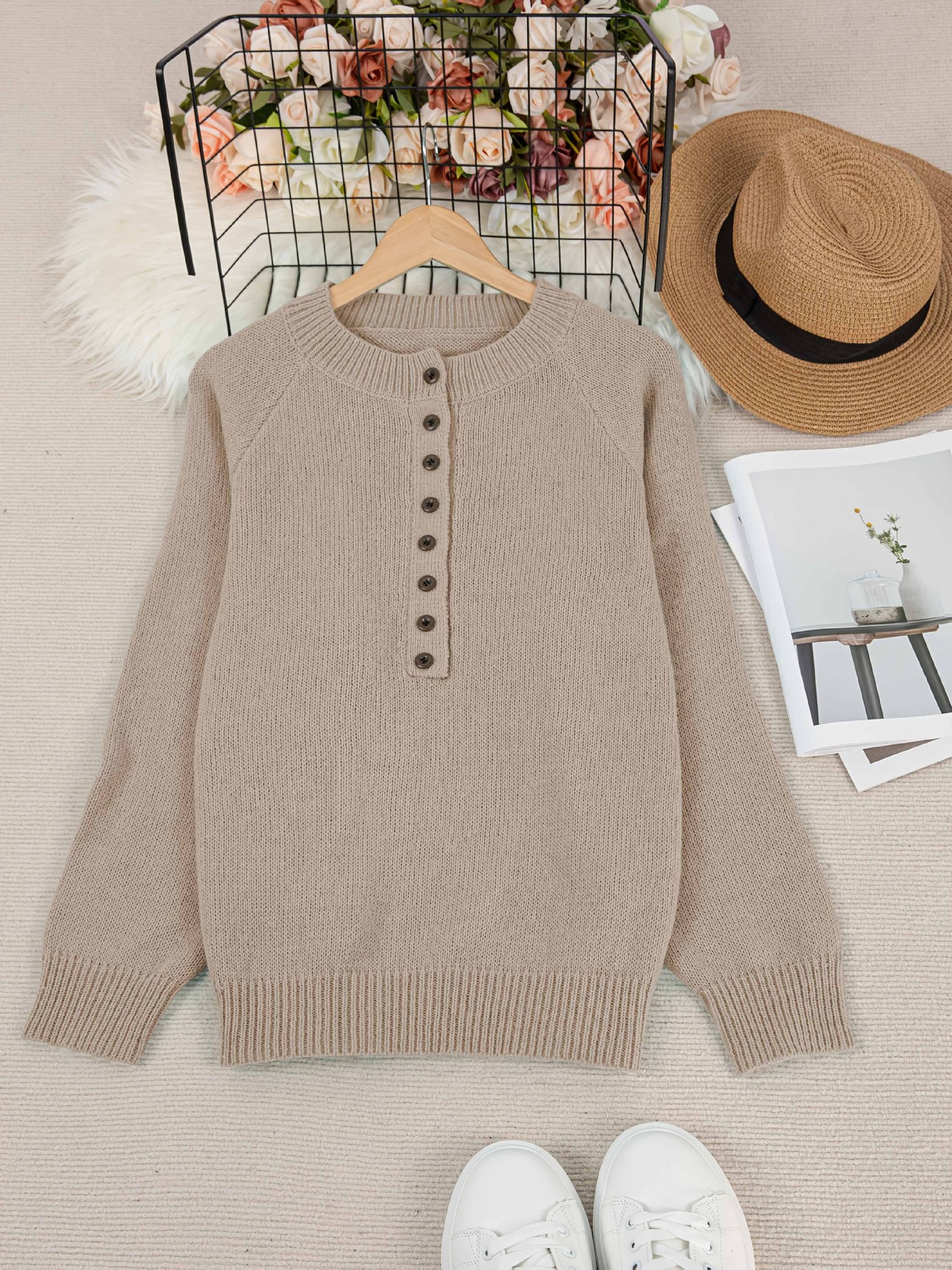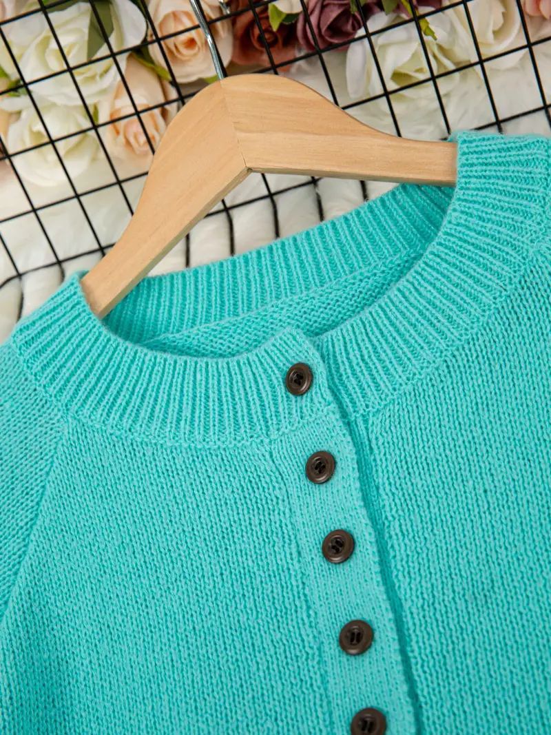 Женский свитер оверсайз из трикотажа с рукавами реглан, однотонный, повседневный, на пуговицах, для трансграничной торговли