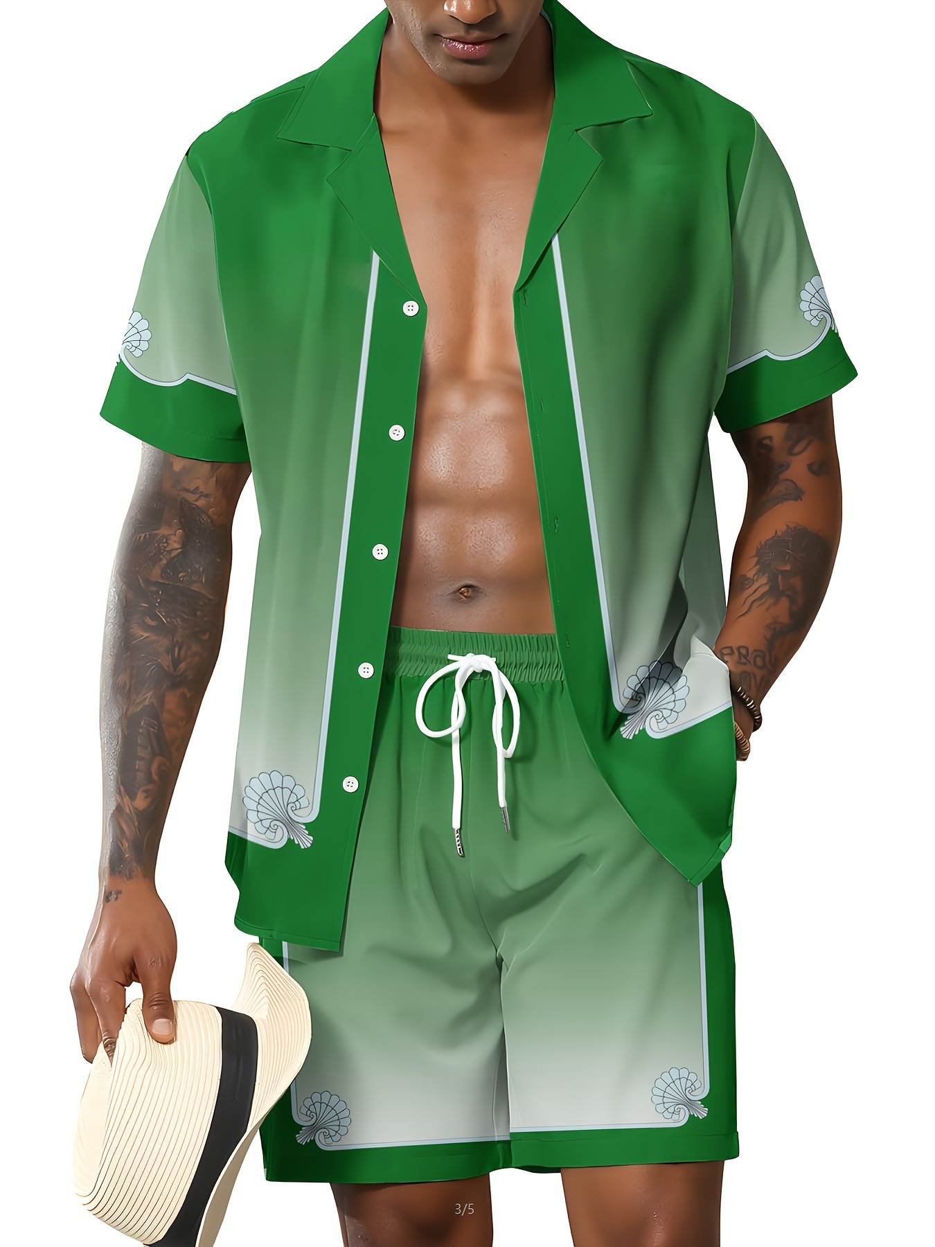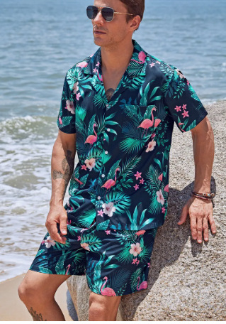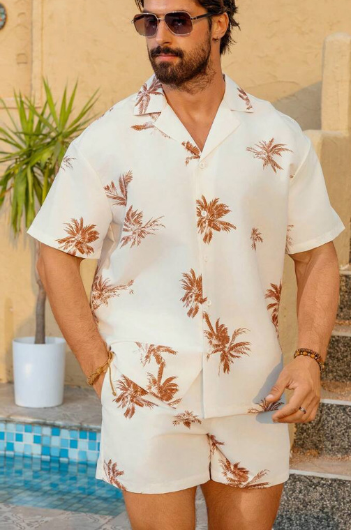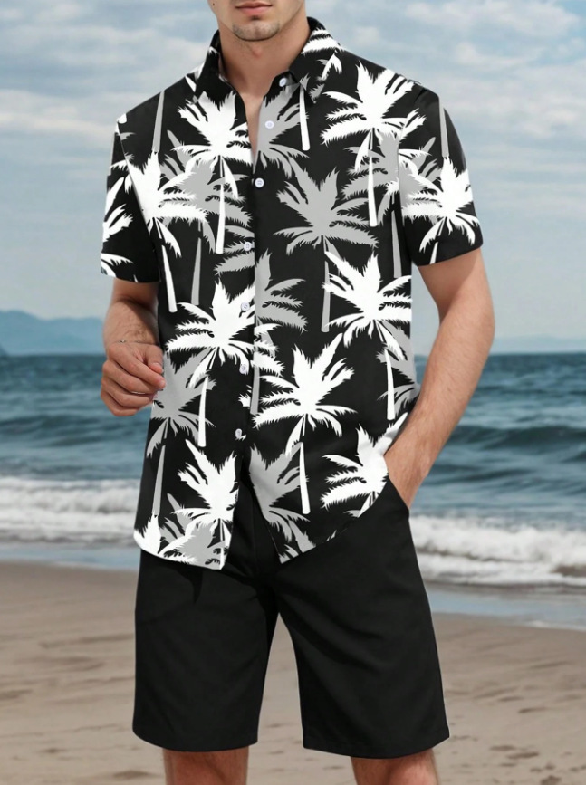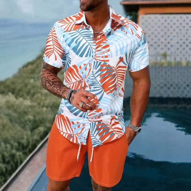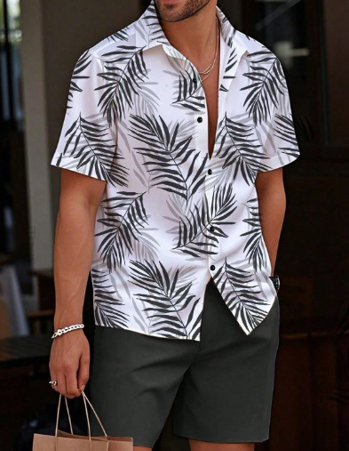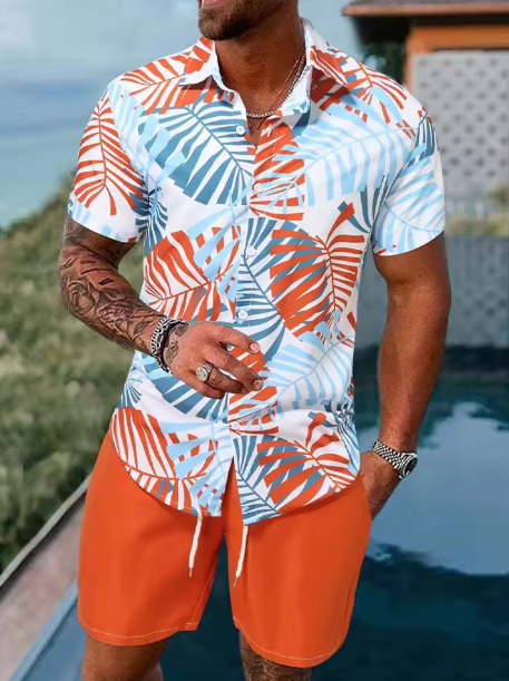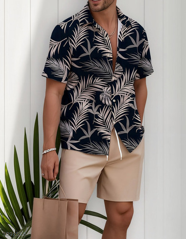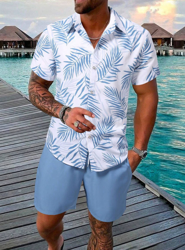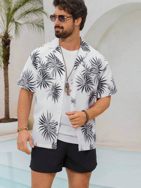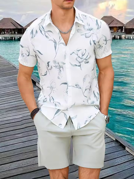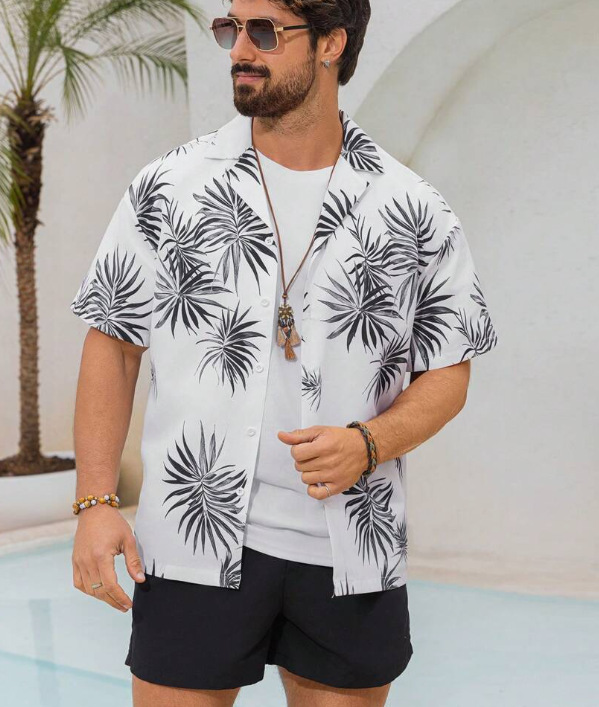 Трансграничные гавайские мужские рубашки с принтом кубинские шорты с короткими рукавами