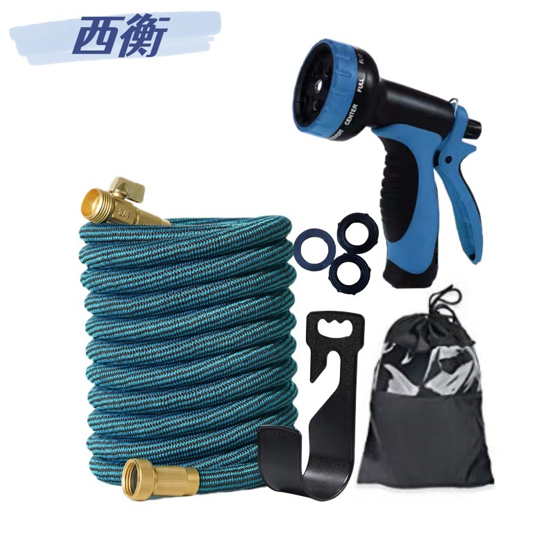 Производитель продаёт 3-х секционный телескопический садовый шланг с высоконапорным водяным пистолетом, набор для мойки автомобилей, черный и синий.