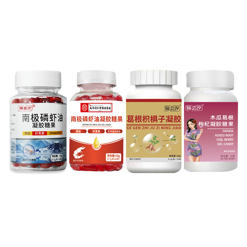 Нанкинское масло криля Тонгрентанг 60 капсул; Масло криля Jinyunxi 60 капсул; Гель Папайи, Пуэрарии и Ягод Волчьей Березы 30 капсул; Гель из семян пуэрарии лобата и мандарина 30 капсул