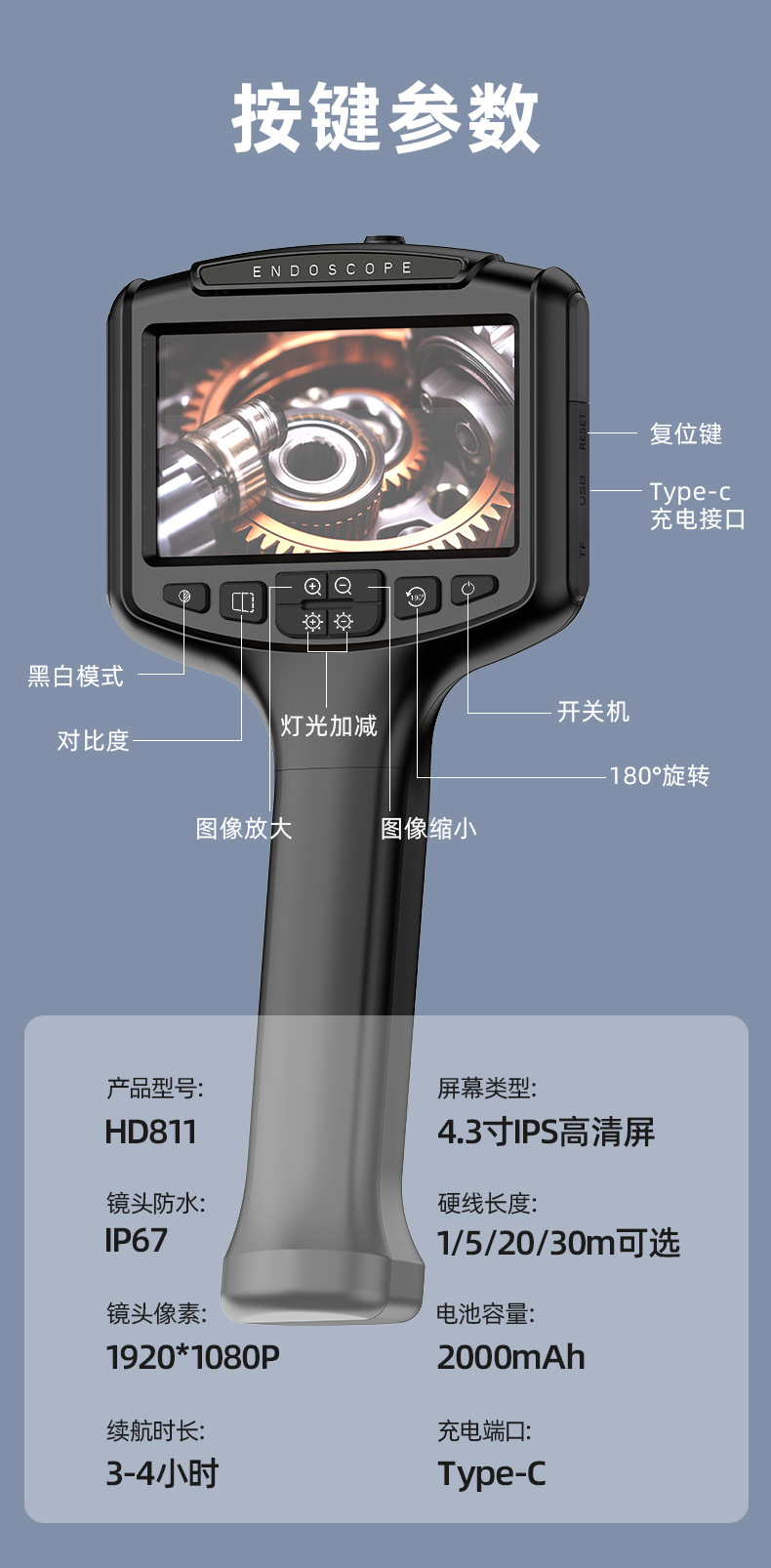 Ручной удобный автомобильный детектор с экраном, камерой для прочистки канализации, водонепроницаемым промышленным эндоскопом с двумя объективами.