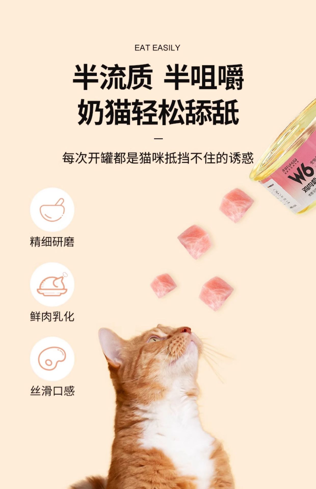 Консервы для кошек Capture W6, питательные основные продукты питания, банка влажных кормов, полоски для котят, куриный молочный торт, пробная версия, 24 банки, полная коробка