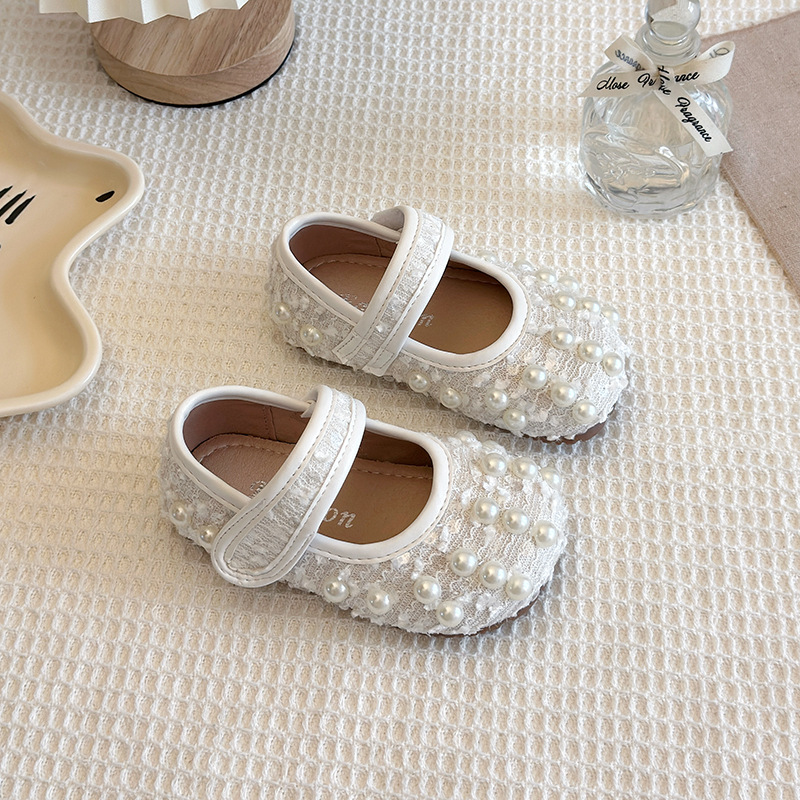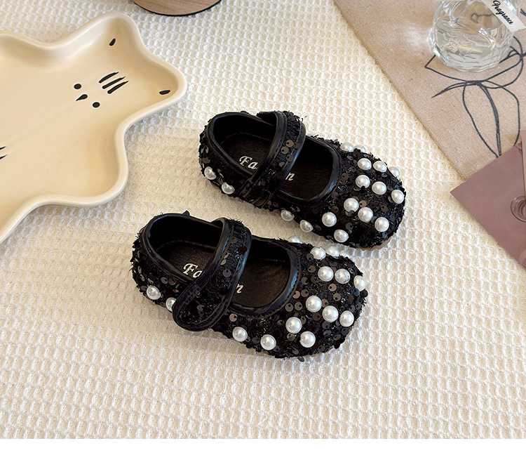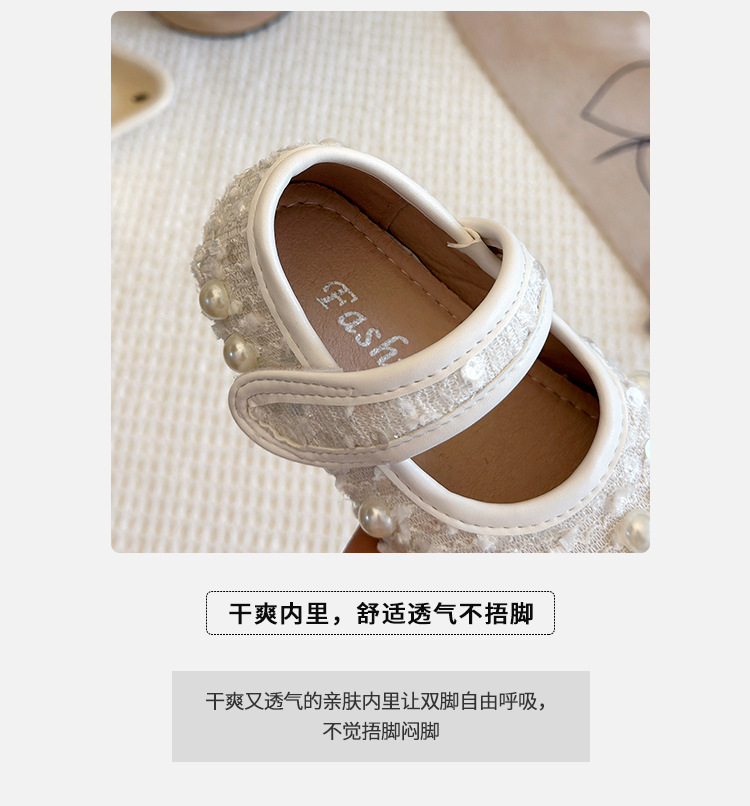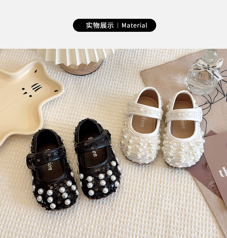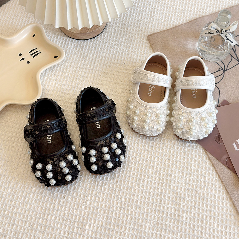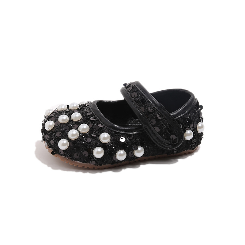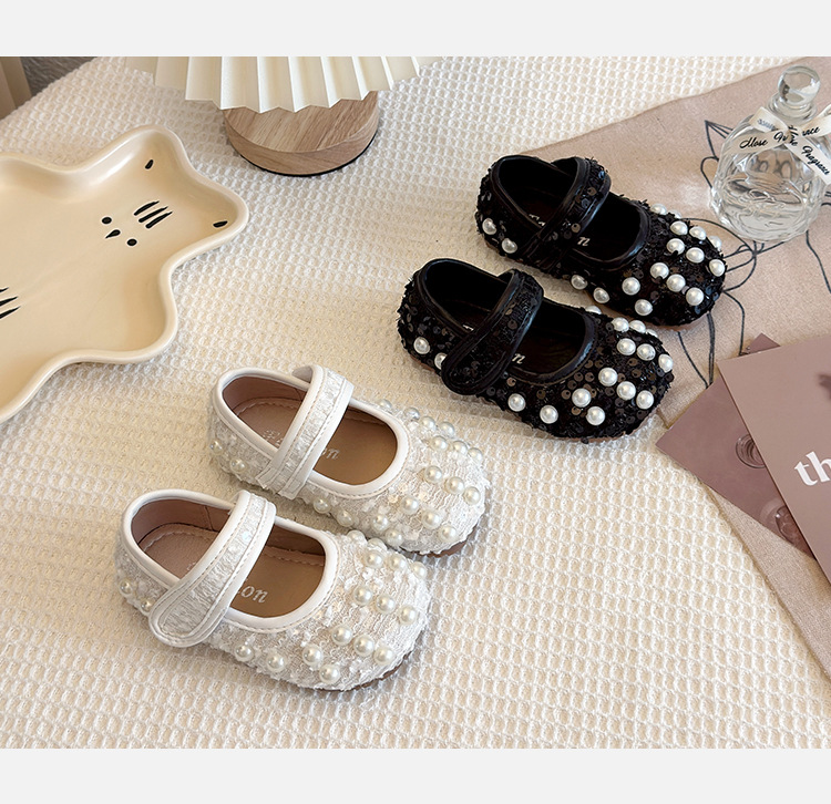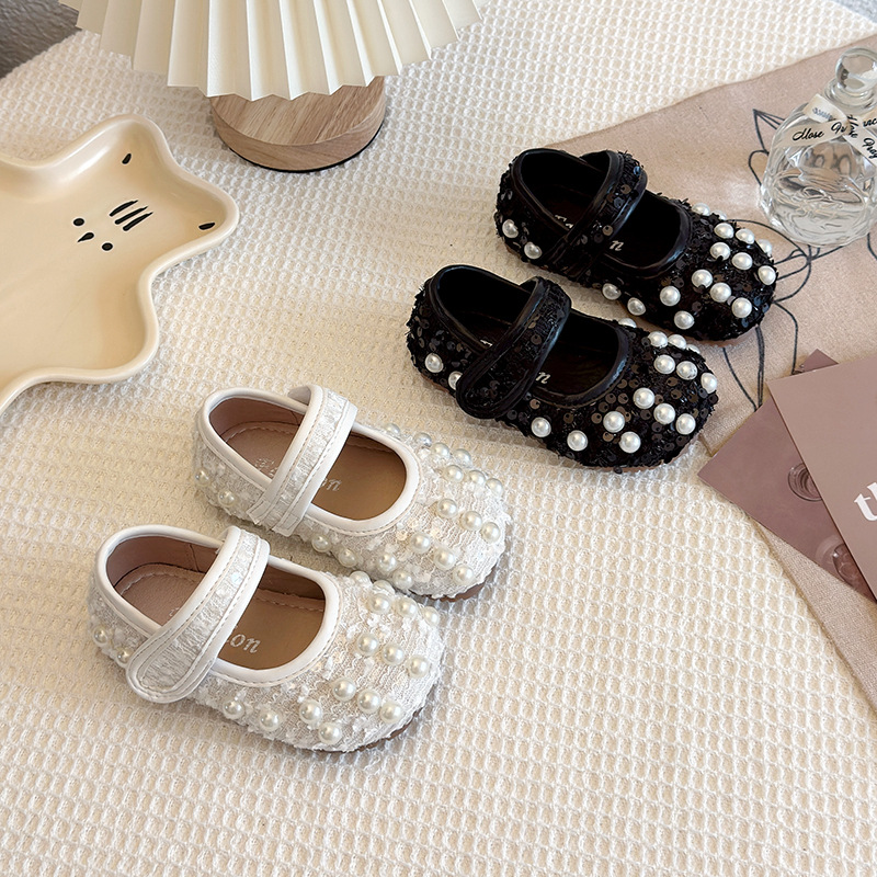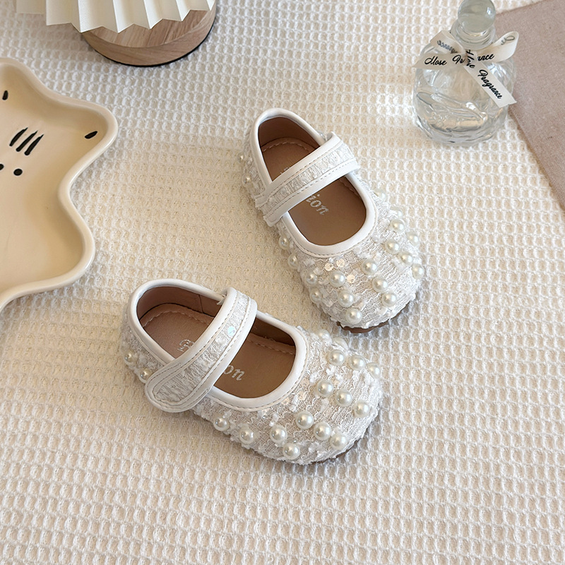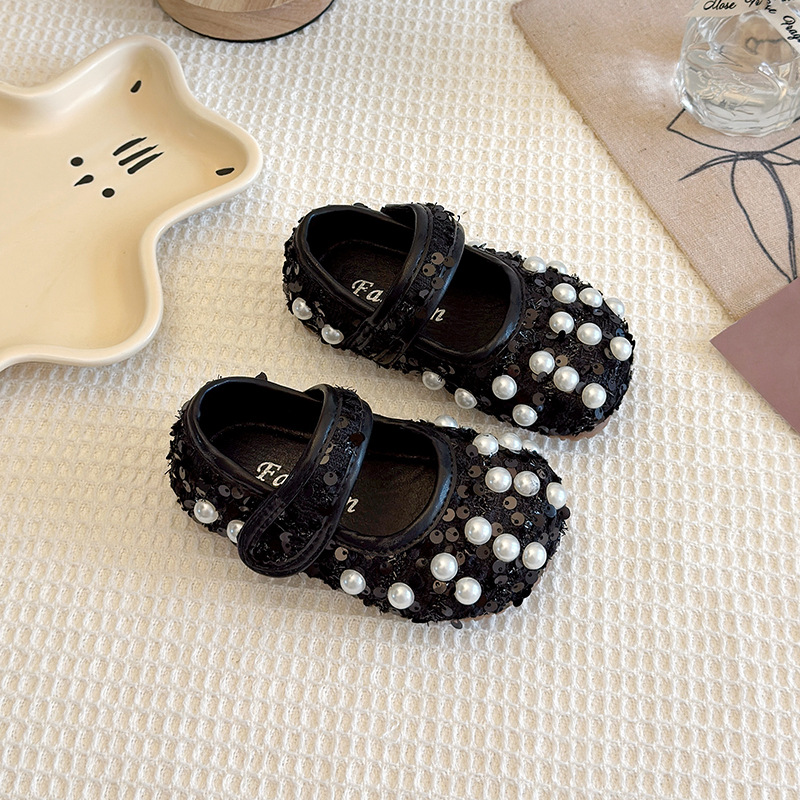 Детские модные кожаные туфли в стиле Chanel, весна-осень 2025, новые, с мелким бисером, принцесса, лоферы.