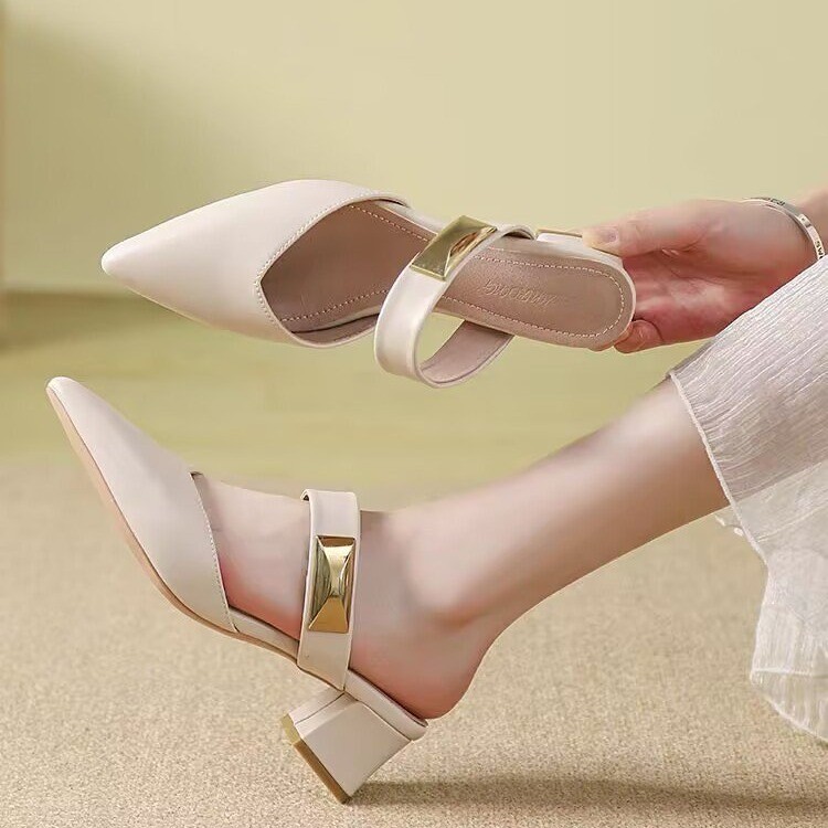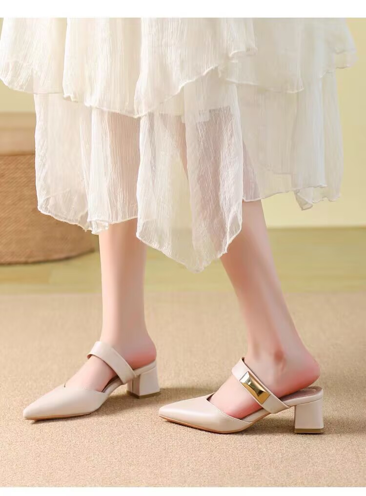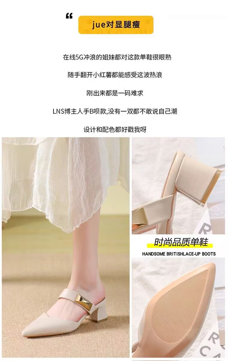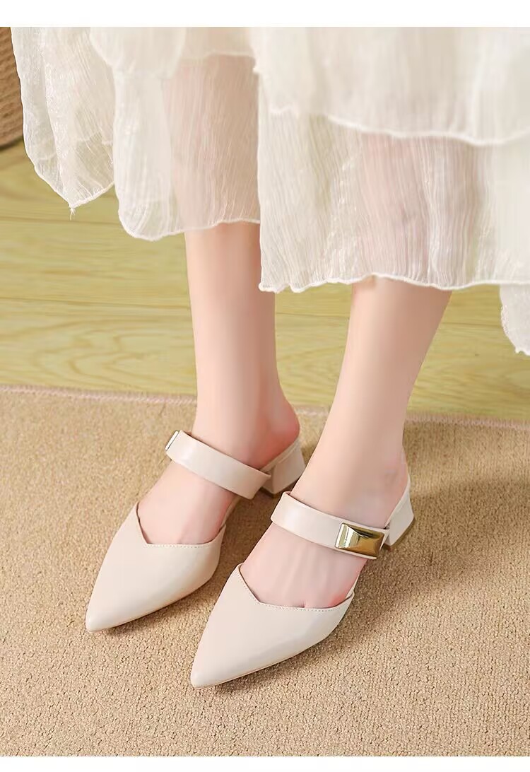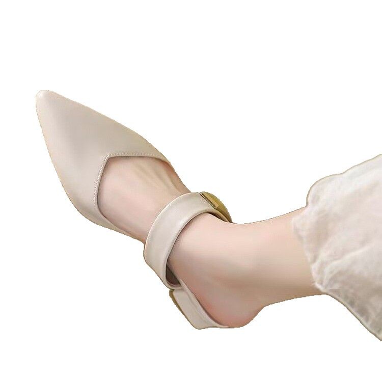 Маленькие кожаные туфли с толстыми каблуками с заостренными каблуками элегантные шлепанцы с мягким подошвом ботинки Lefu 2025 летом новые одиночные туфли