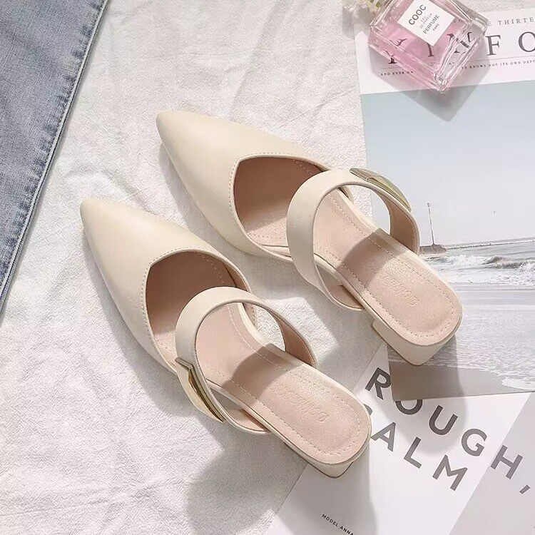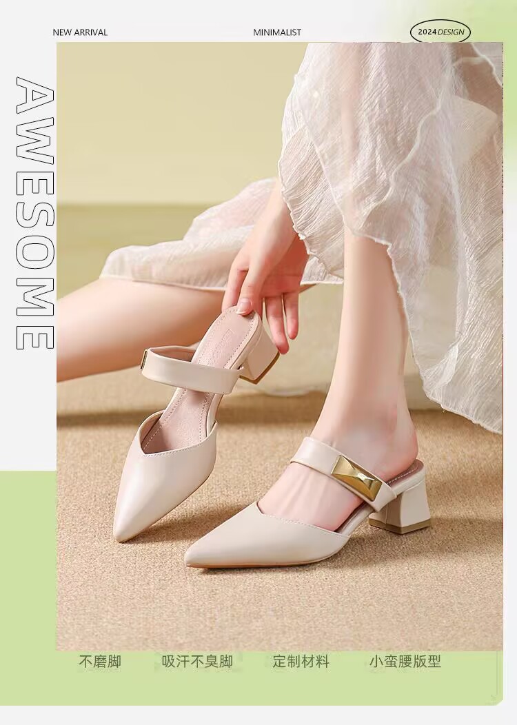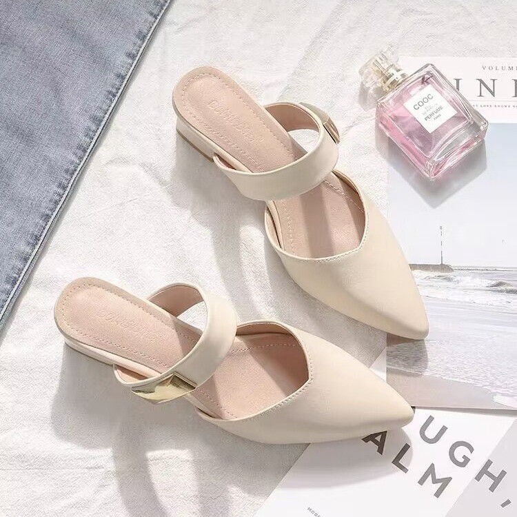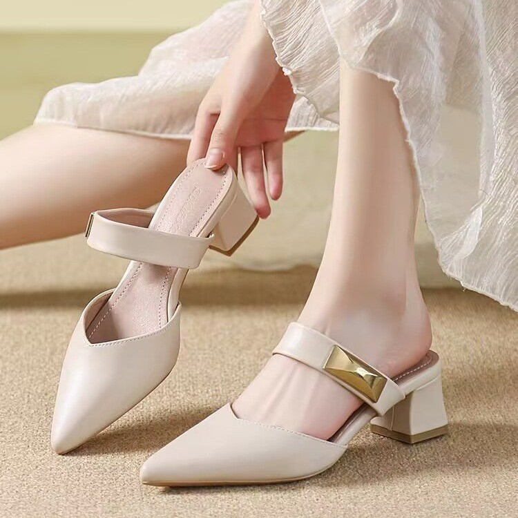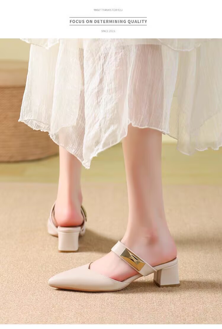 Маленькие кожаные туфли с толстыми каблуками с заостренными каблуками элегантные шлепанцы с мягким подошвом ботинки Lefu 2025 летом новые одиночные туфли
