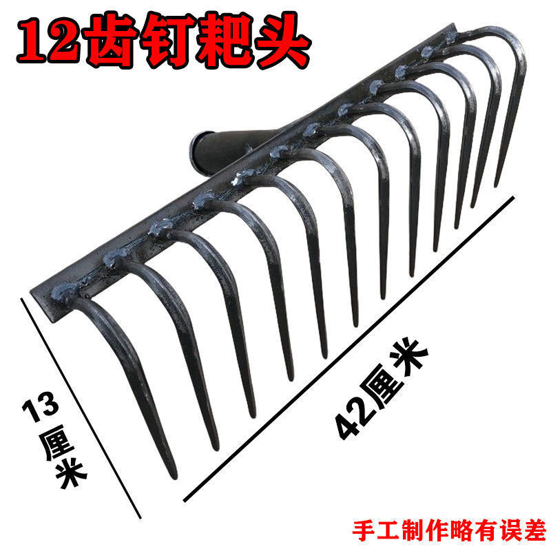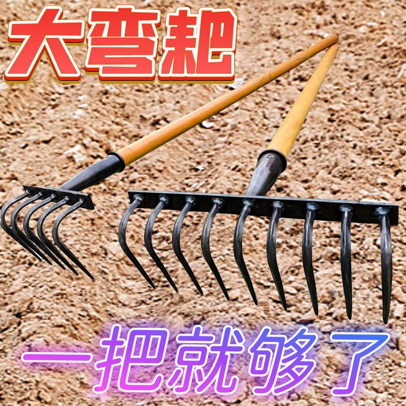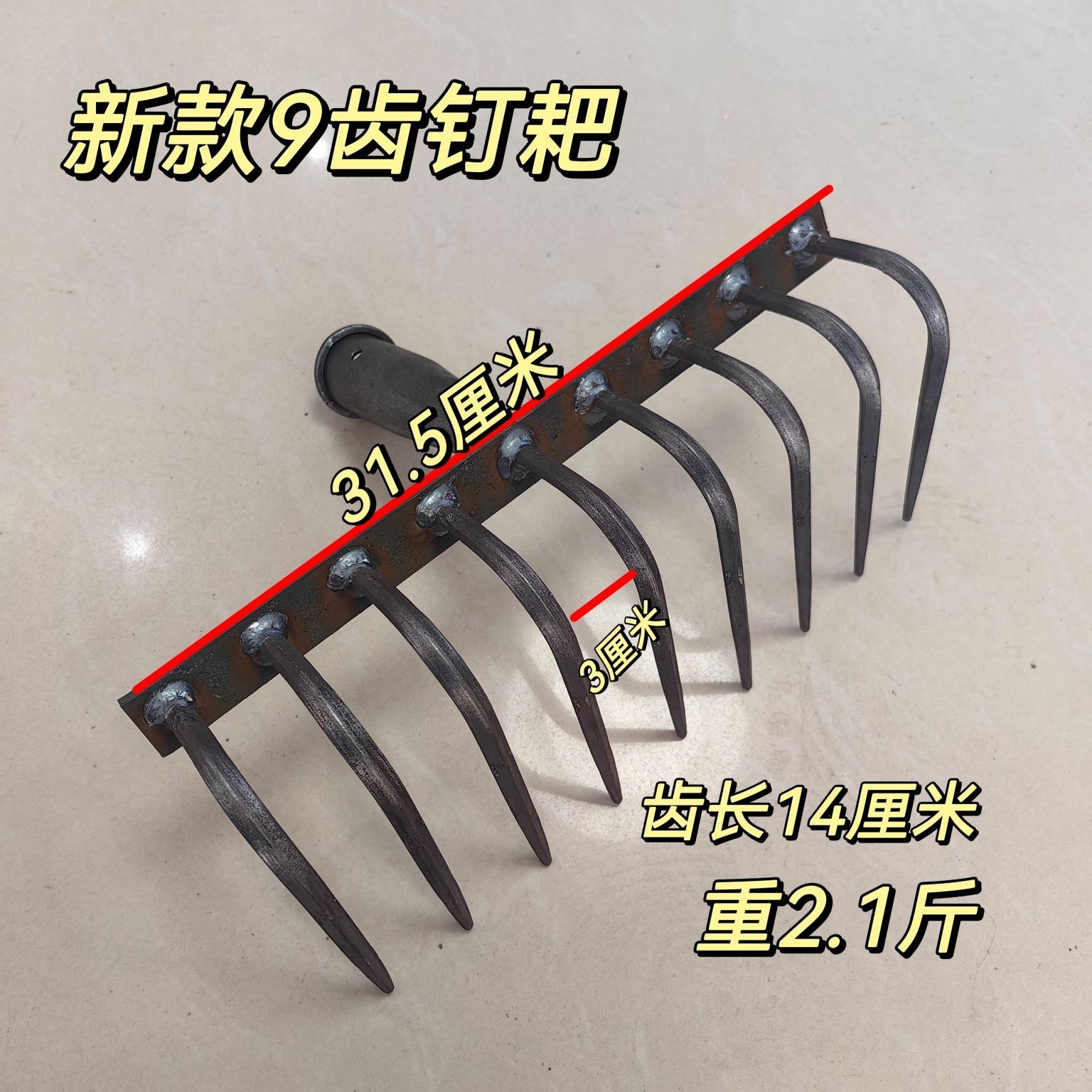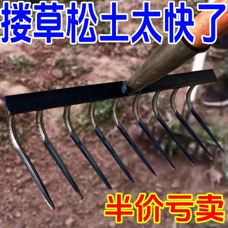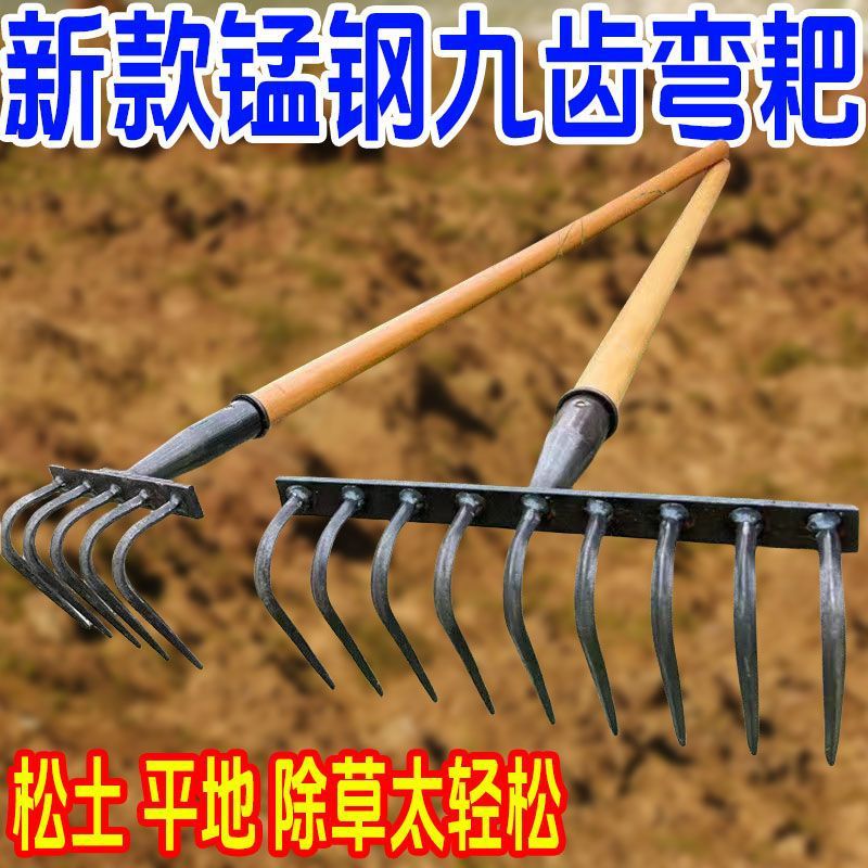 Сельскохозяйственные железные грабли с девятью зубьями для выравнивания, рыхления почвы, многофункциональные грабли, свиньи с восемью зубьями для граблей для сбора травы и переворачивания садовой почвы.