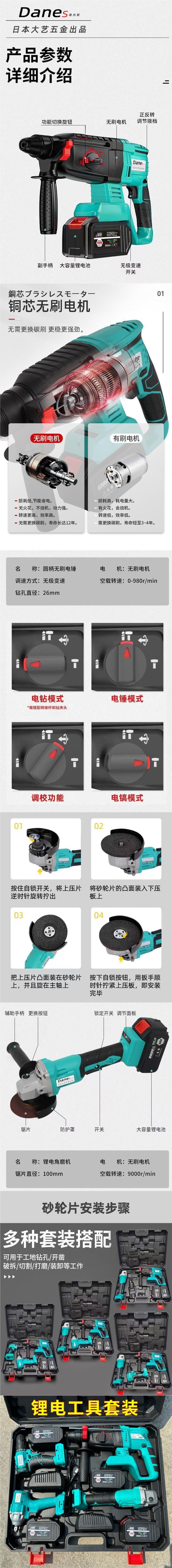 Японский Dayi литиевый бесщеточный зарядный молоток ударной дрели угловая шлифовальная машина электрический дрель гаечный ключ универсальный набор из 4 частей