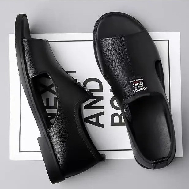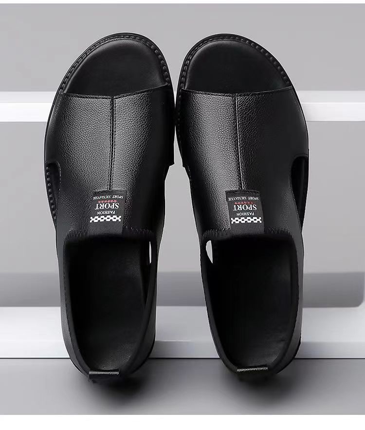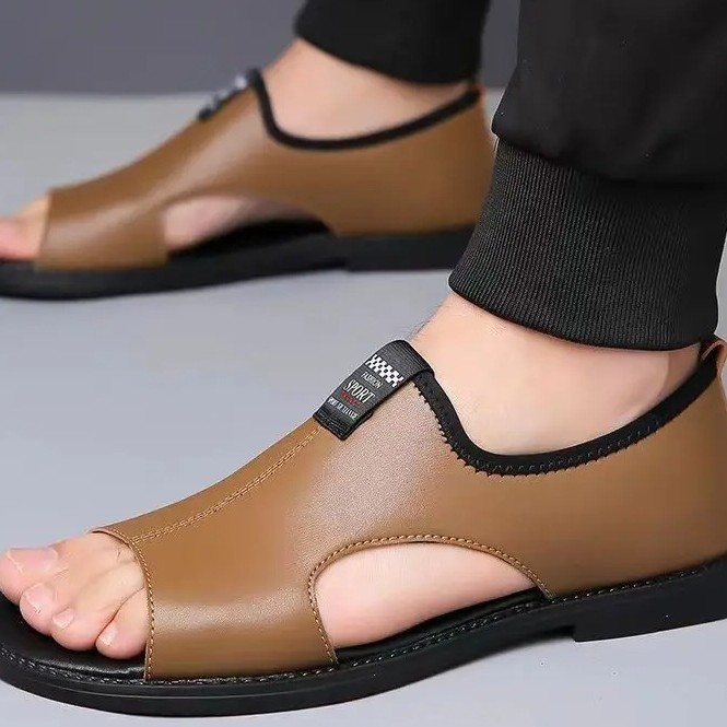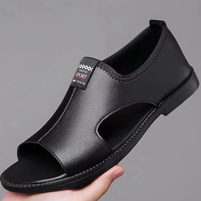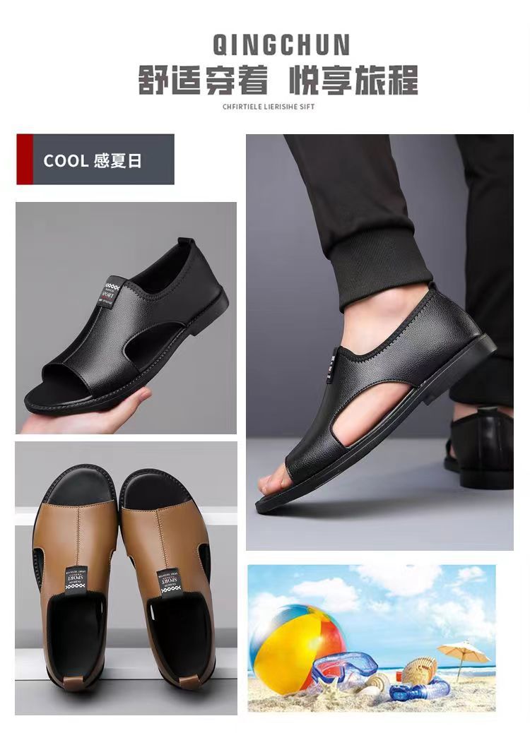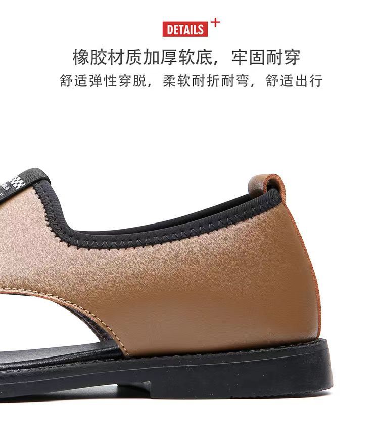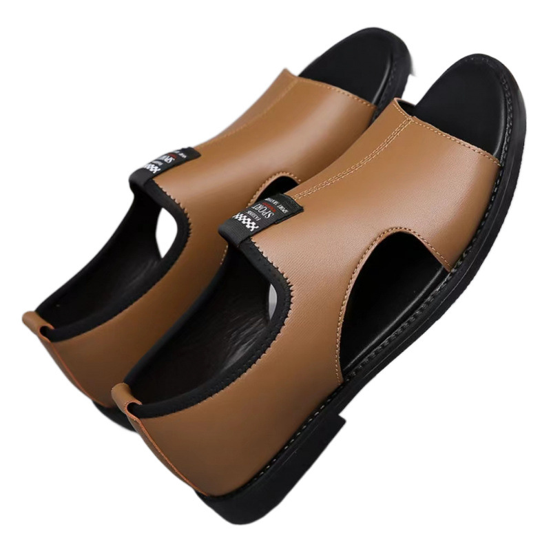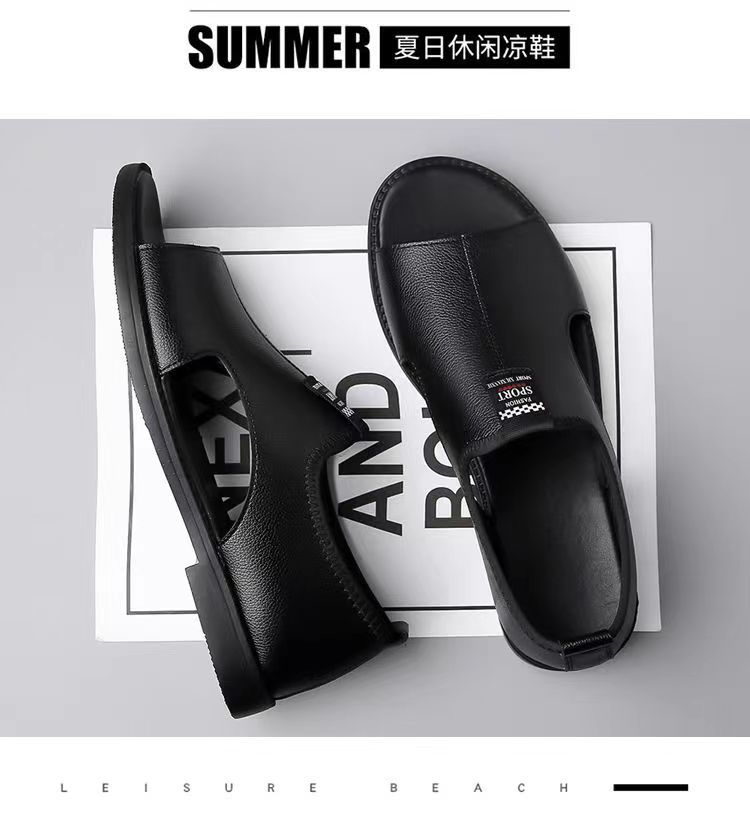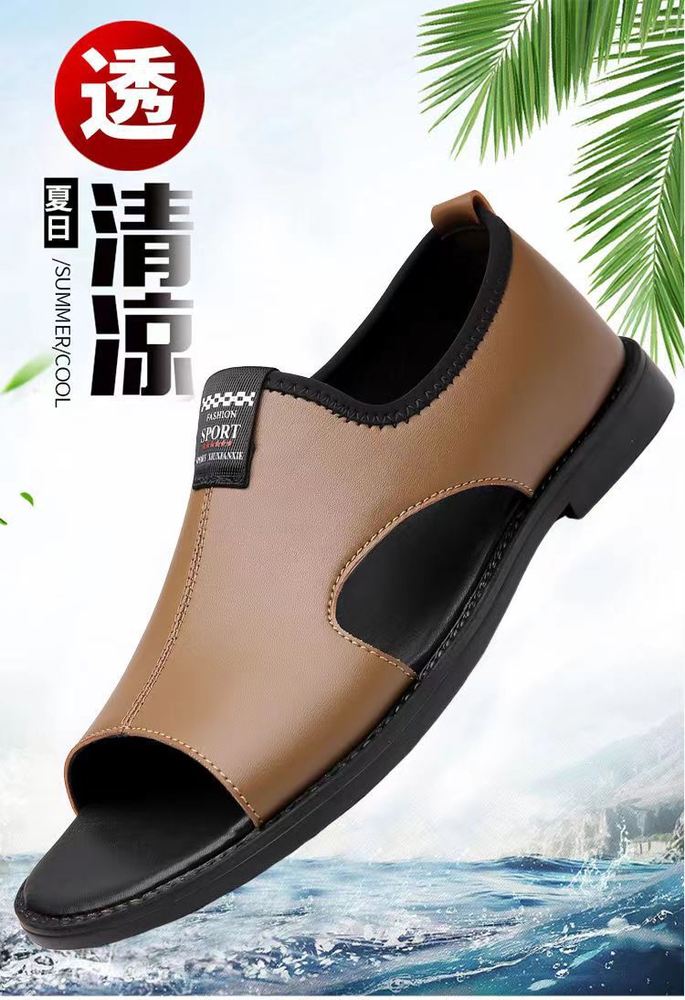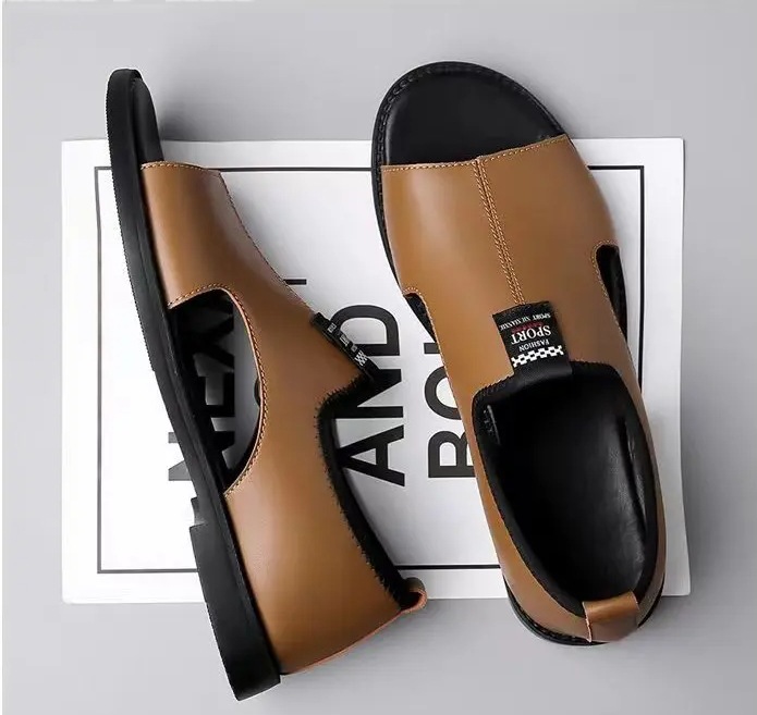 Мужские сандалии 2025 новые дышащие пляжные туфли полые модные нескользкие носить повседневные кожаные сандалии большого размера мужчины