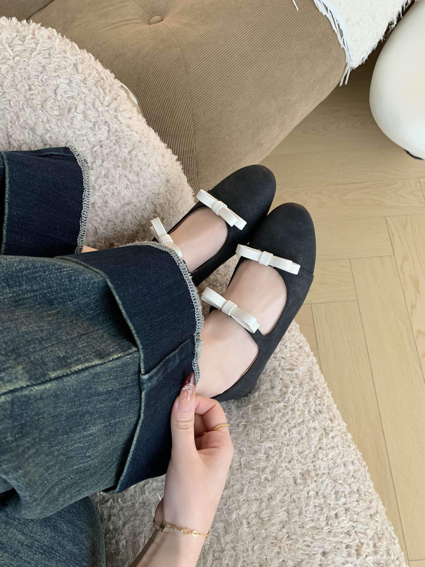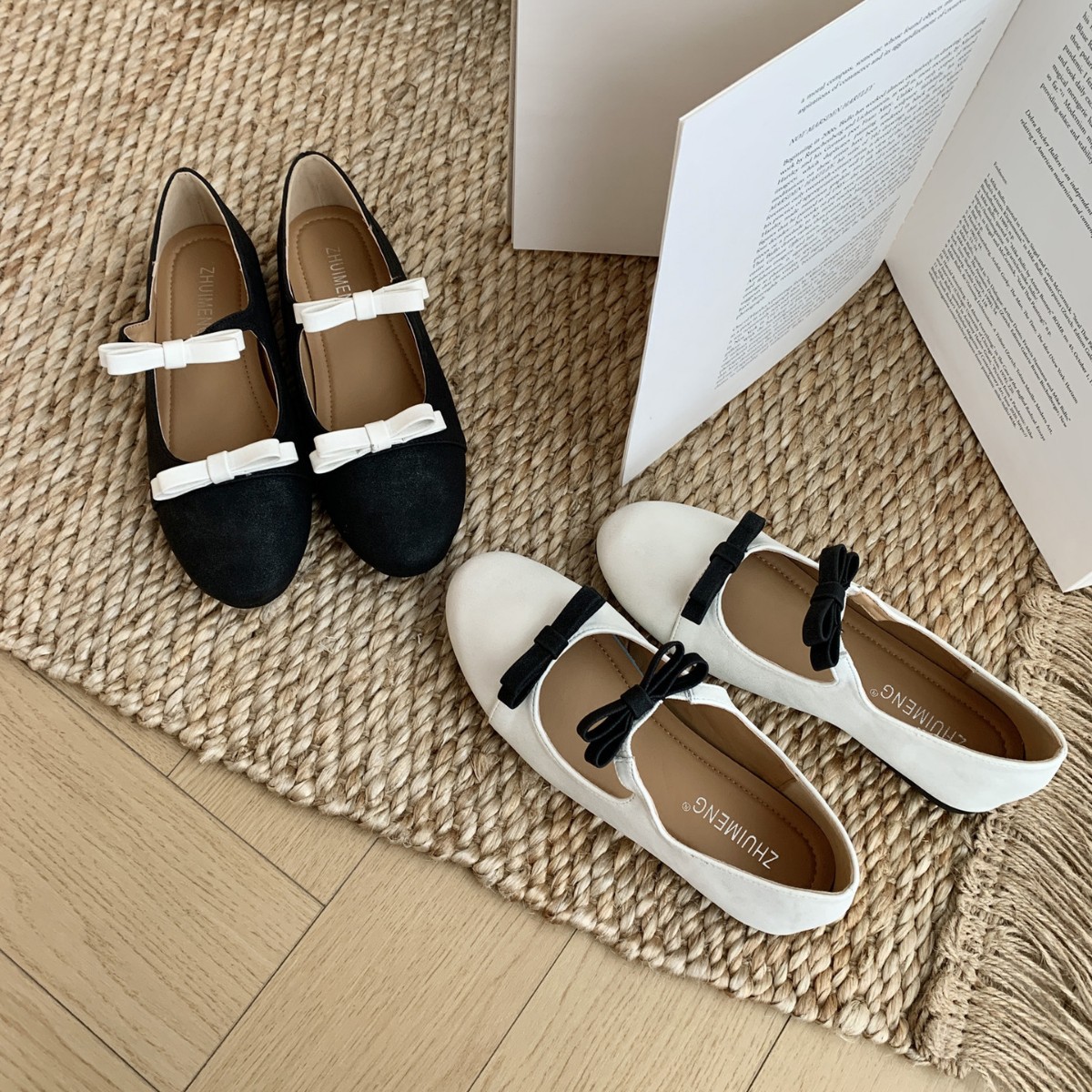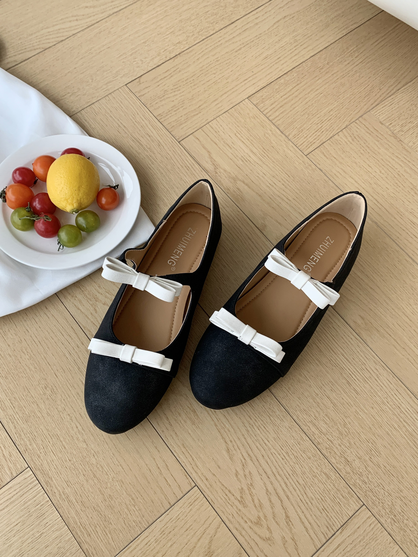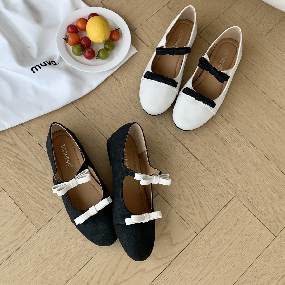 Туфли Мэри Джейн на плоской подошве с круглым носком и бантом, нежные туфли в сказочном стиле, черные туфли на одинарной подошве, новые весенние женские туфли
