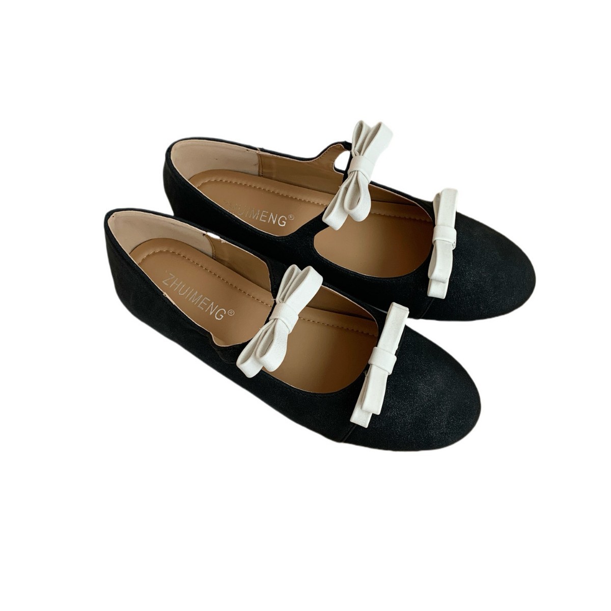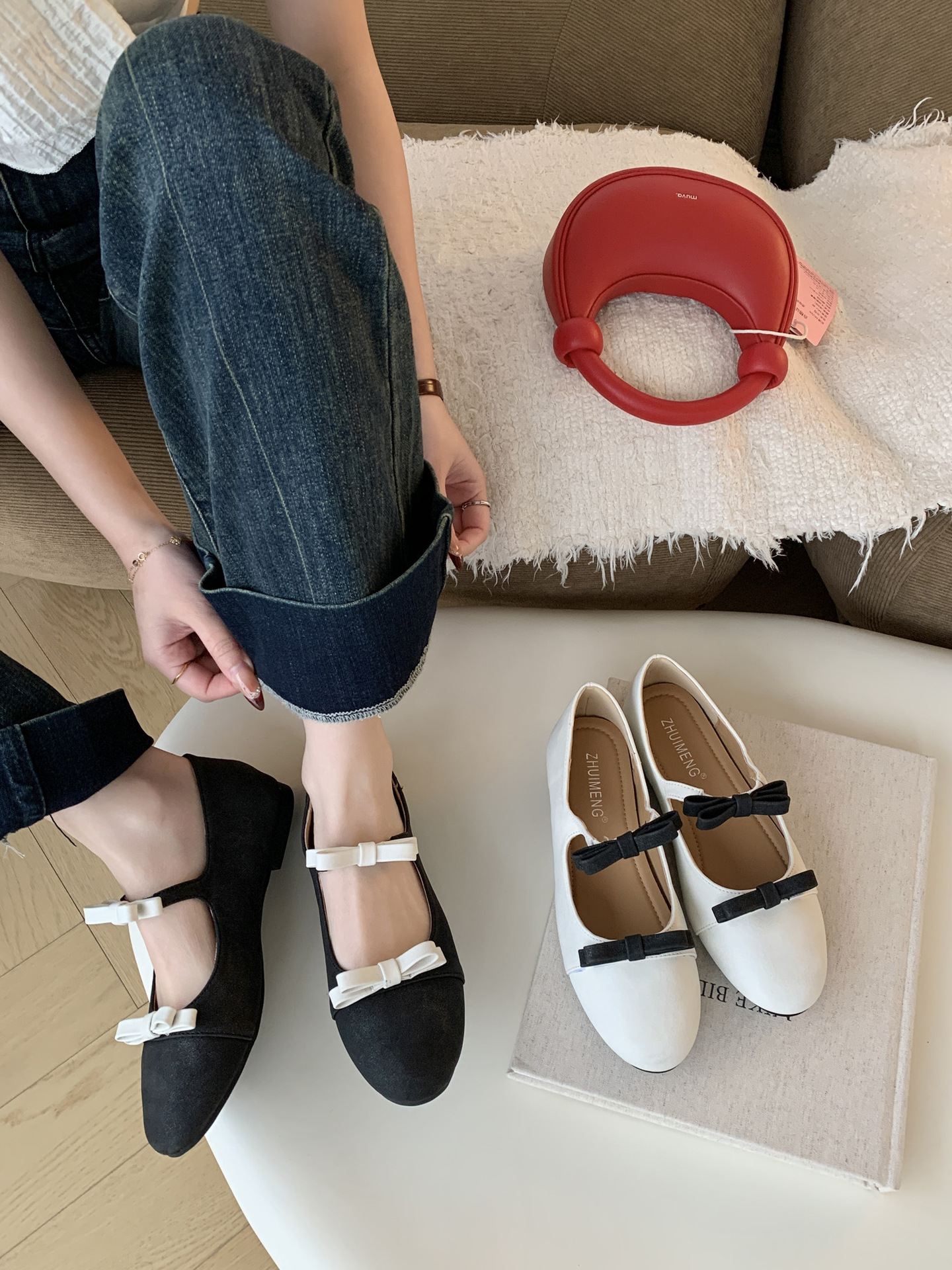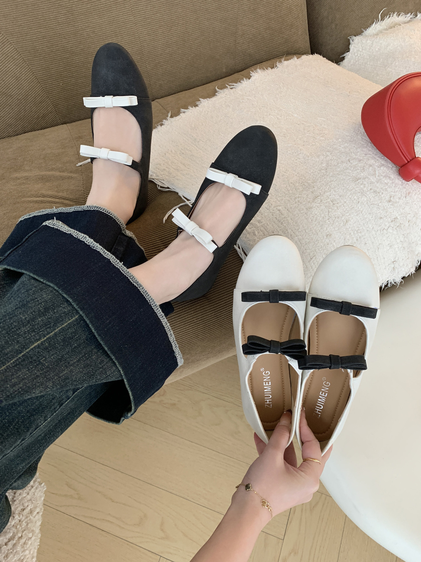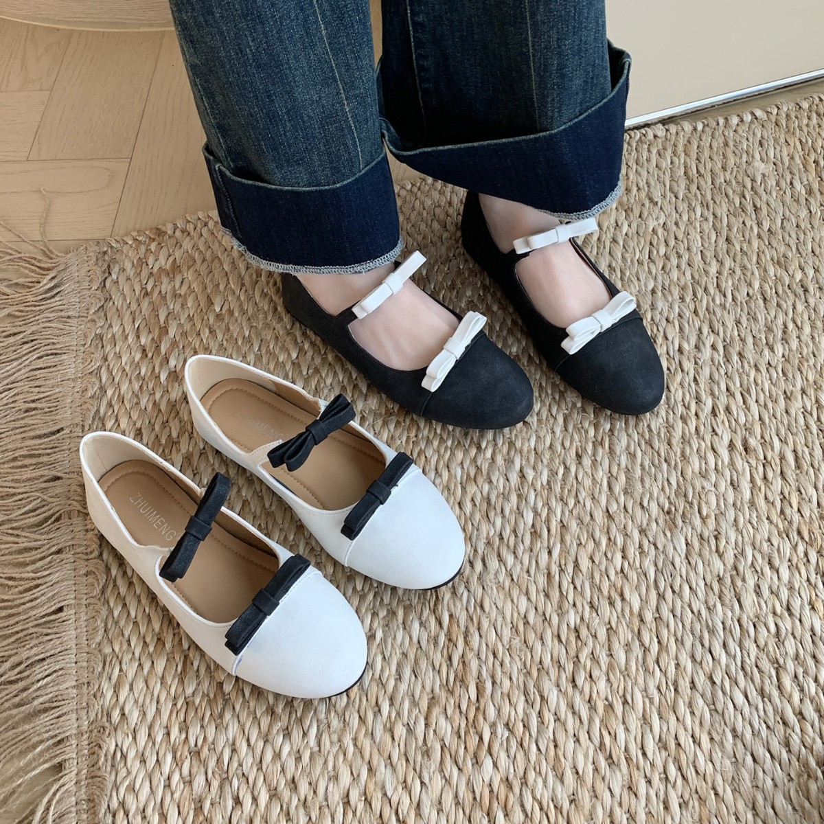 Туфли Мэри Джейн на плоской подошве с круглым носком и бантом, нежные туфли в сказочном стиле, черные туфли на одинарной подошве, новые весенние женские туфли