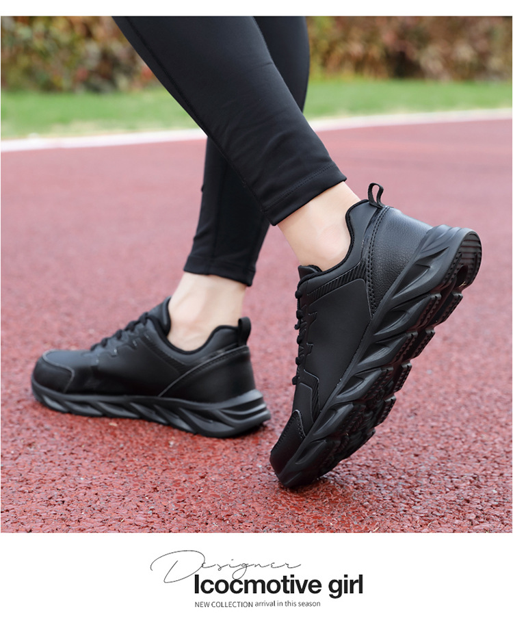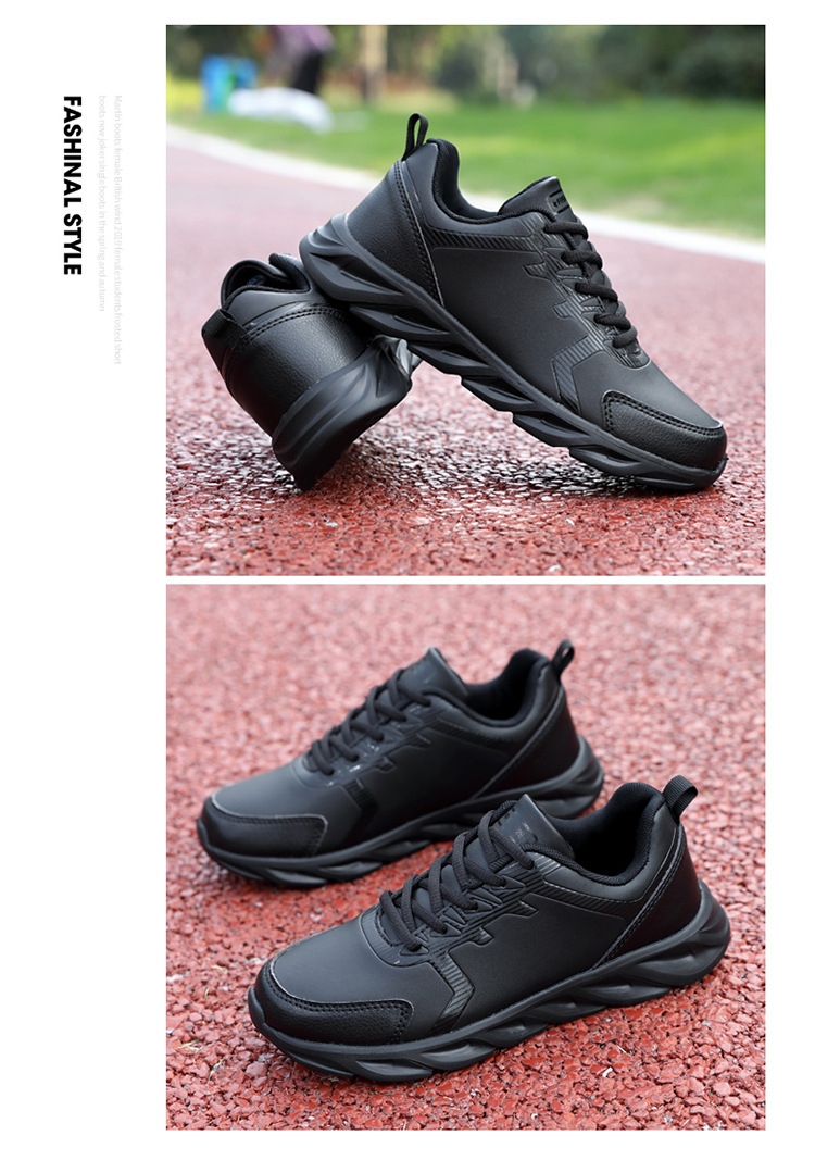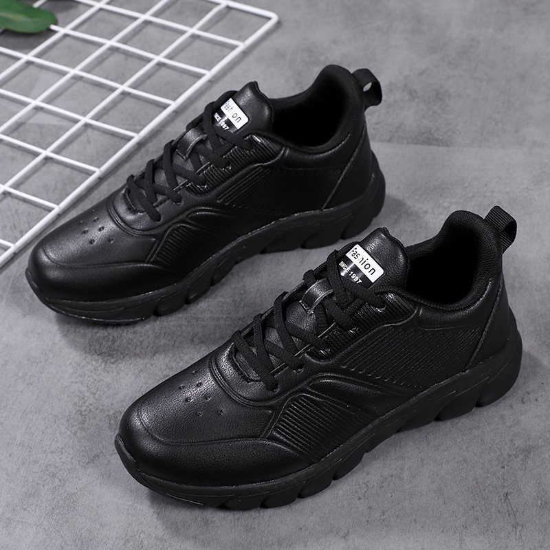 Кожаные кроссовки женские осенние и зимние водонепроницаемые нескользящие повседневные женские туфли все черные бархатные ватные туфли легкая обувь на мягкой подошве