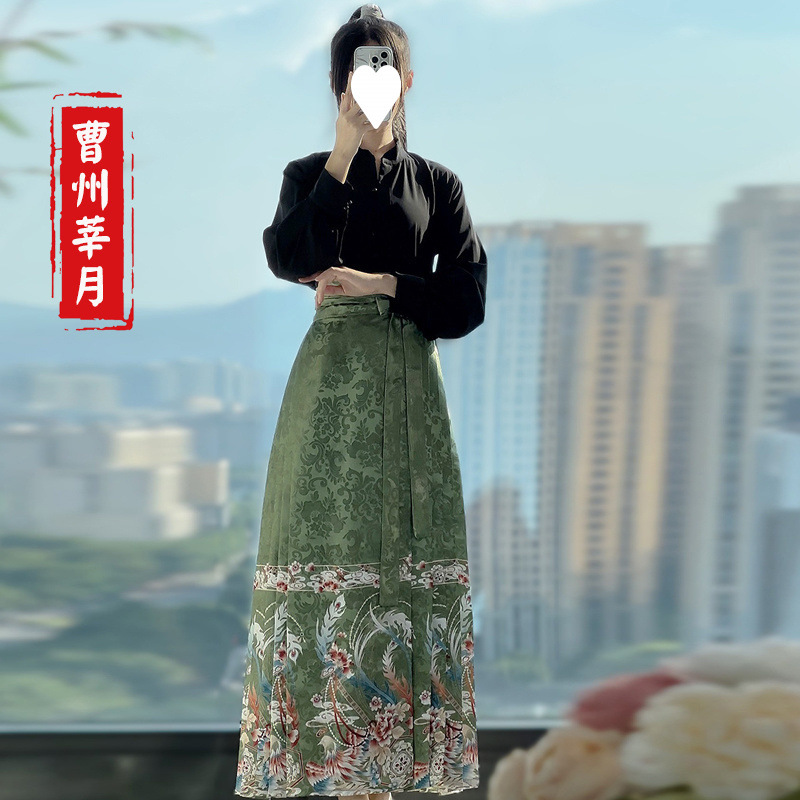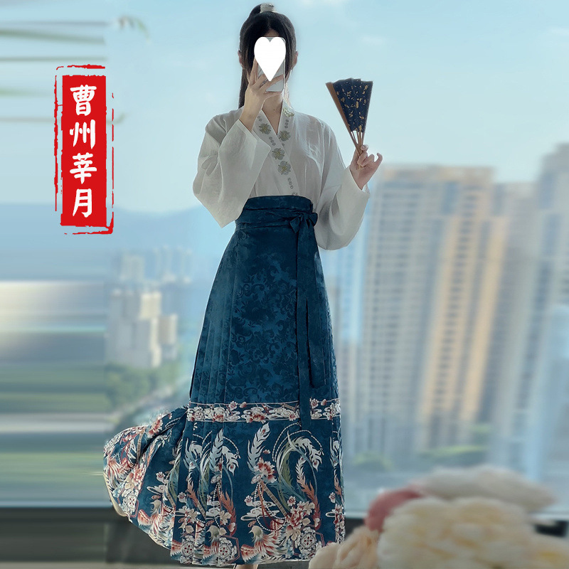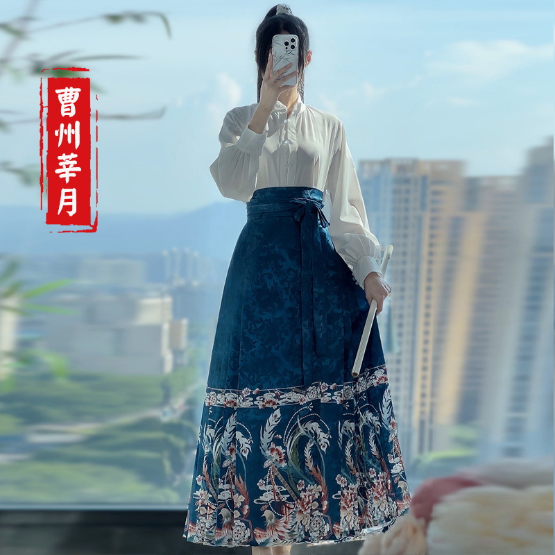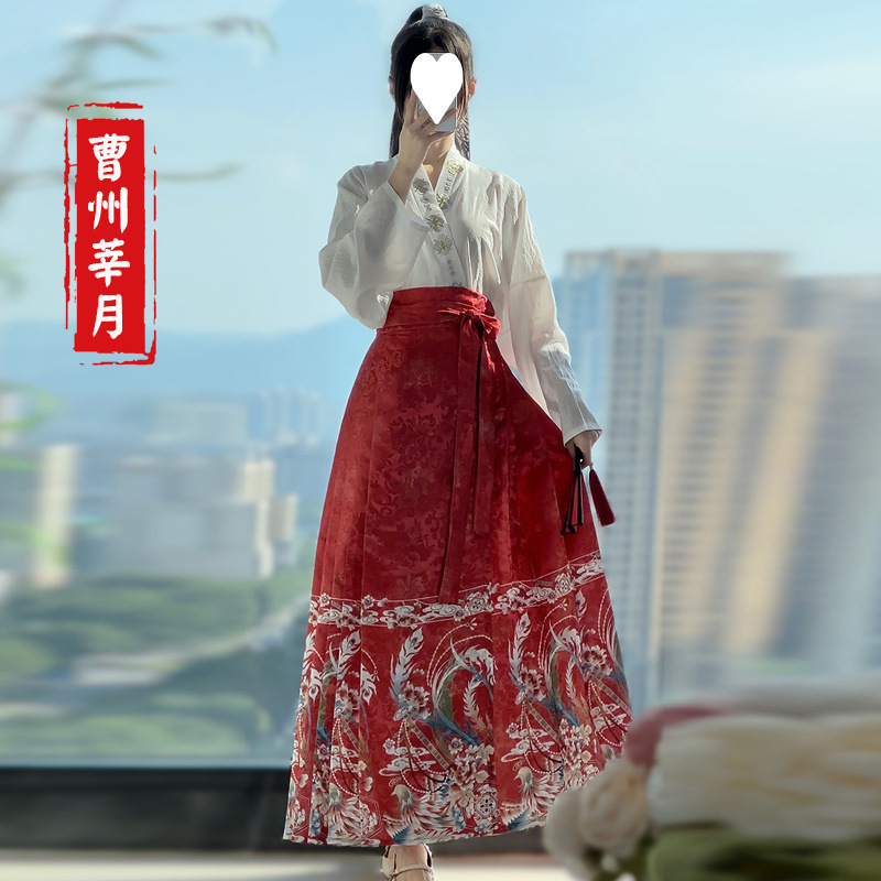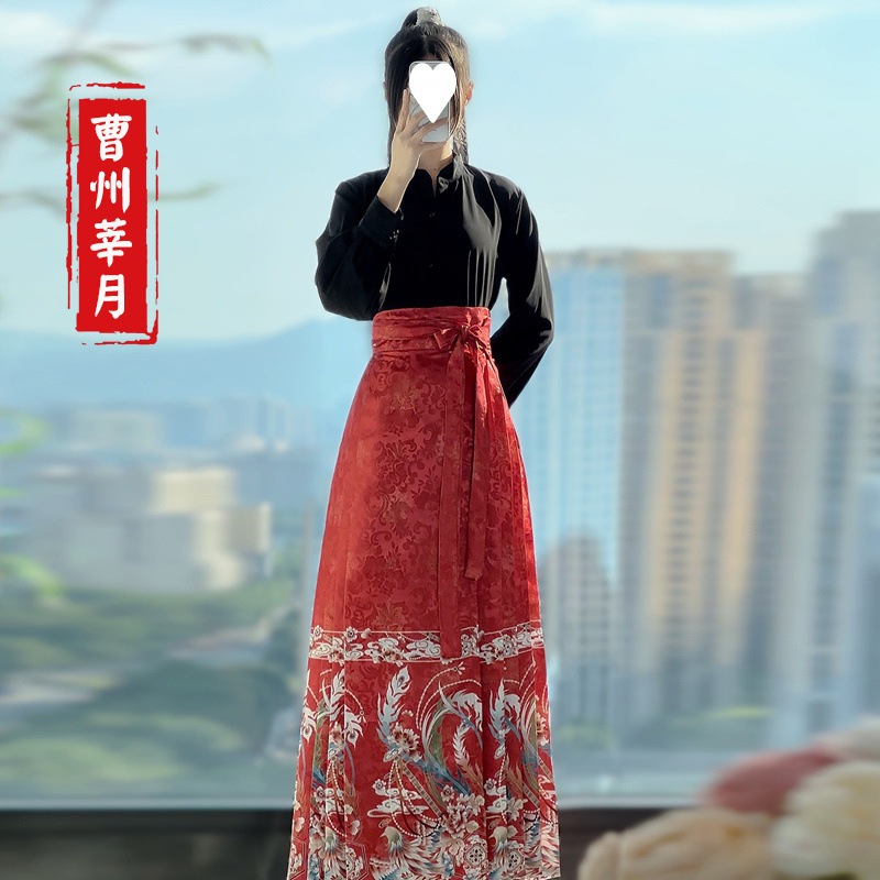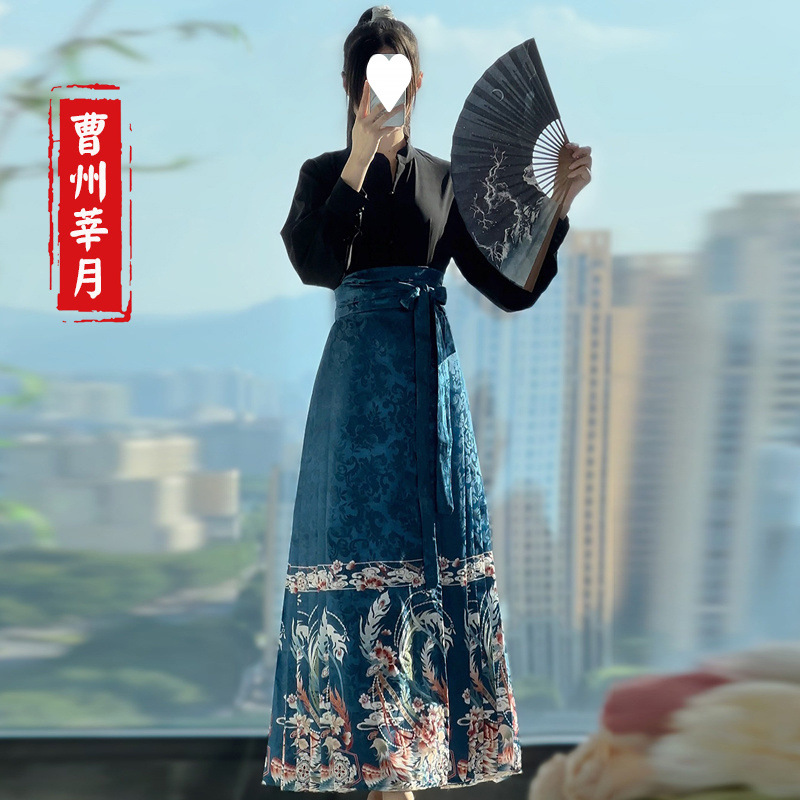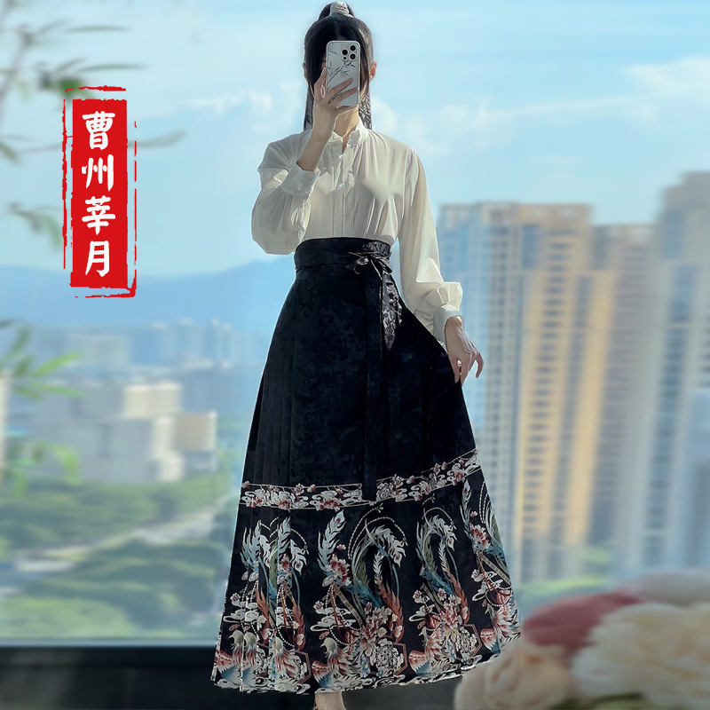 Caozhou Yunyue Hanfu женский воротник в китайском стиле повседневная печать юбка с конским лицом подлинная Amazon [производитель]