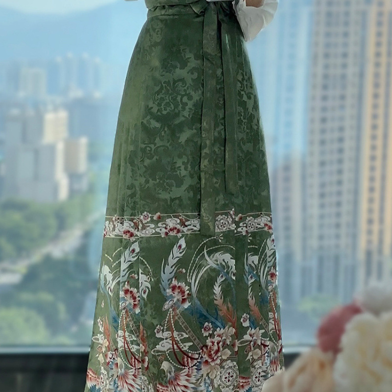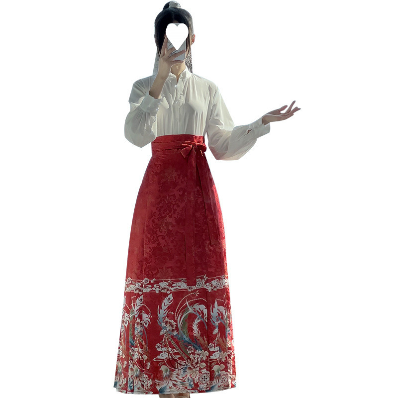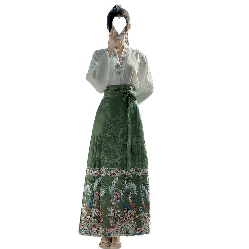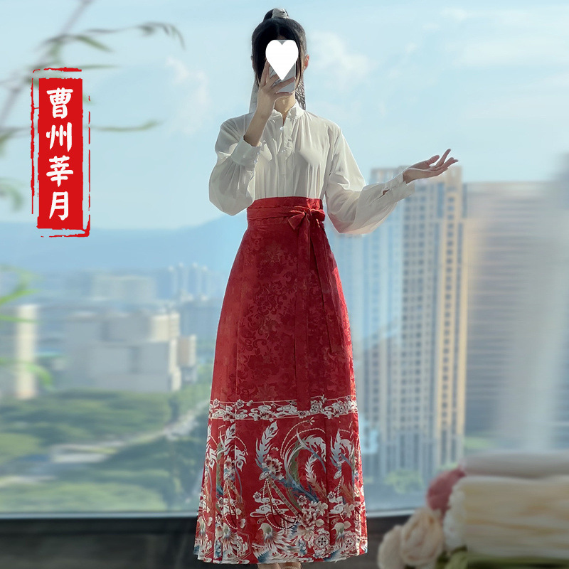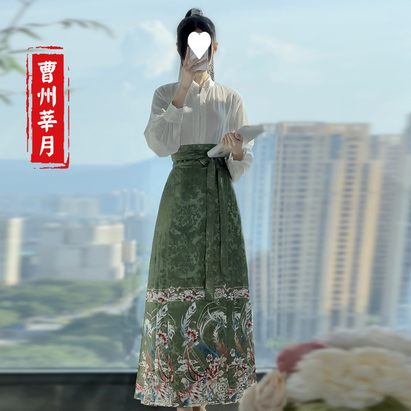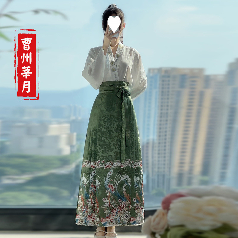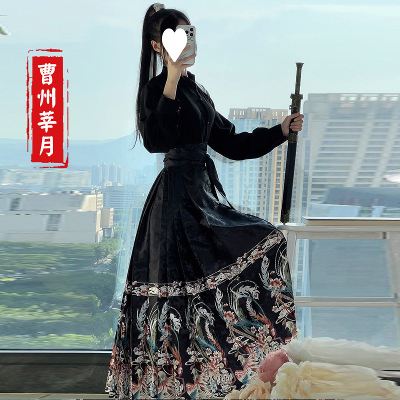 Caozhou Yunyue Hanfu женский воротник в китайском стиле повседневная печать юбка с конским лицом подлинная Amazon [производитель]