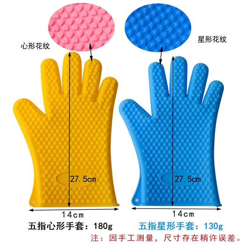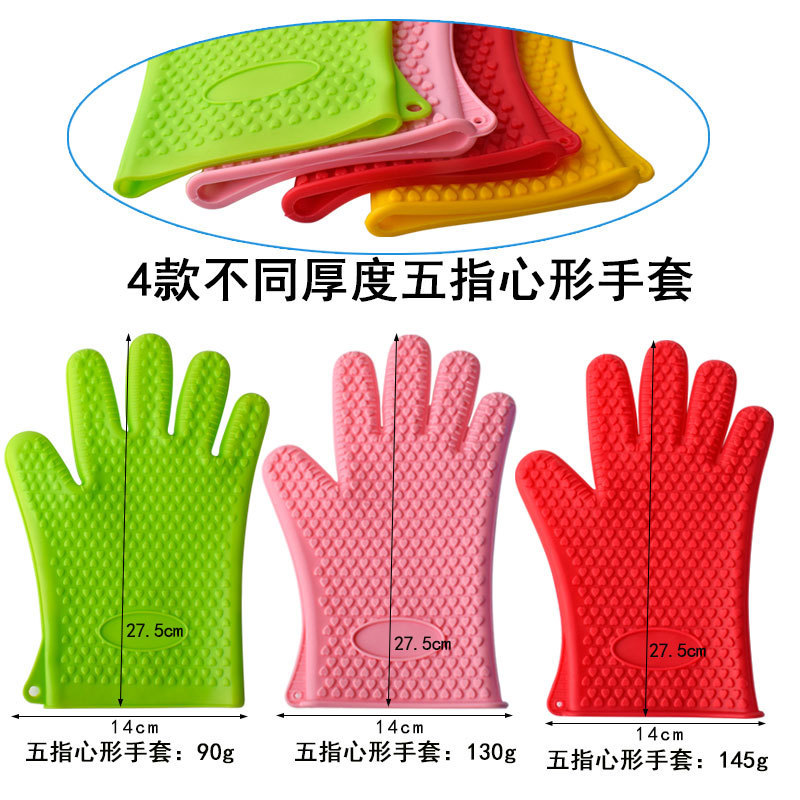 Силиконовые перчатки в форме сердца с пятью пальцами, водонепроницаемые, нескользящие, теплоизоляционные, кухонные перчатки для выпечки, барбекю, барбекю, микроволновой печи