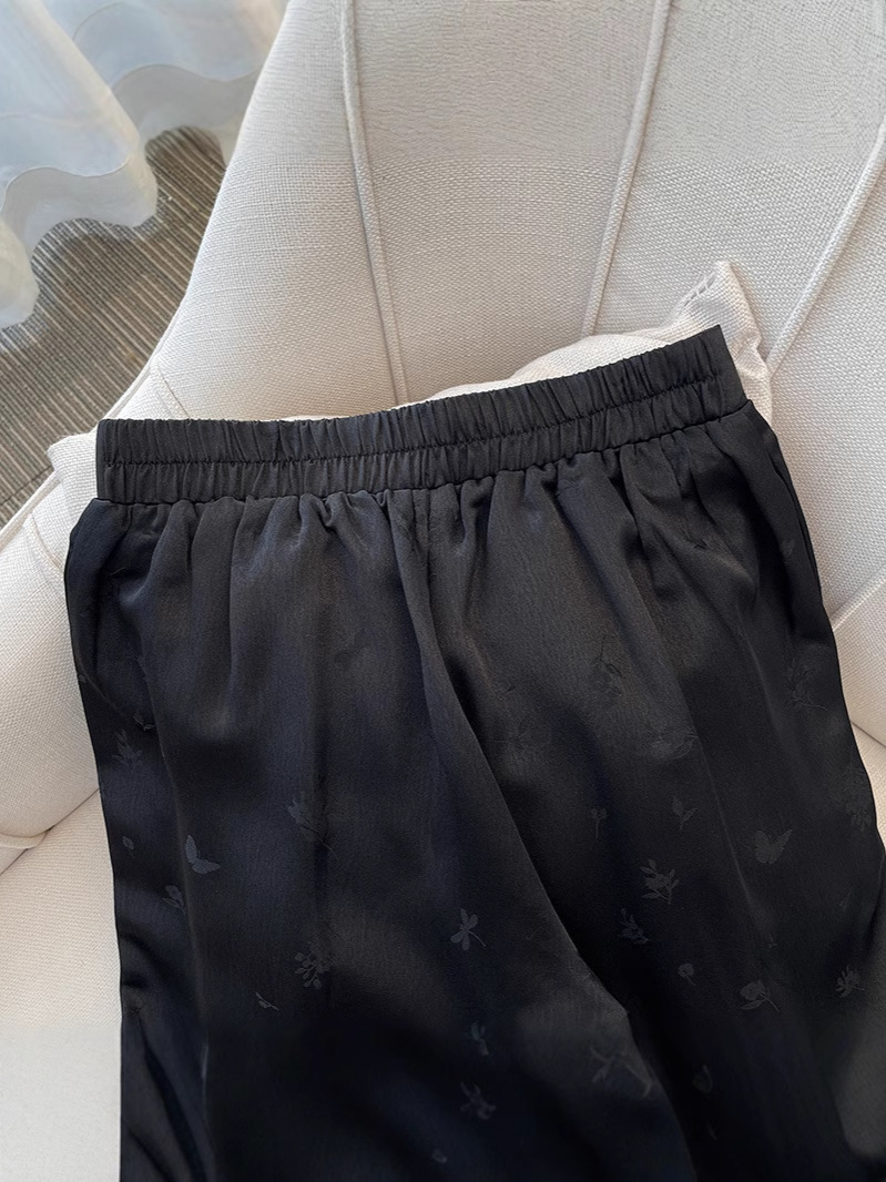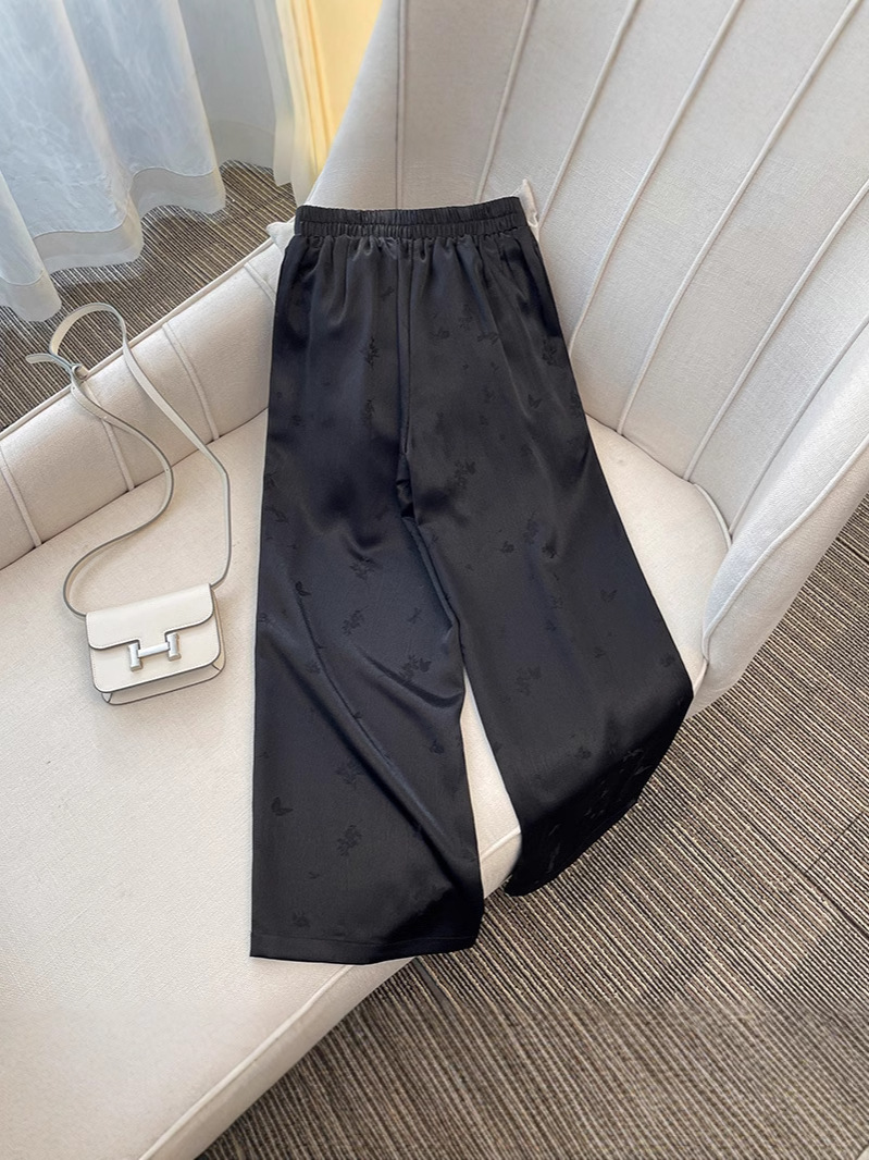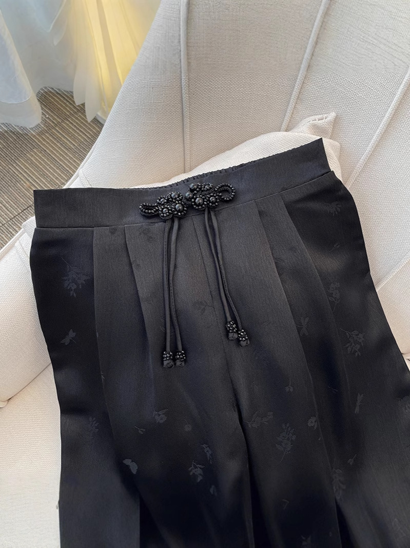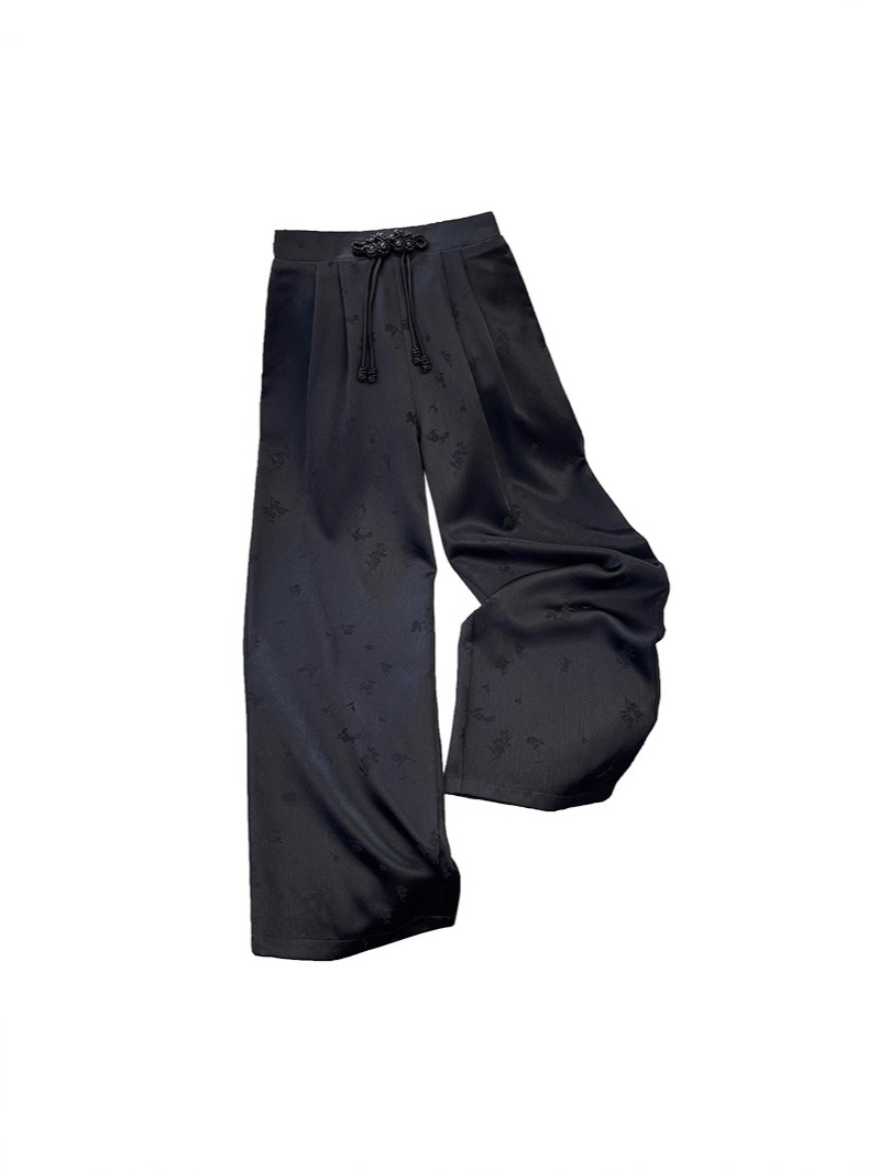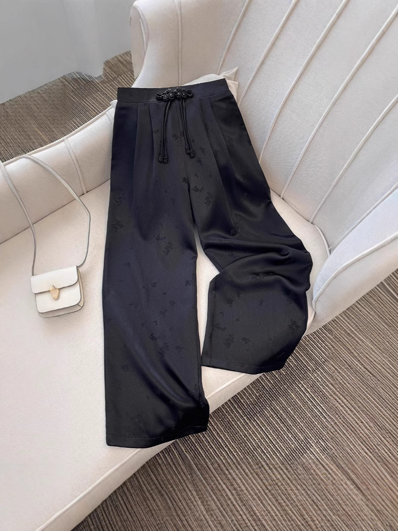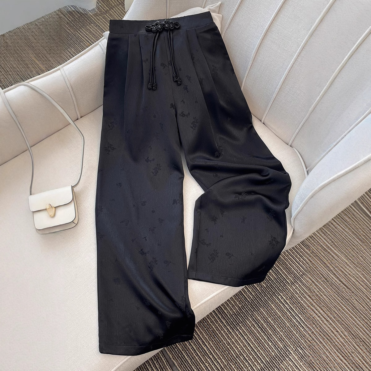 Модные широкие брюки в китайском стиле с пряжкой и драпировкой, весна-лето 2025, новые китайские повседневные атласные жаккардовые утягивающие длинные брюки