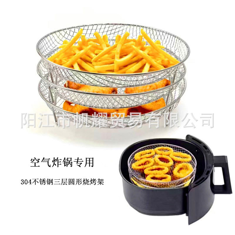 Аксессуары для аэрофритюрницы: круглая 3-слойная многоярусная решетка, аксессуары для духовки, решетка для выпечки из нержавеющей стали 304, решетка для дегидратации, решетка для слива масла