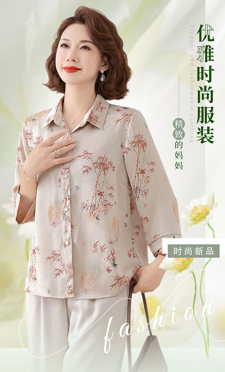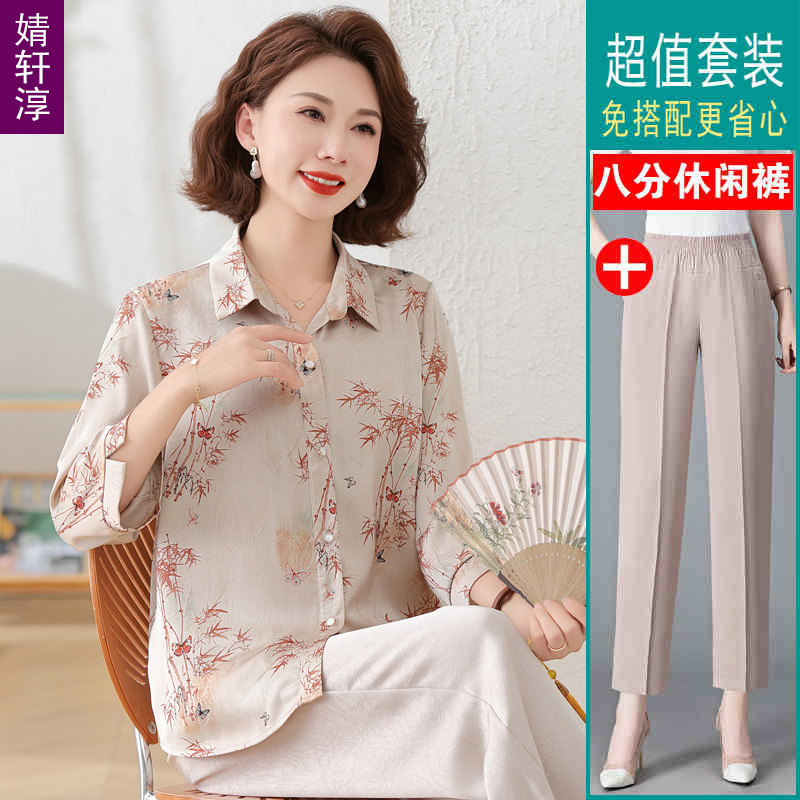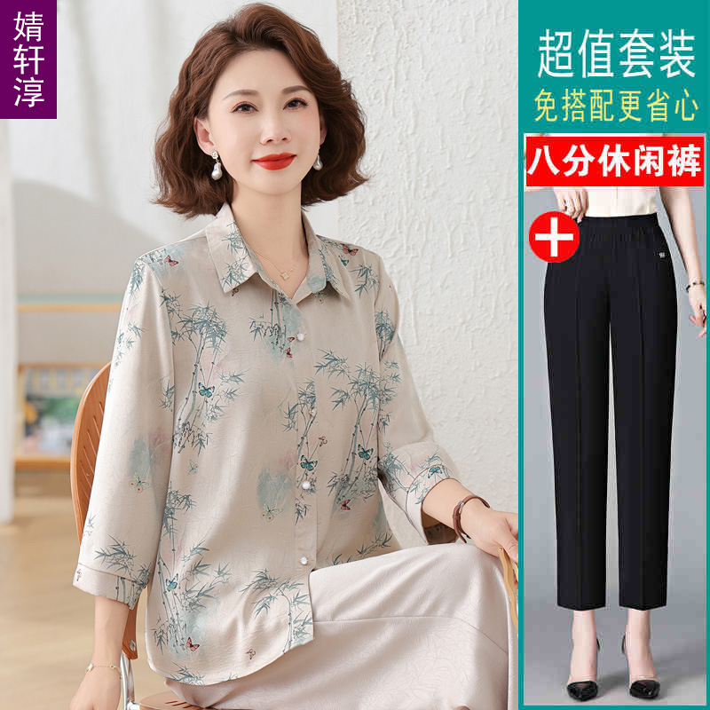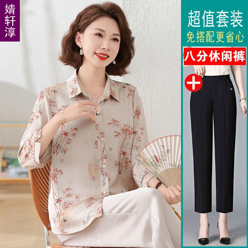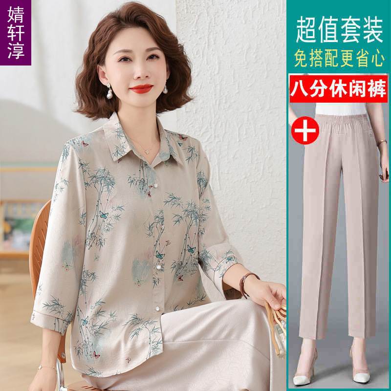 Летняя одежда для мам 2025, новая одежда для женщин среднего и пожилого возраста, топы ко Дню матери, летняя модная рубашка, костюм из двух предметов