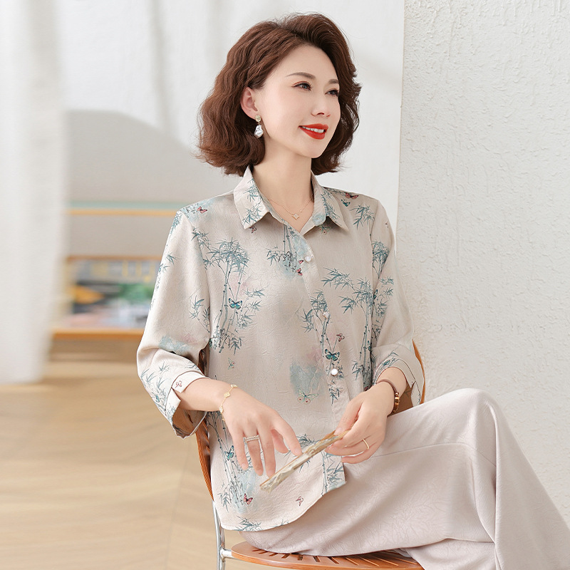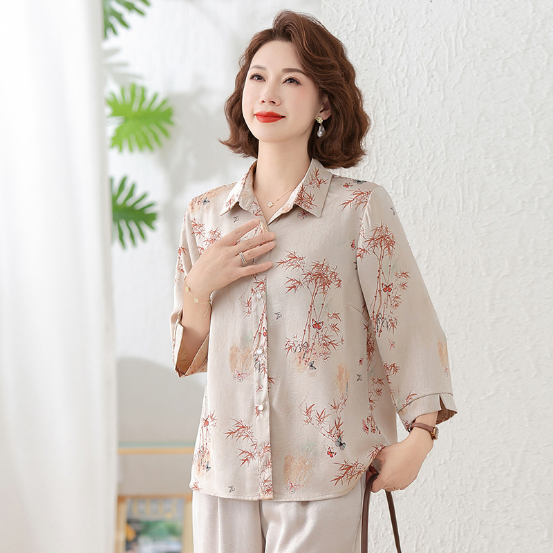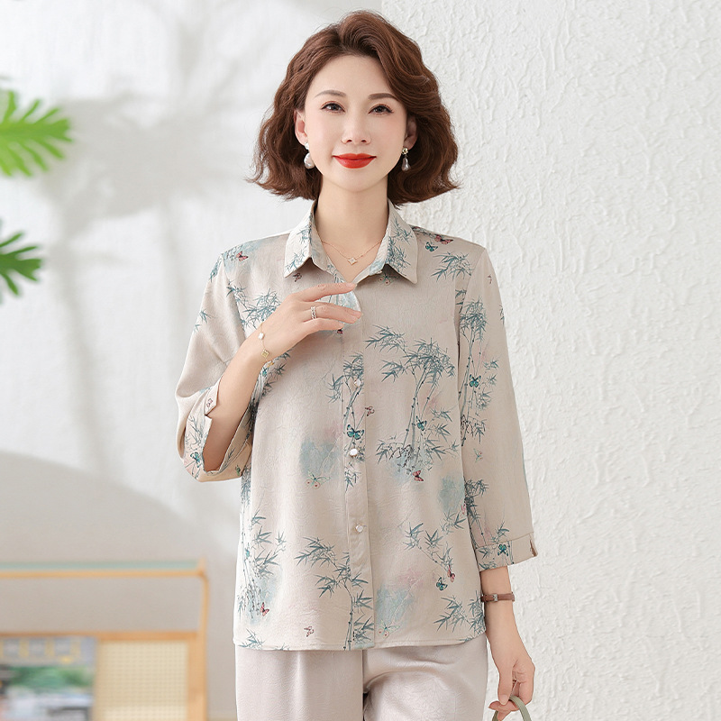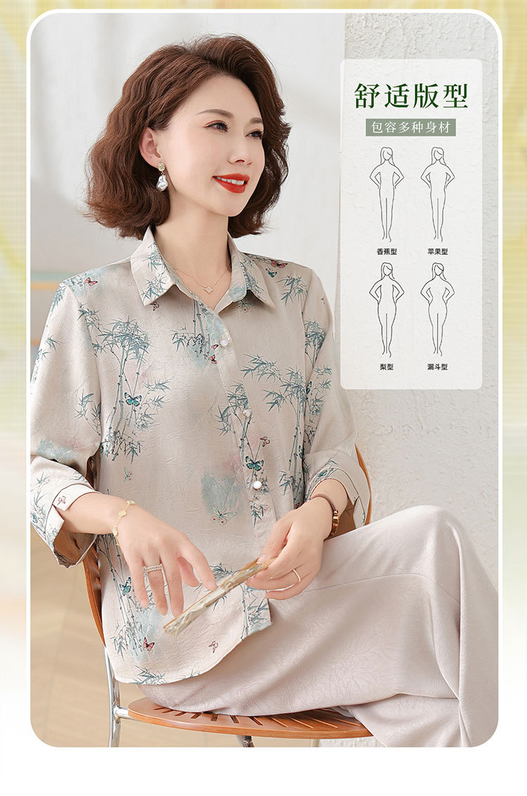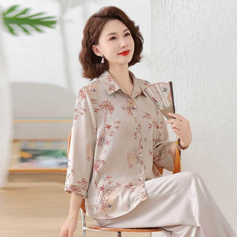 Летняя одежда для мам 2025, новая одежда для женщин среднего и пожилого возраста, топы ко Дню матери, летняя модная рубашка, костюм из двух предметов