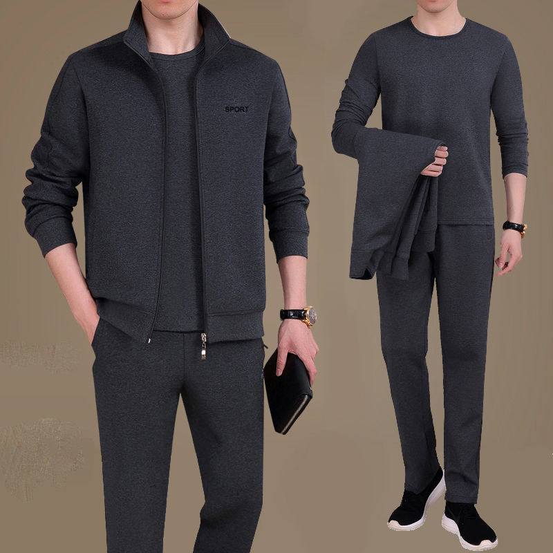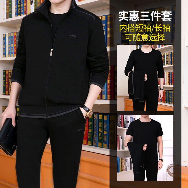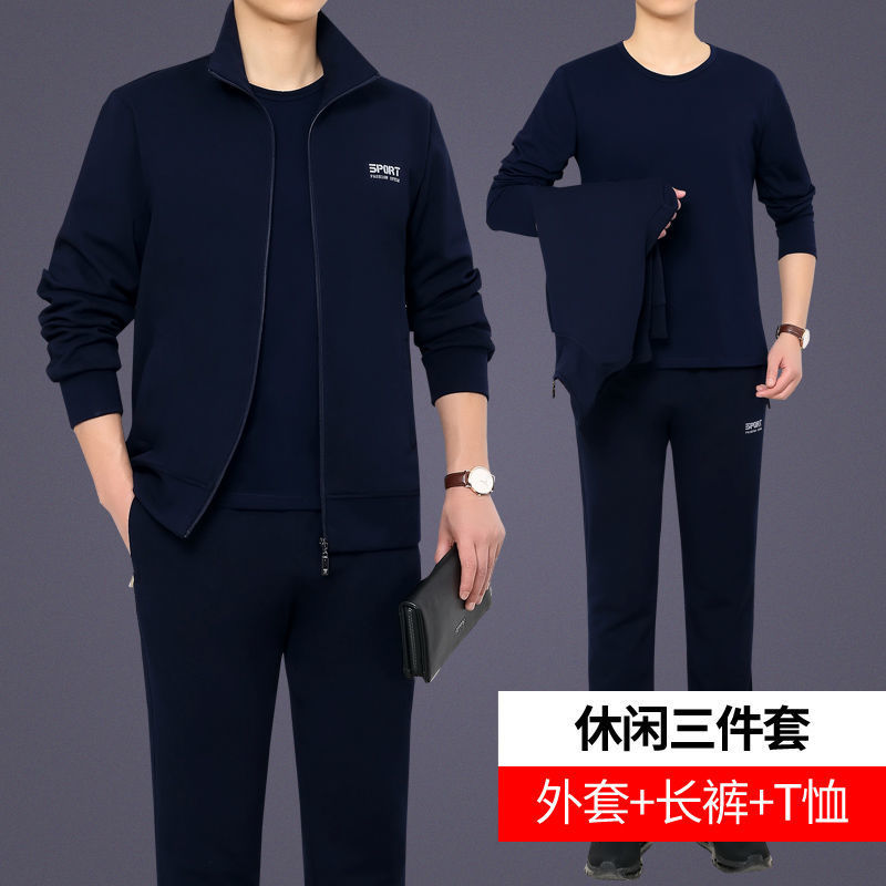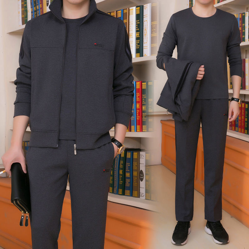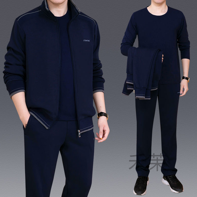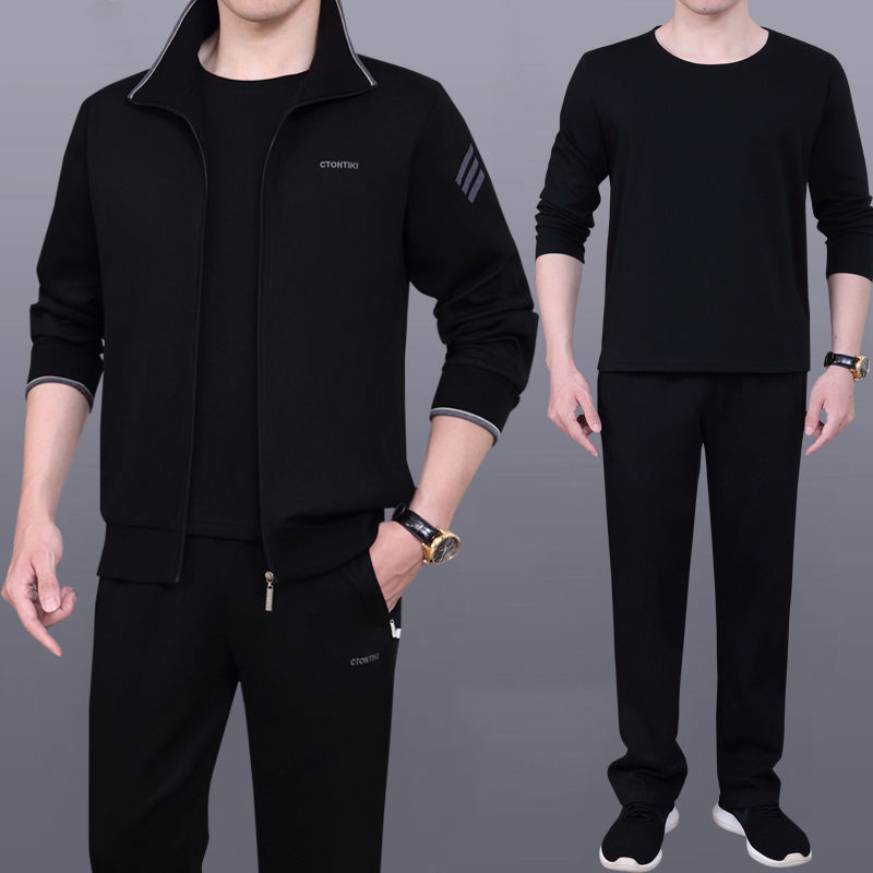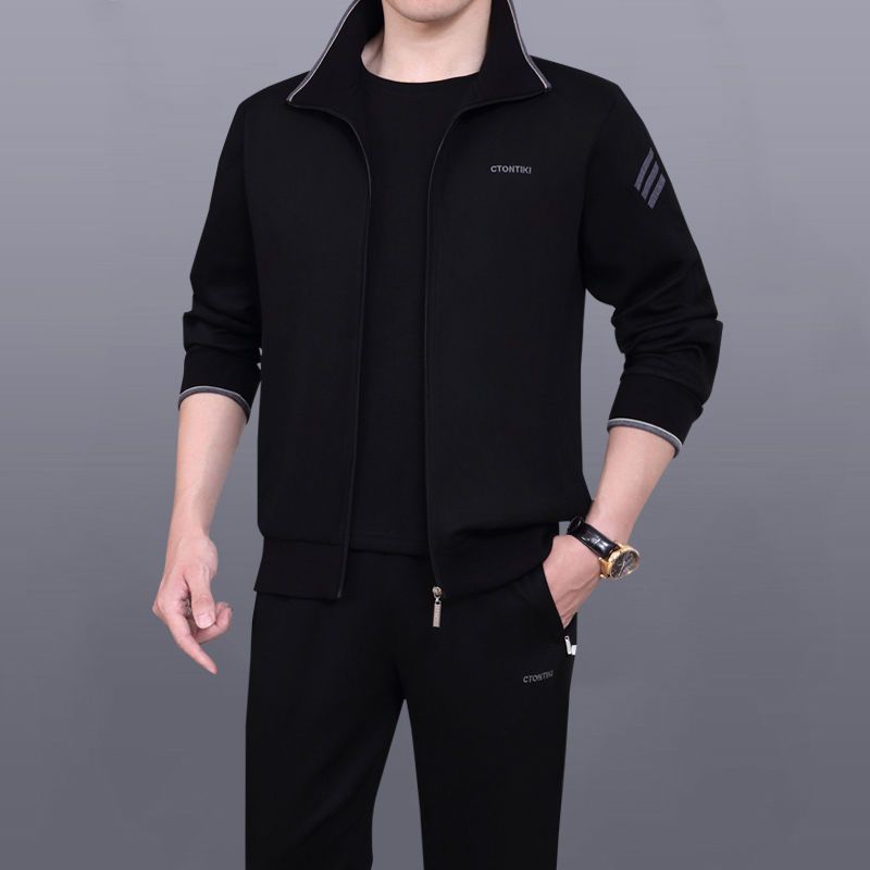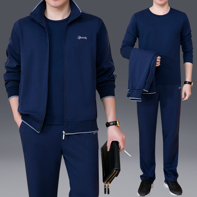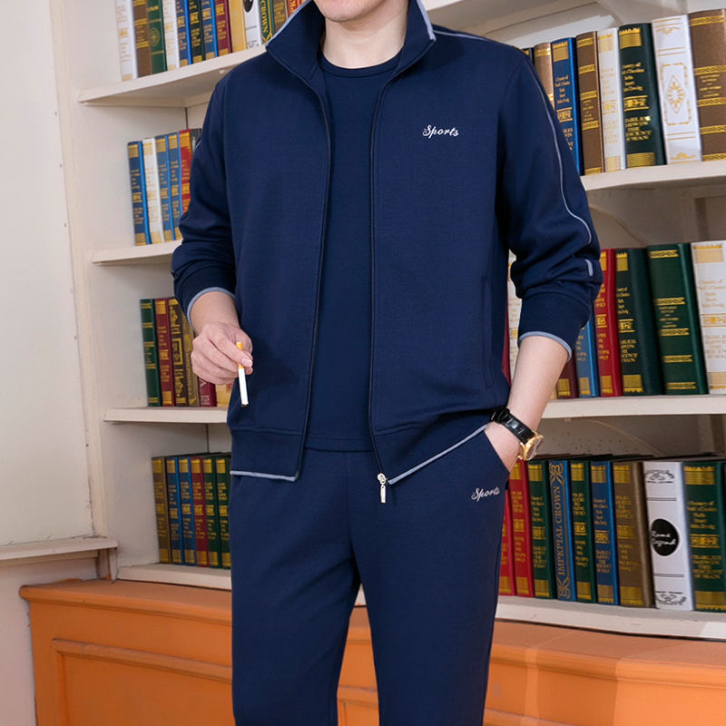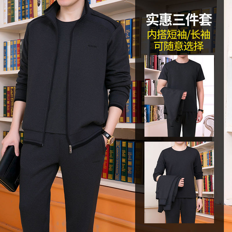 Мужская одежда для спорта и отдыха среднего и пожилого возраста, весенне-осенняя спортивная одежда больших размеров, комплект из трех предметов с длинными рукавами, спортивная одежда для мужчин среднего возраста